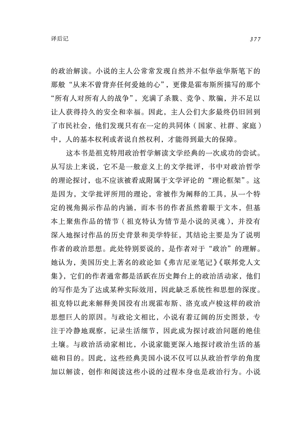 美国经典小说中始终徘徊着“向自然回归”的主题——主人公以抗争态度逃离市民社会,到自然中寻求美好生活,最终以重返一个更好的社会为结局。祖克特从施特劳斯的政治哲学命题“自然与习俗”切入,对这一美国文学中的独特意象做了谱系化梳理。