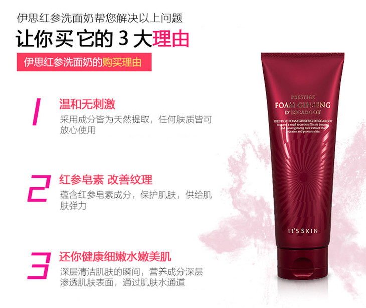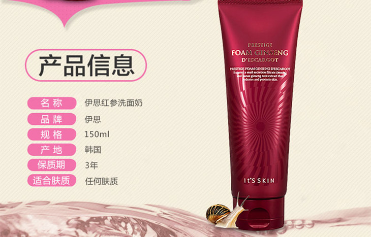 【现货】韩国 it's skin 伊思红参晶钻蜗牛洗面奶-补水保湿洁面膏150ml