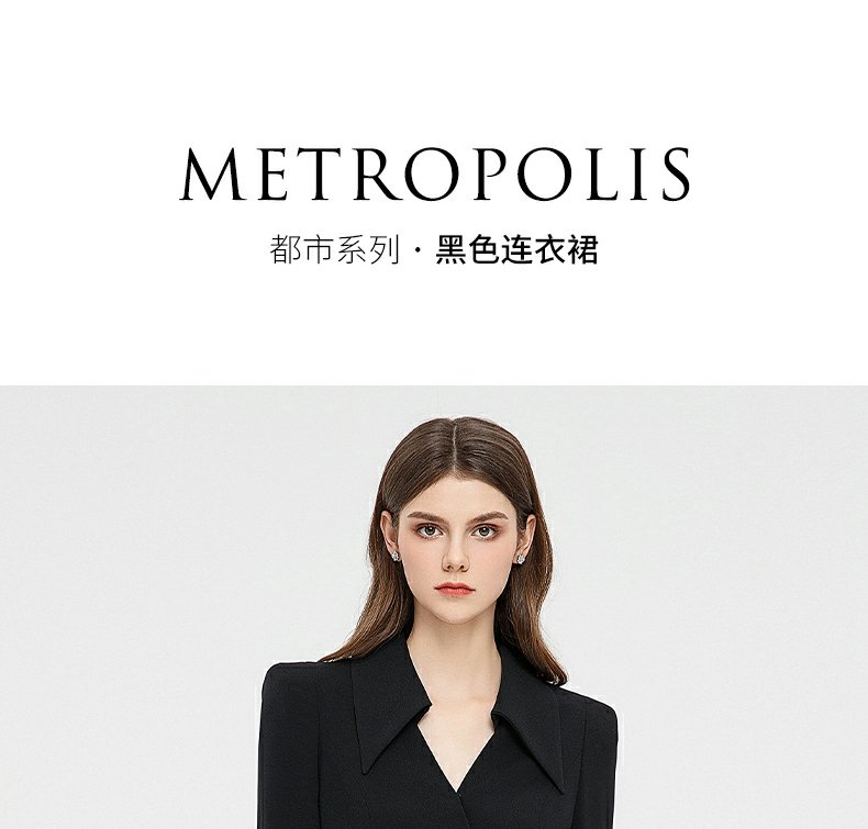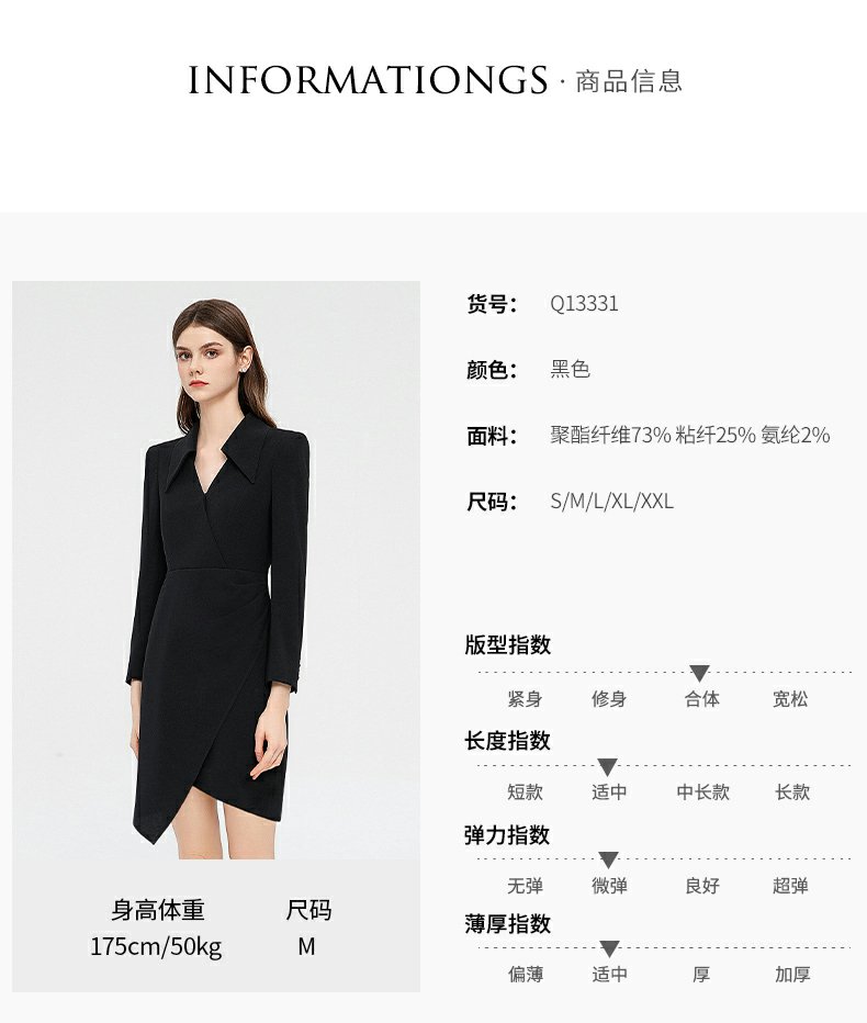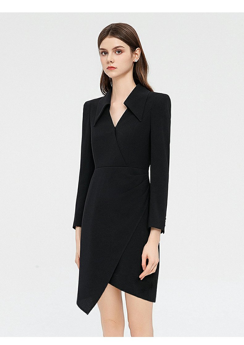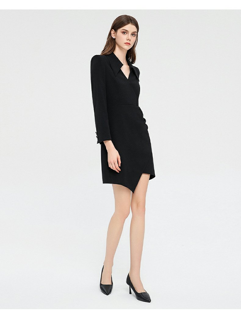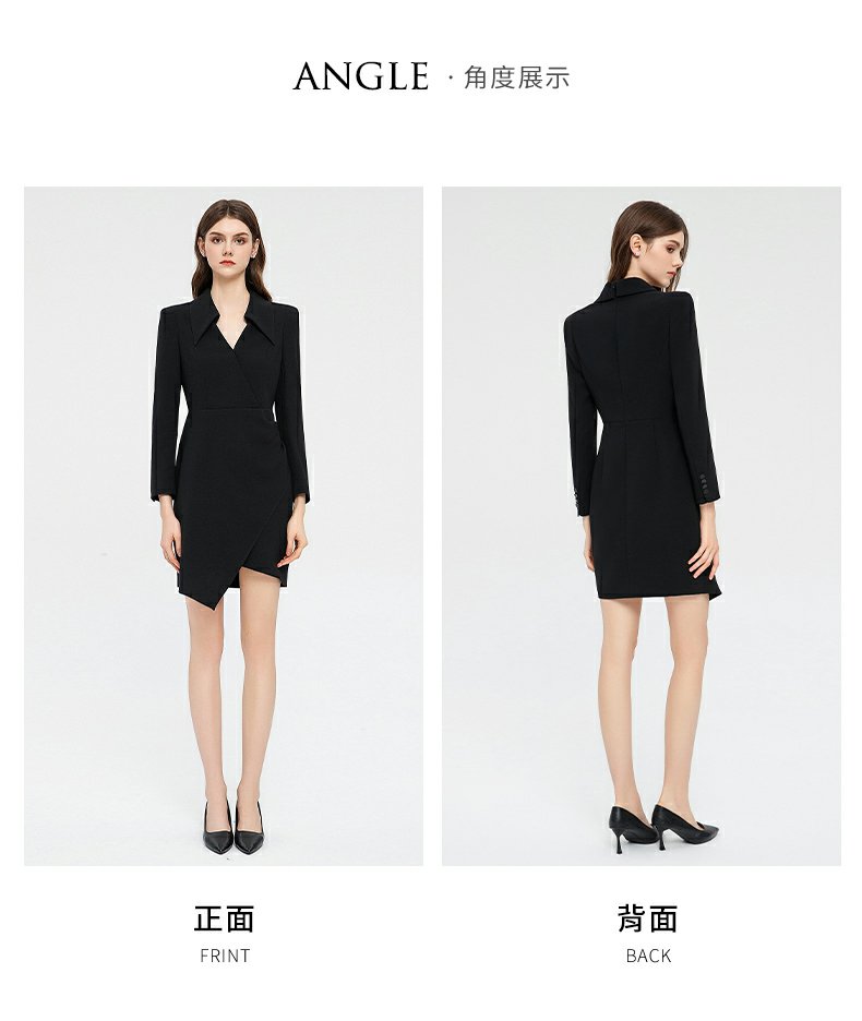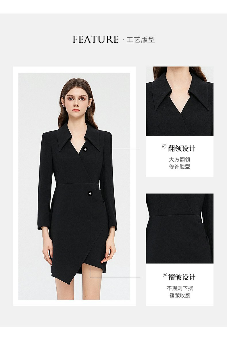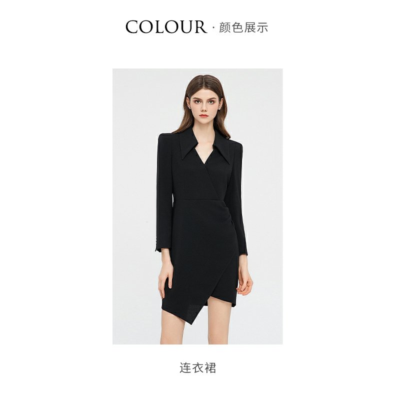 IWY/黑色设计感职业西装连衣裙女气质干练长袖套裙显瘦商务工作服正装Q13331