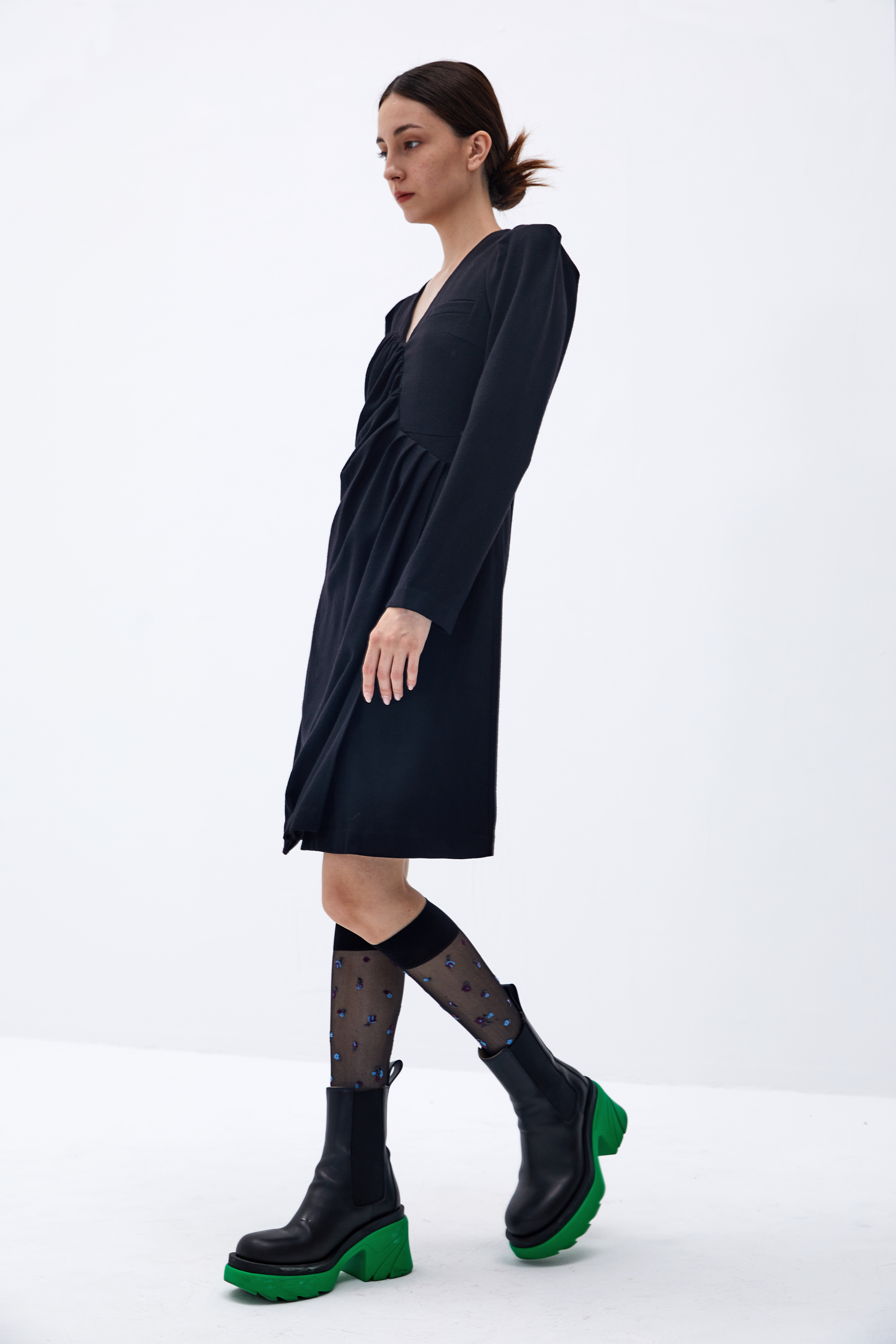 不对称褶皱羊毛连衣裙