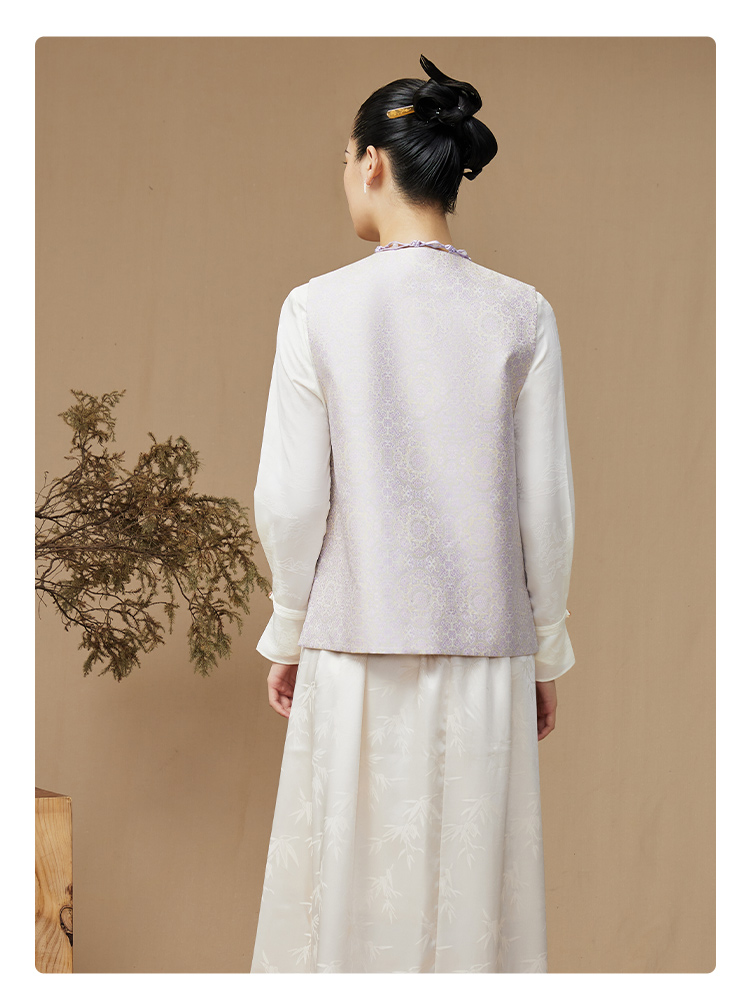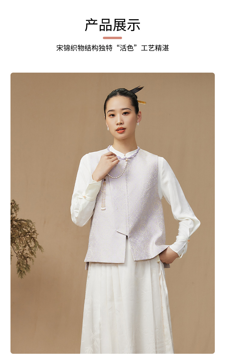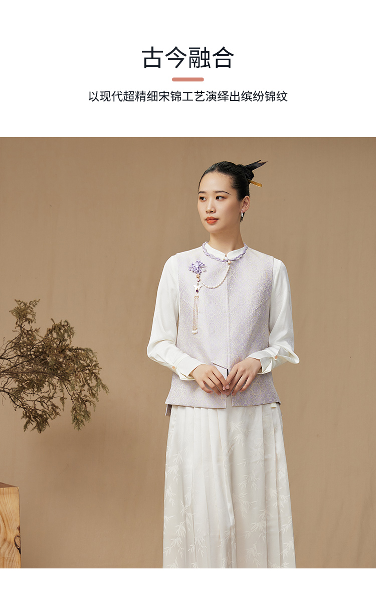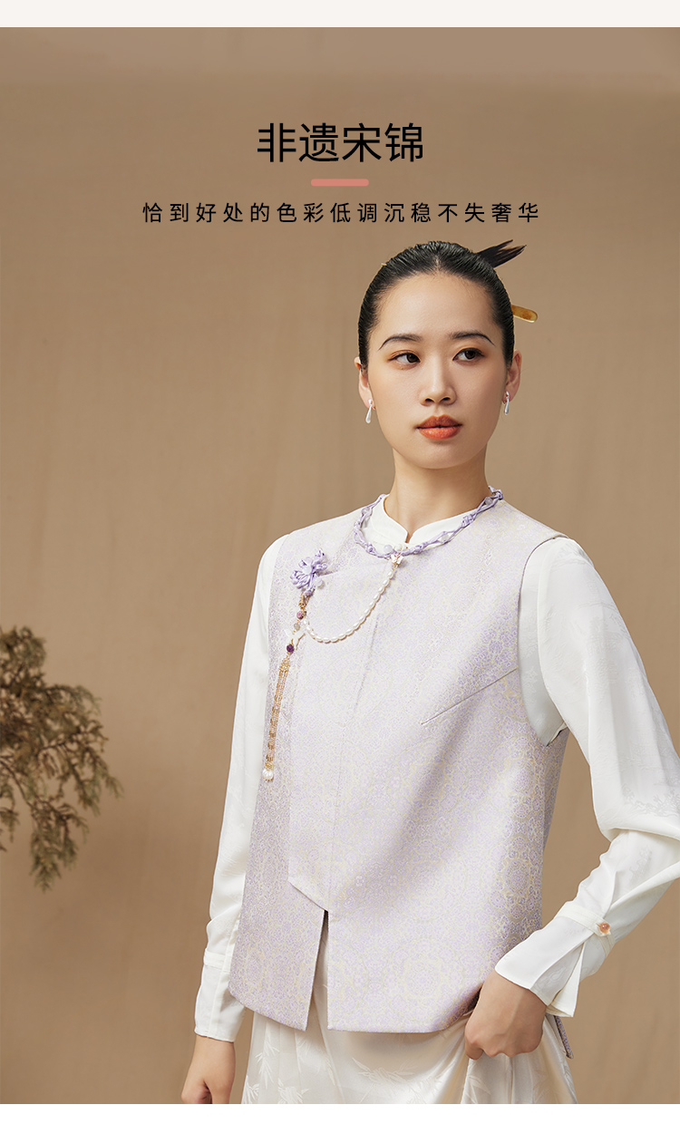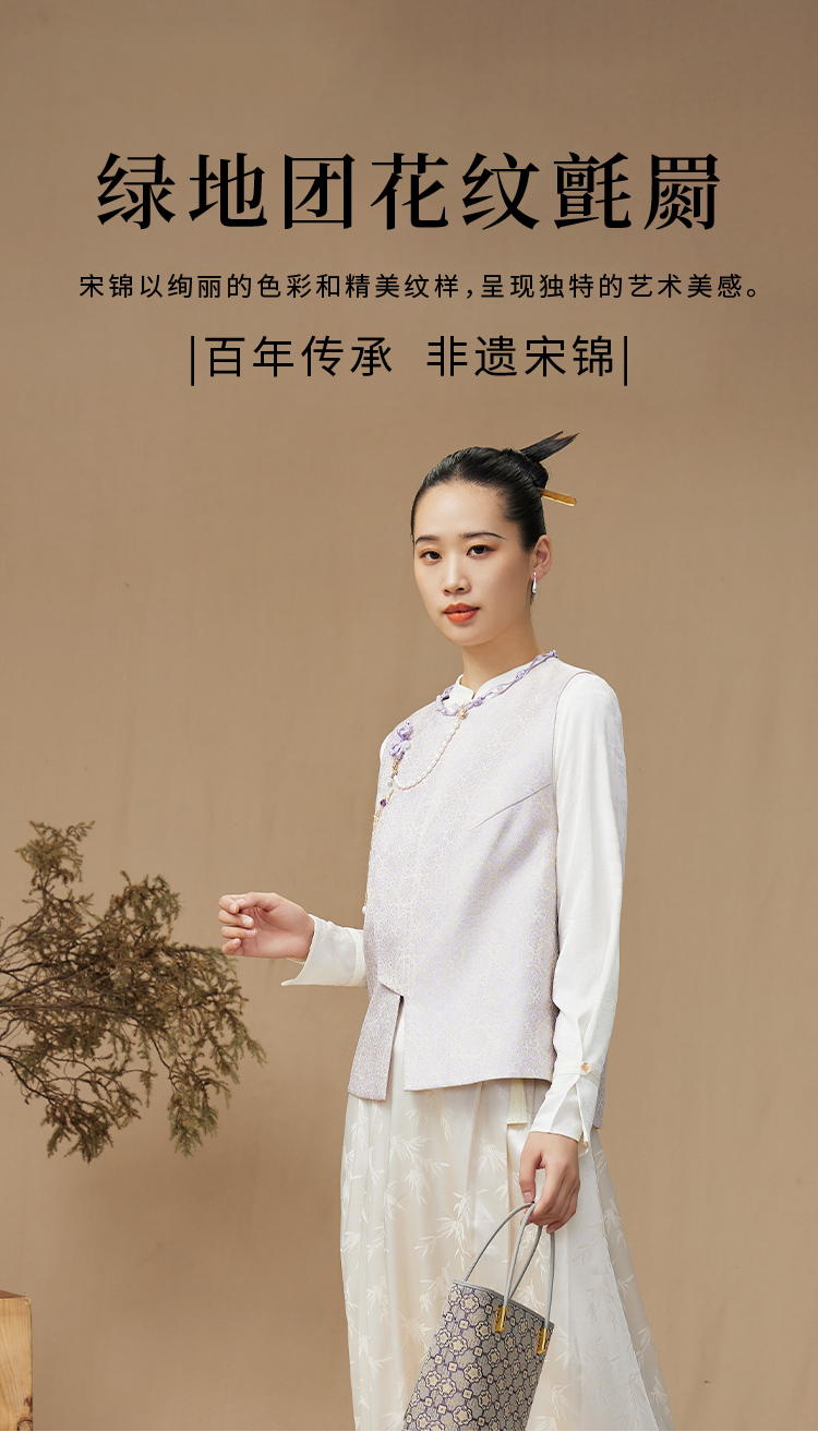 SAINTJOY/上久楷 女式宋锦马甲 中式上衣 中国风 复古 绿地团花纹氈罽 CY1044207027