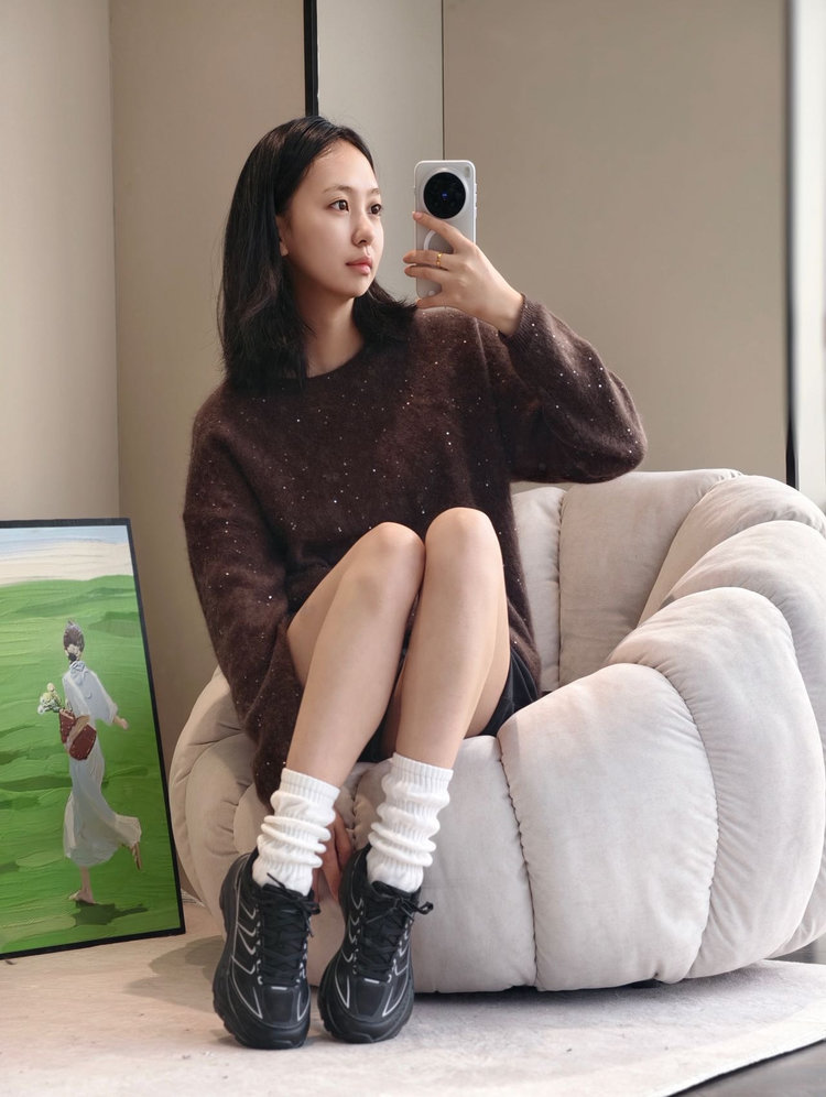 但这双银色的跑鞋就真的是百搭,搭什么都好看