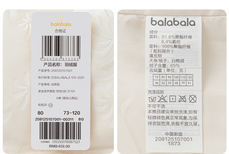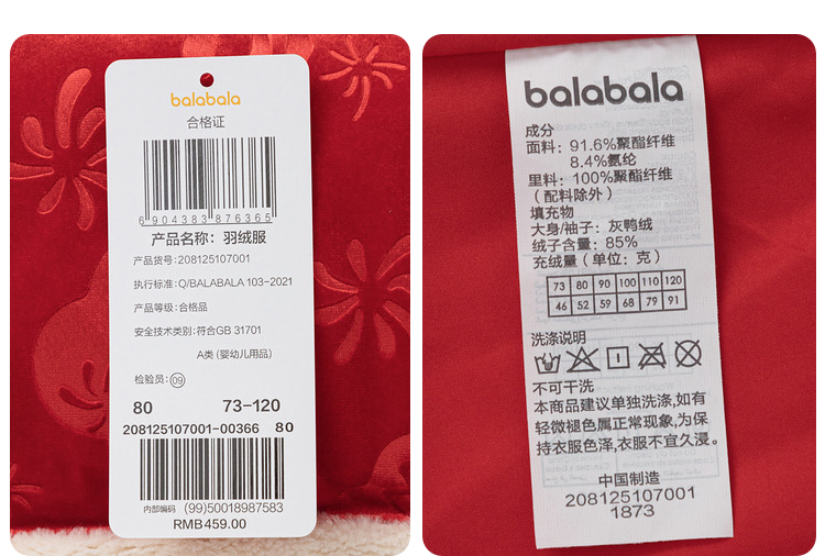 巴拉巴拉童装宝宝羽绒服婴儿衣服儿童外套2025新款春装新年拜年服