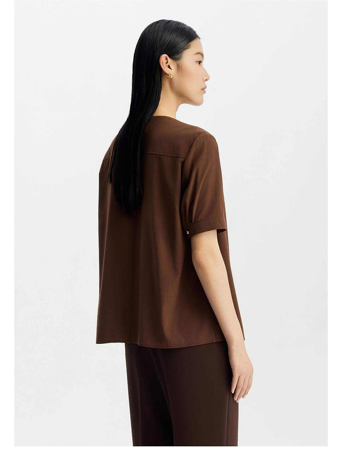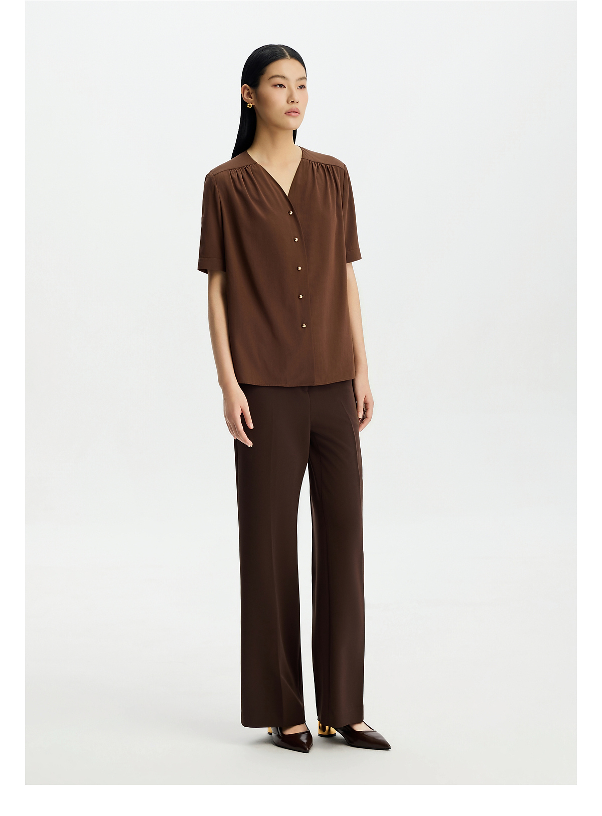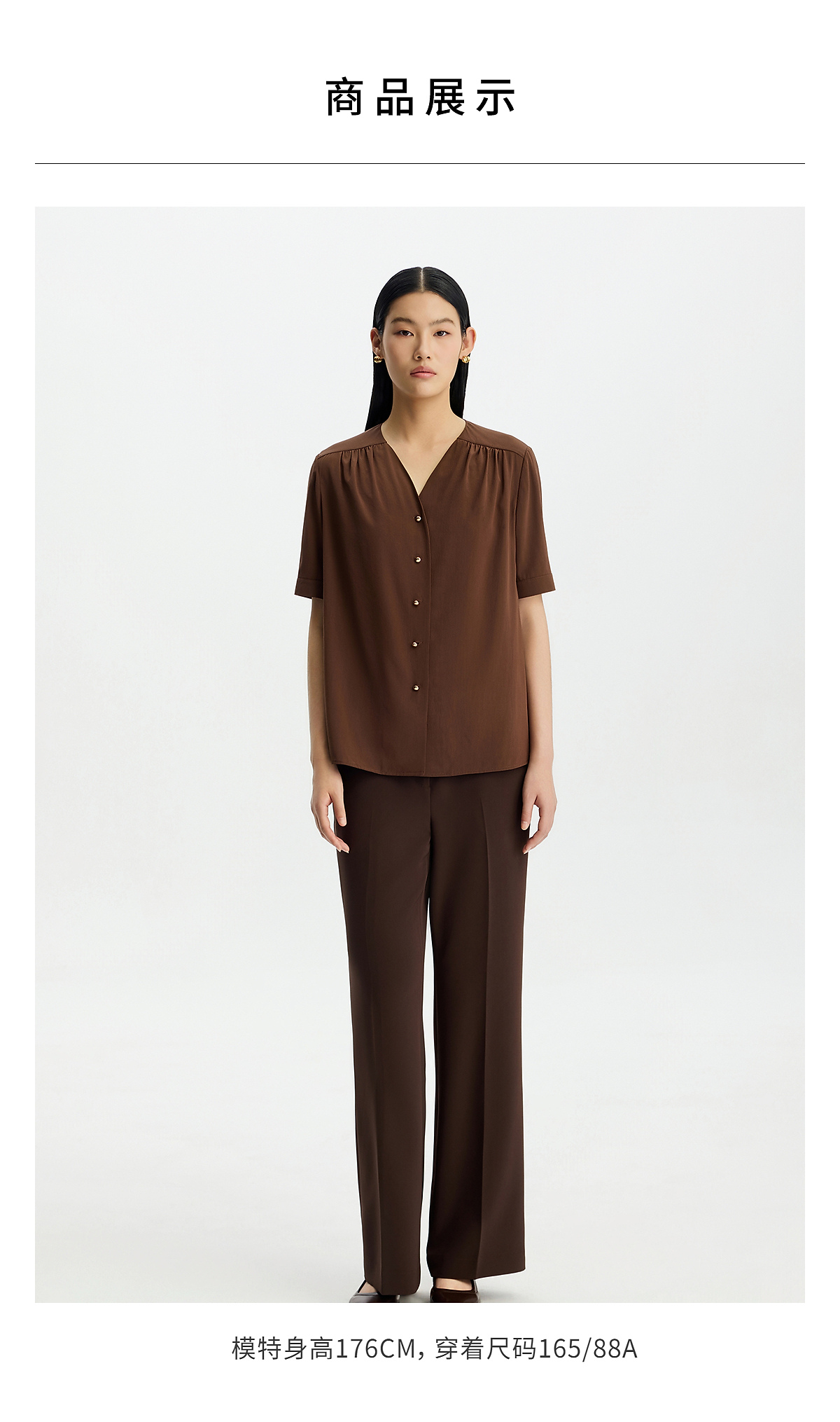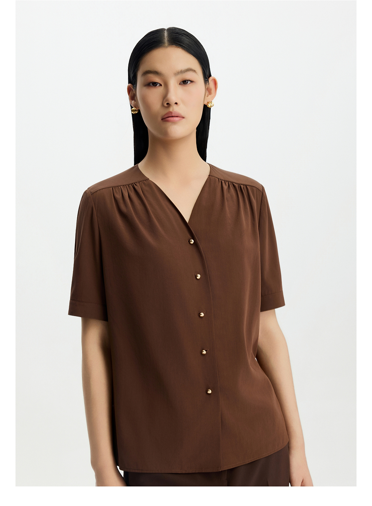 商场同款PURE TOUCH女装26春夏新款桑蚕丝衬衫v领抽褶短袖衬衣