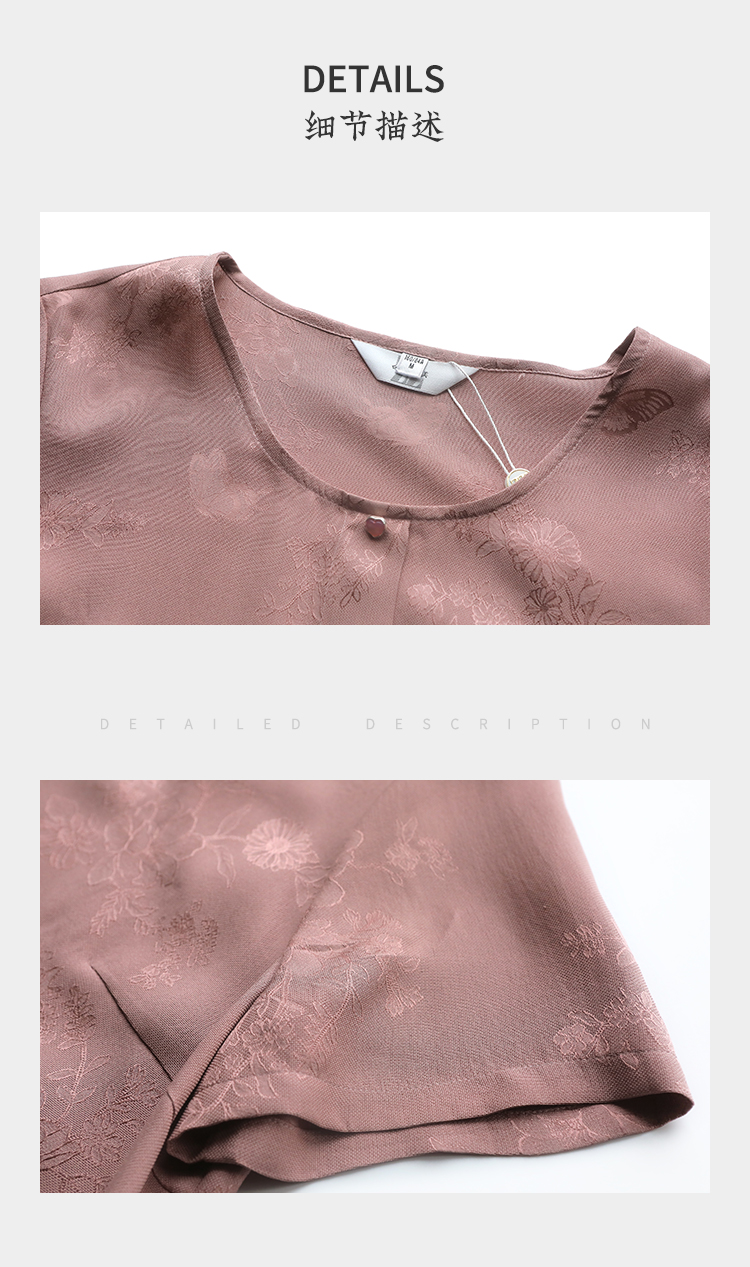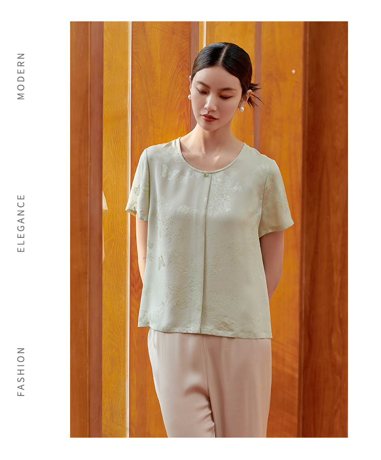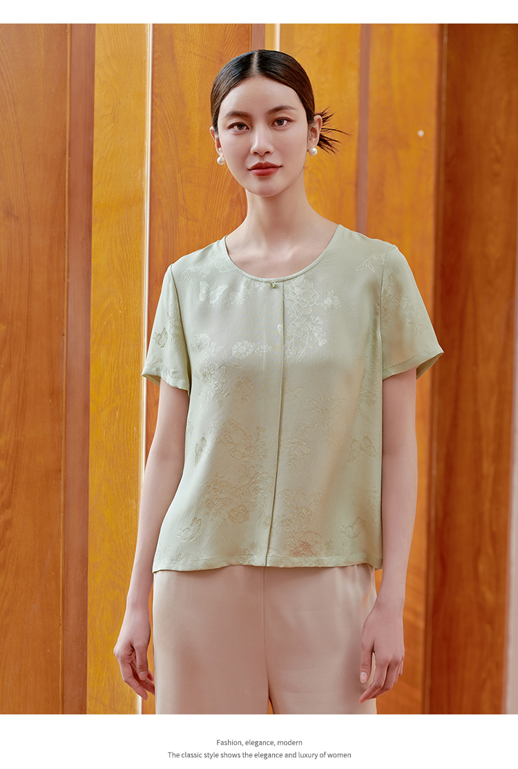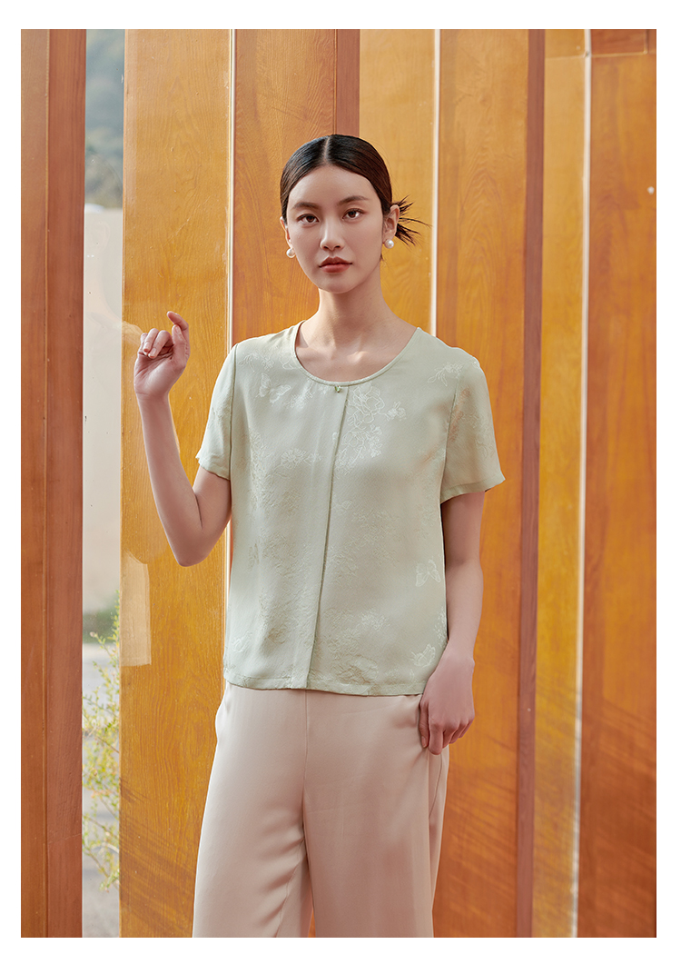 佐尔美 气质简约新中式桑蚕丝短袖衬衣女M42CS37
