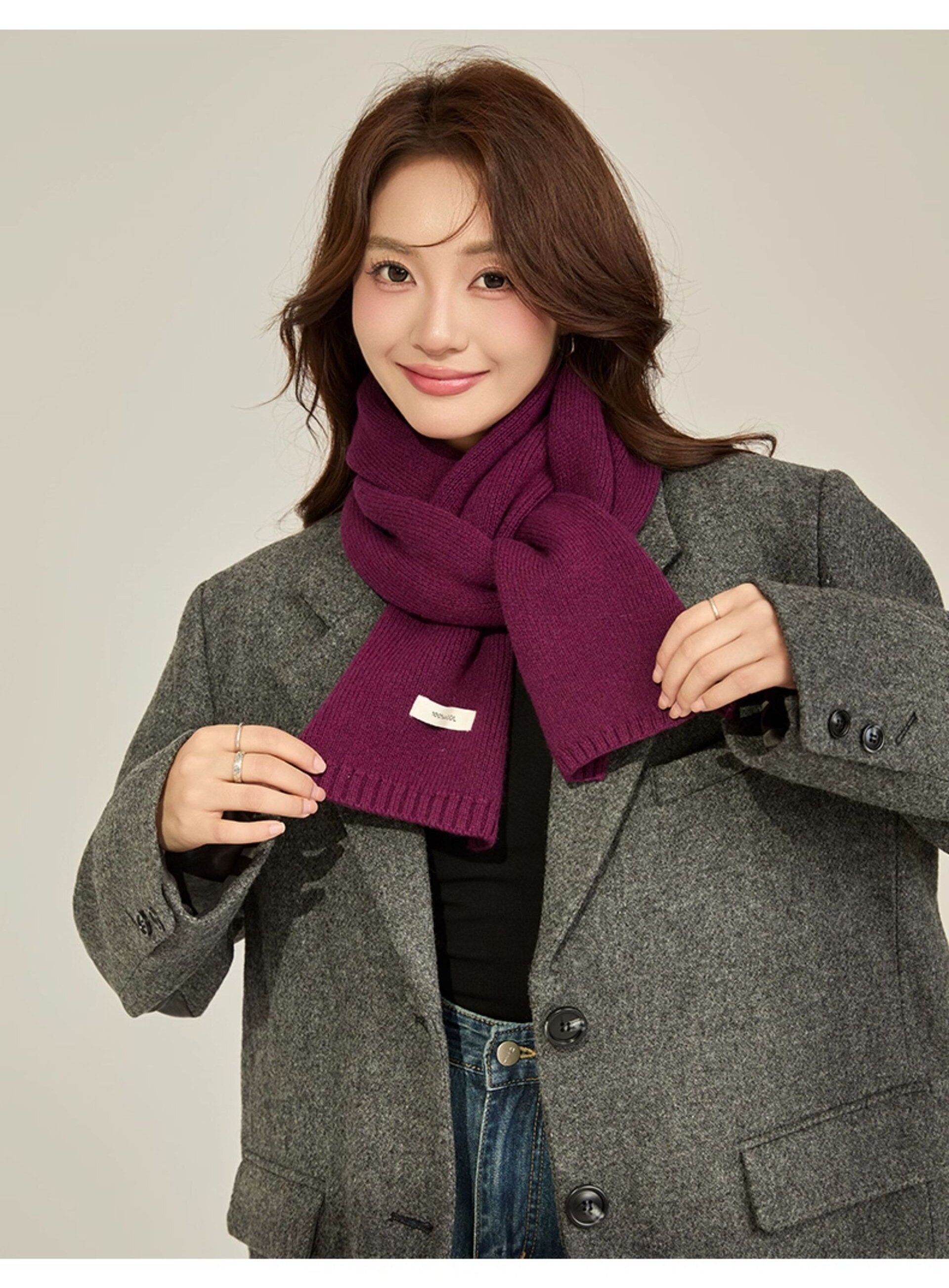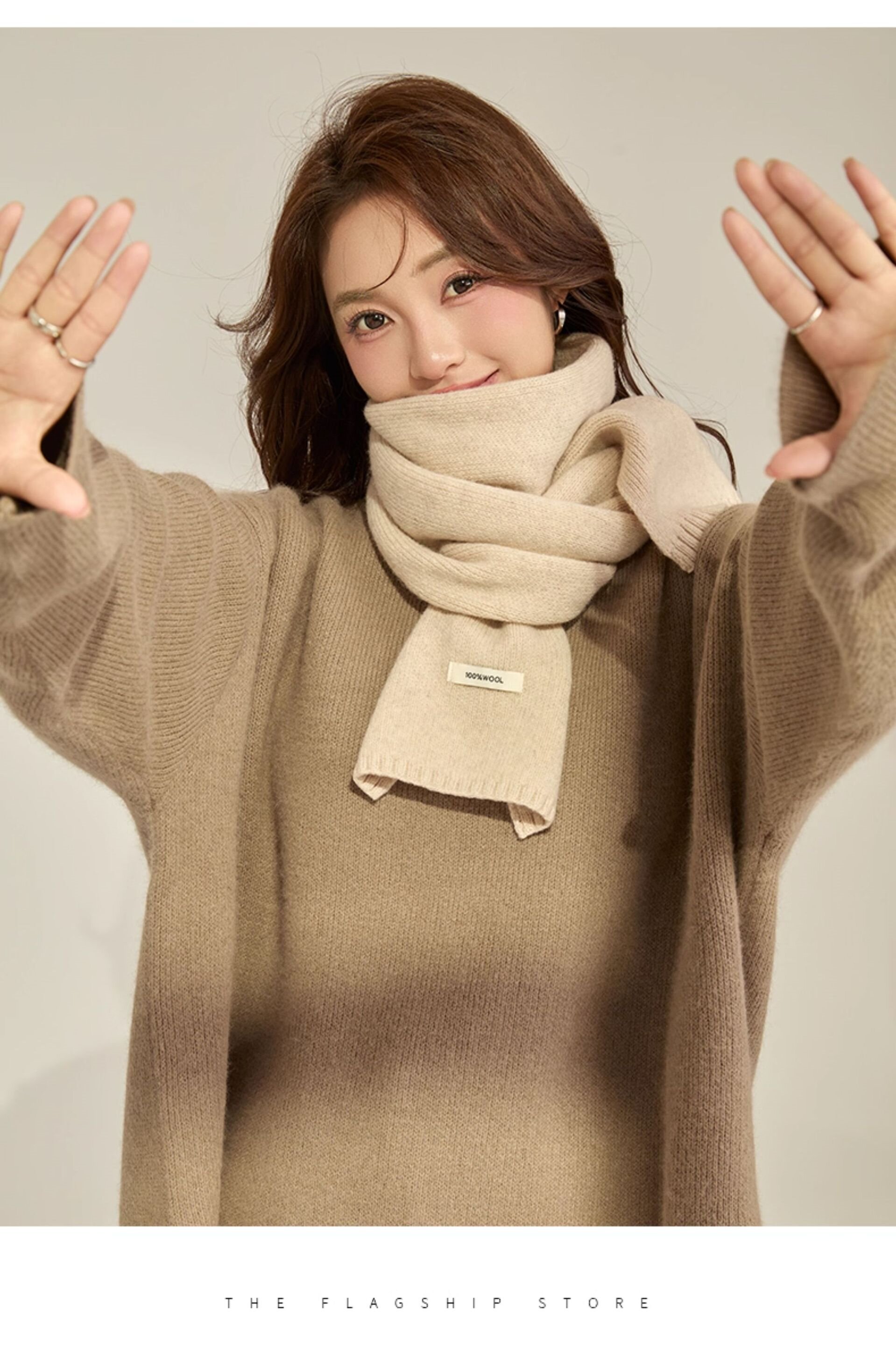 FUNGNI-FUNGNY 纯色羊毛围巾 160*22cm 秋冬新款男女款 时尚经典羊毛围巾 长款围脖围巾 多色可选