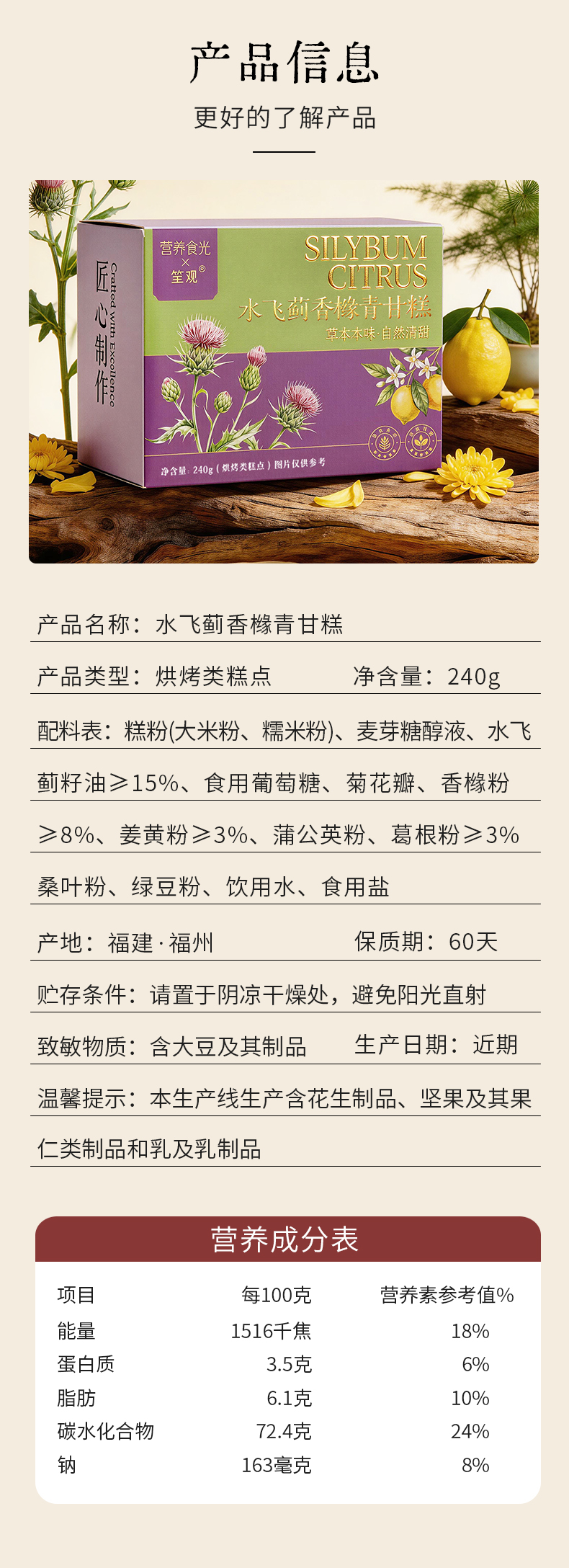 【正专享】营养食光水飞蓟香橼青甘糕 健康食养 严选食材 配料干净 口感软糯 清甜不腻