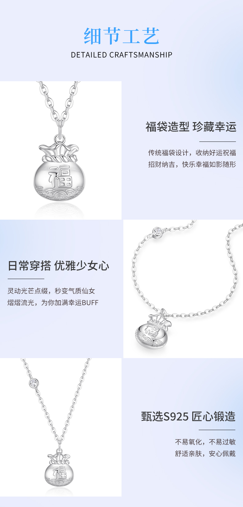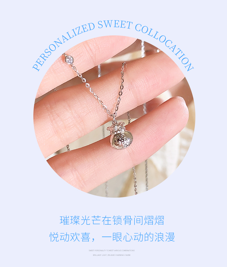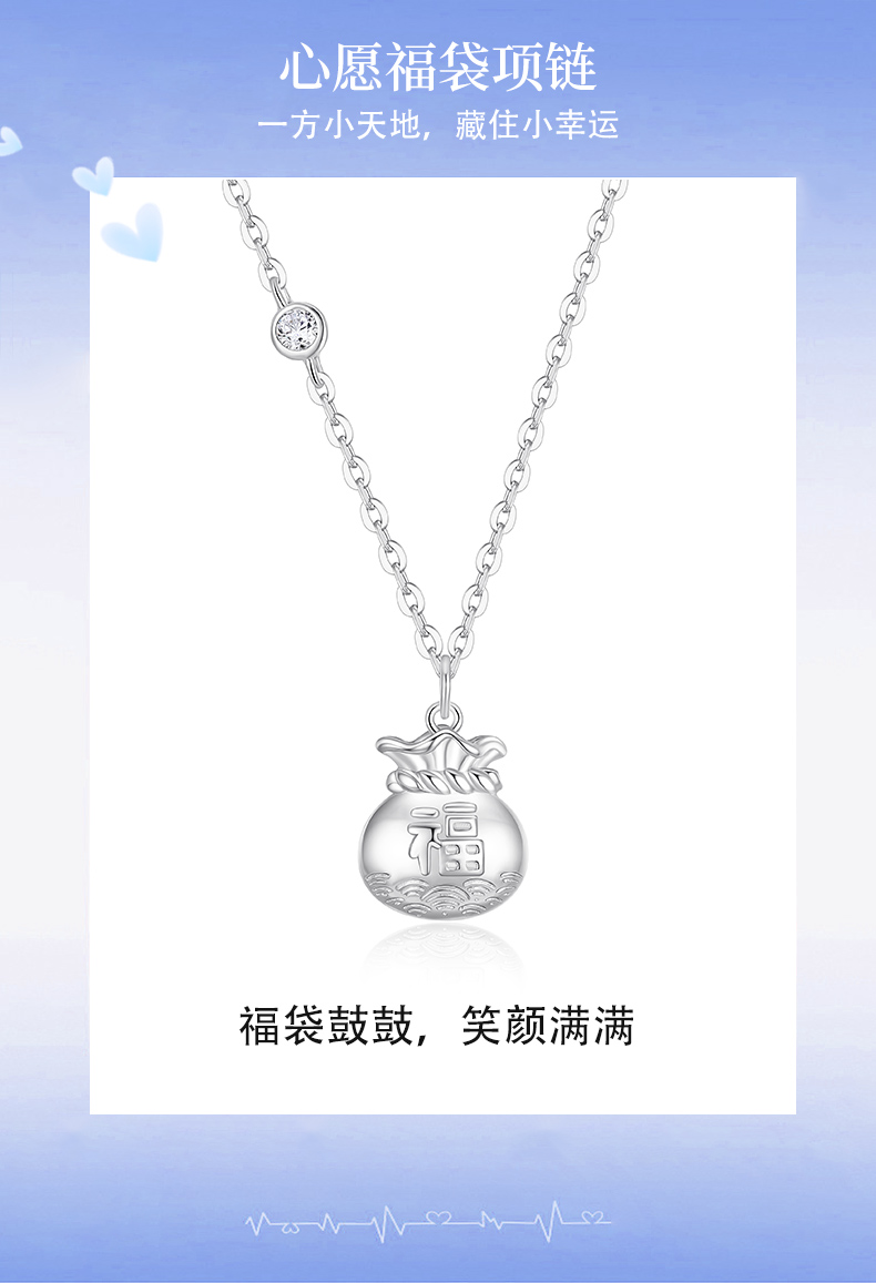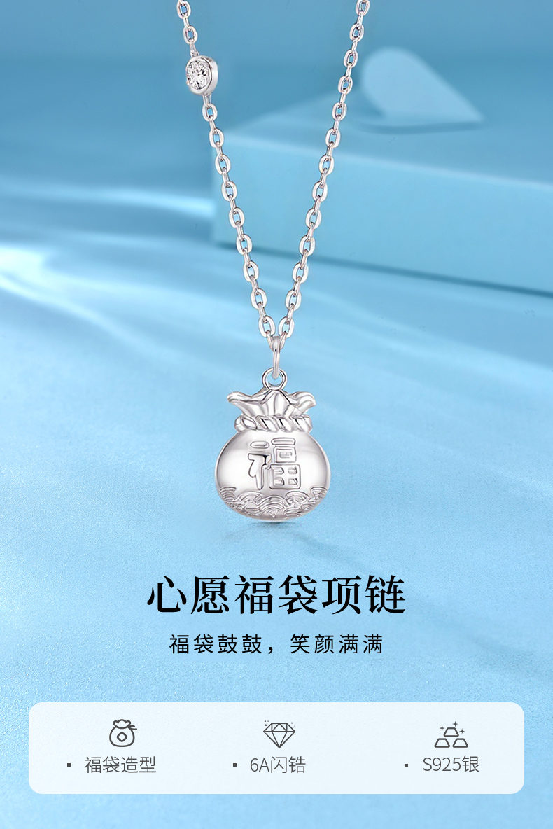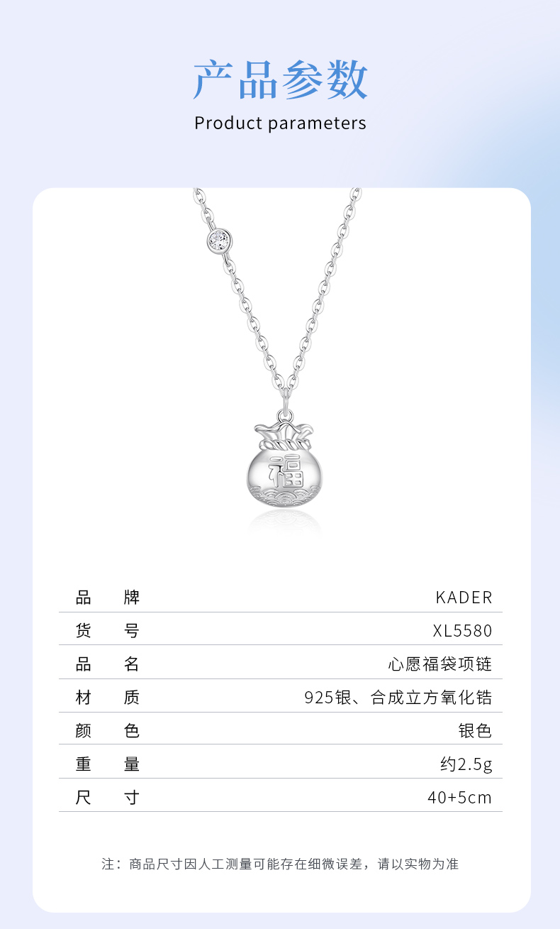 卡蒂罗KADER 心愿福袋项链 925银新中式国潮财运福袋小众设计锁骨链 简约大气轻奢百搭高级感