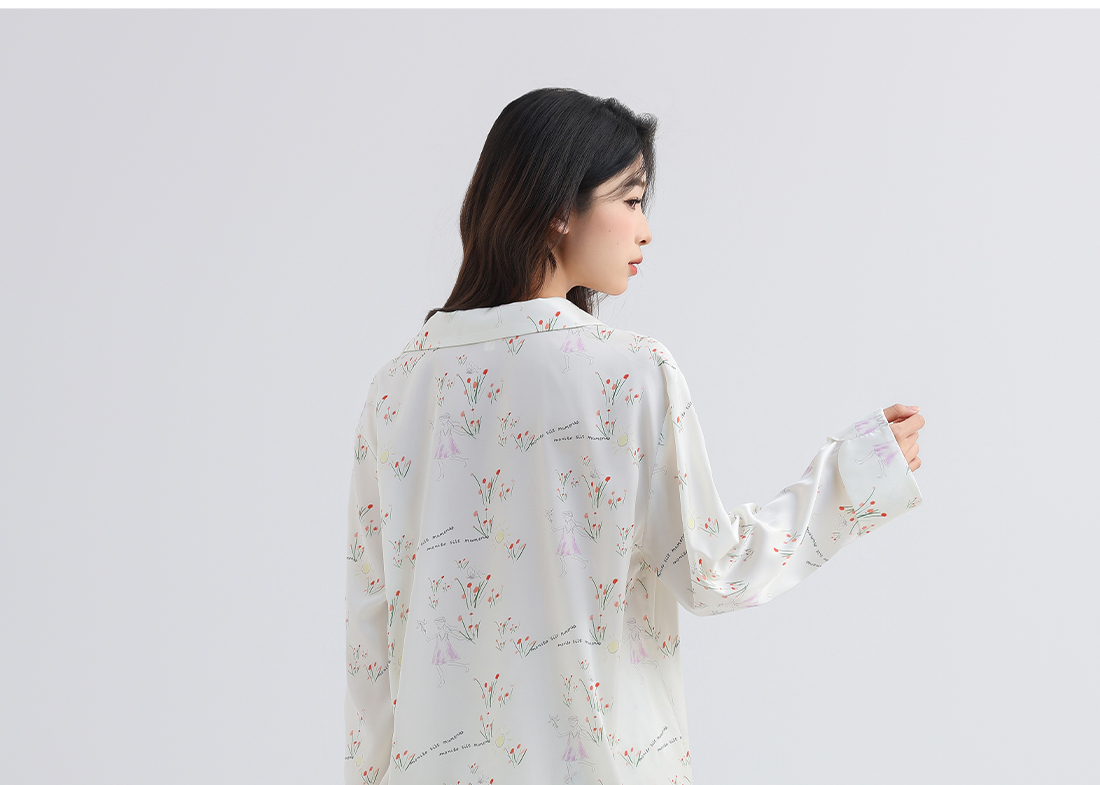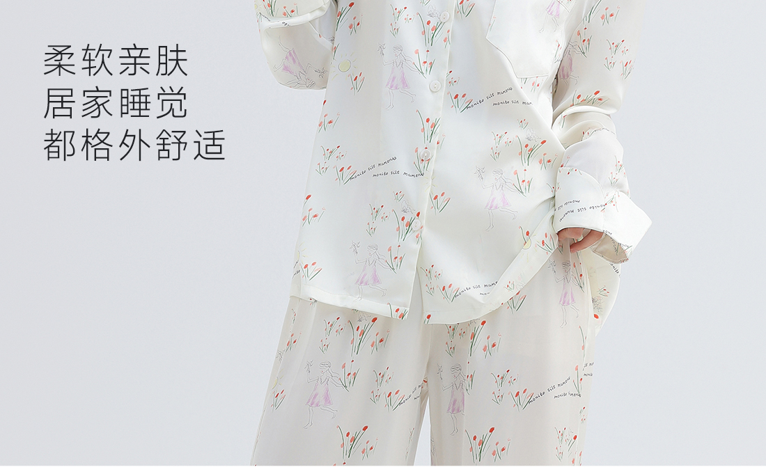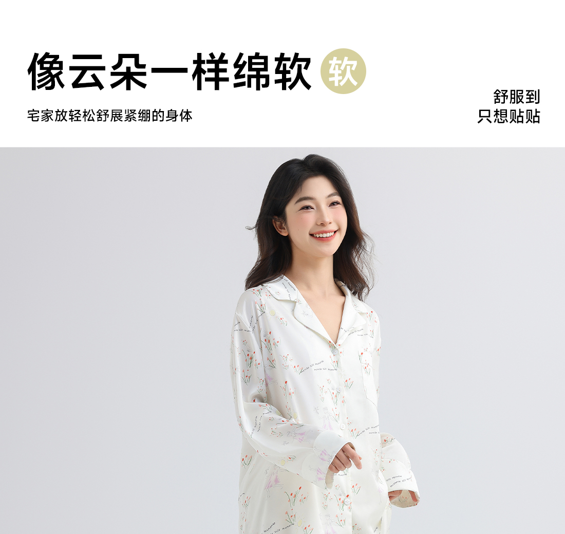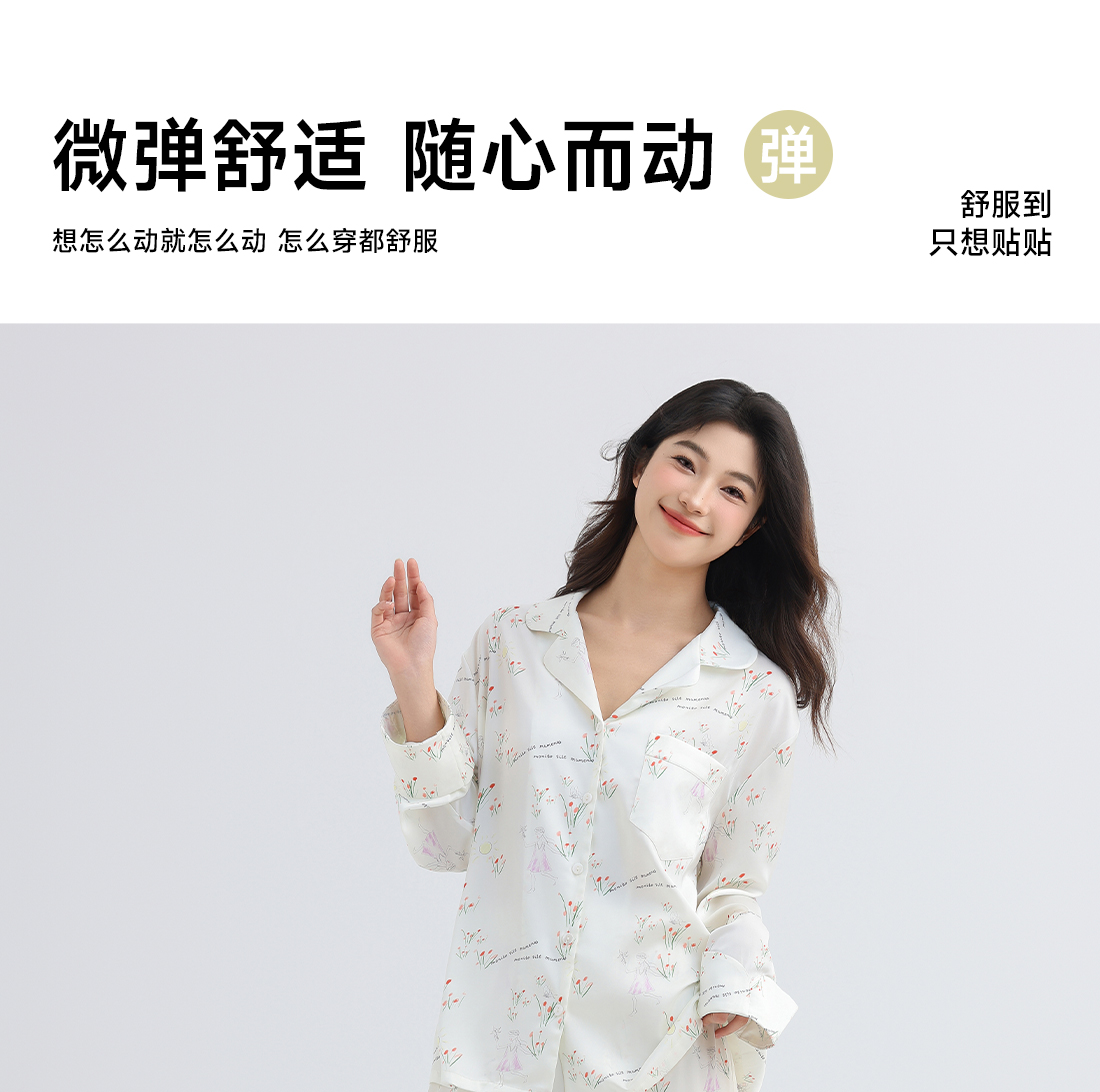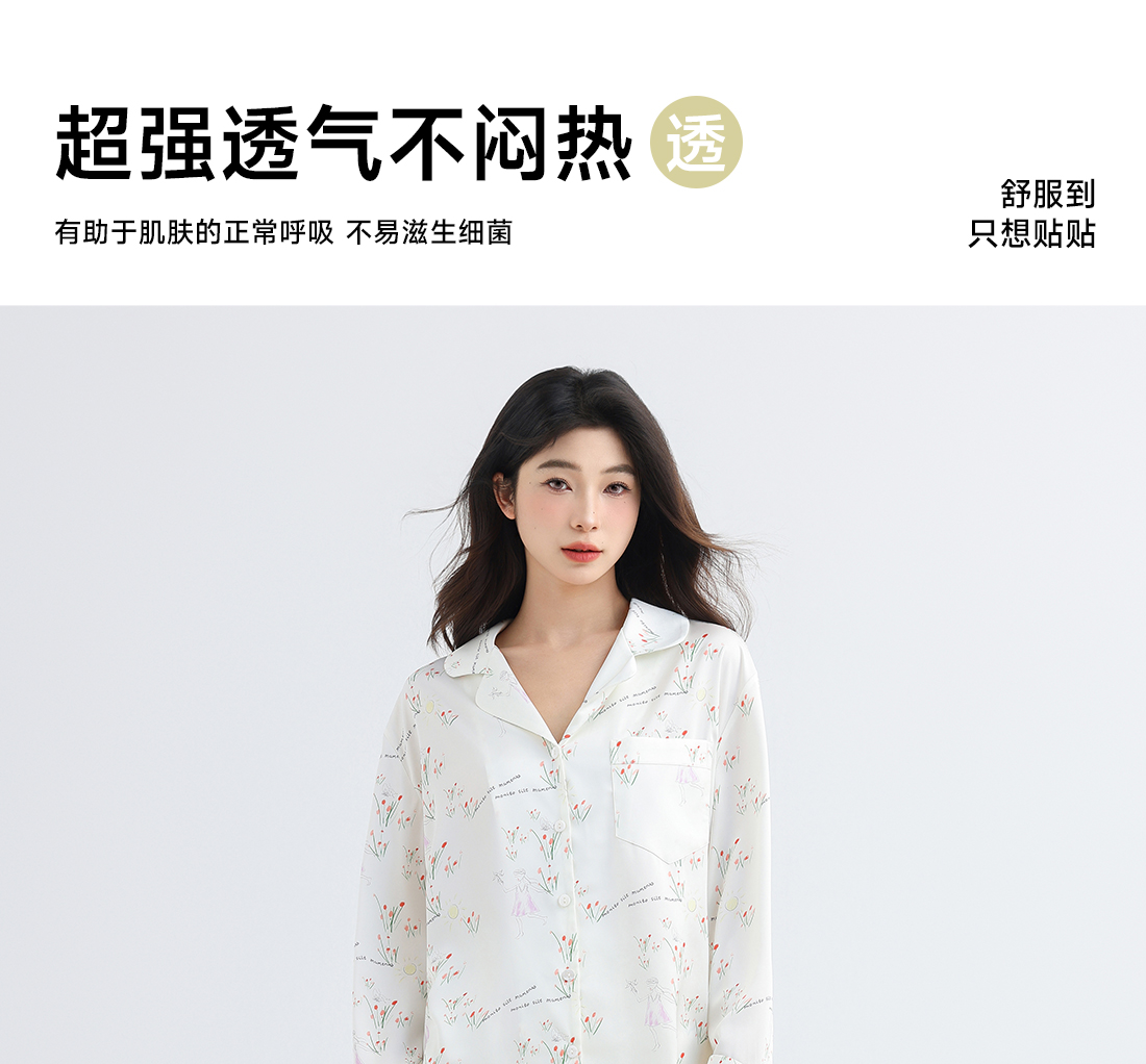 美季美优女士睡衣春秋夏季2025新款高级感冰丝白色家居服长袖套装