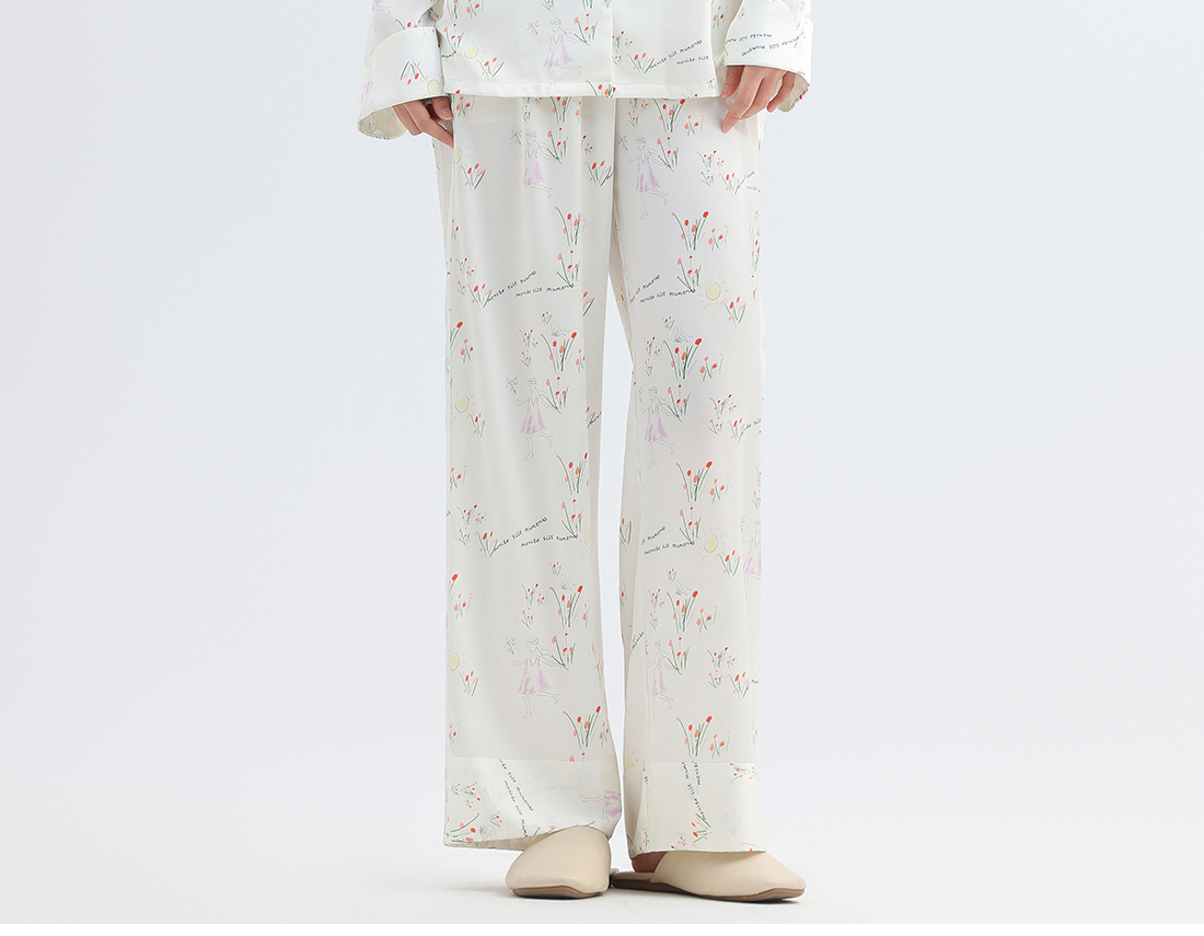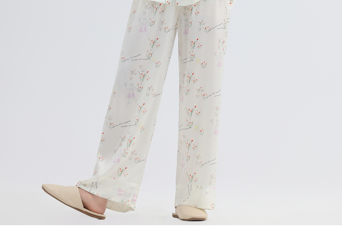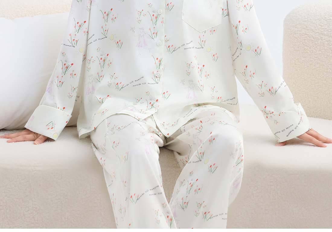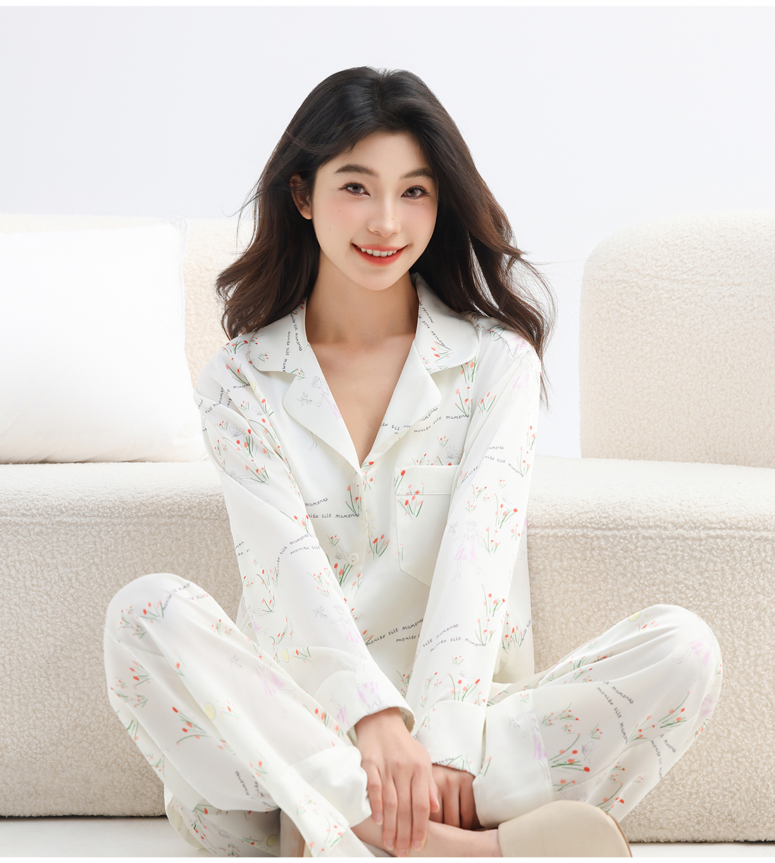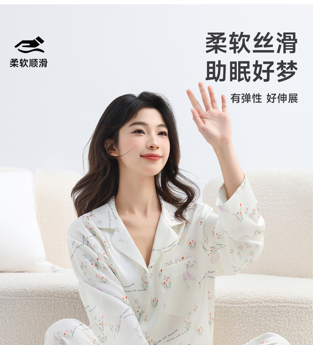 美季美优女士睡衣春秋夏季2025新款高级感冰丝白色家居服长袖套装