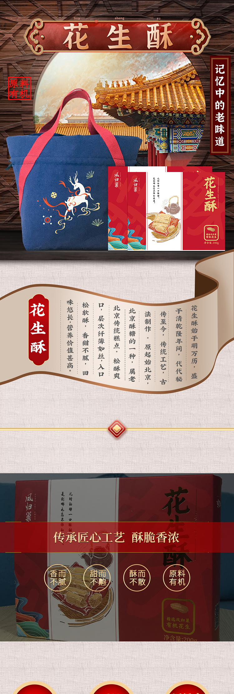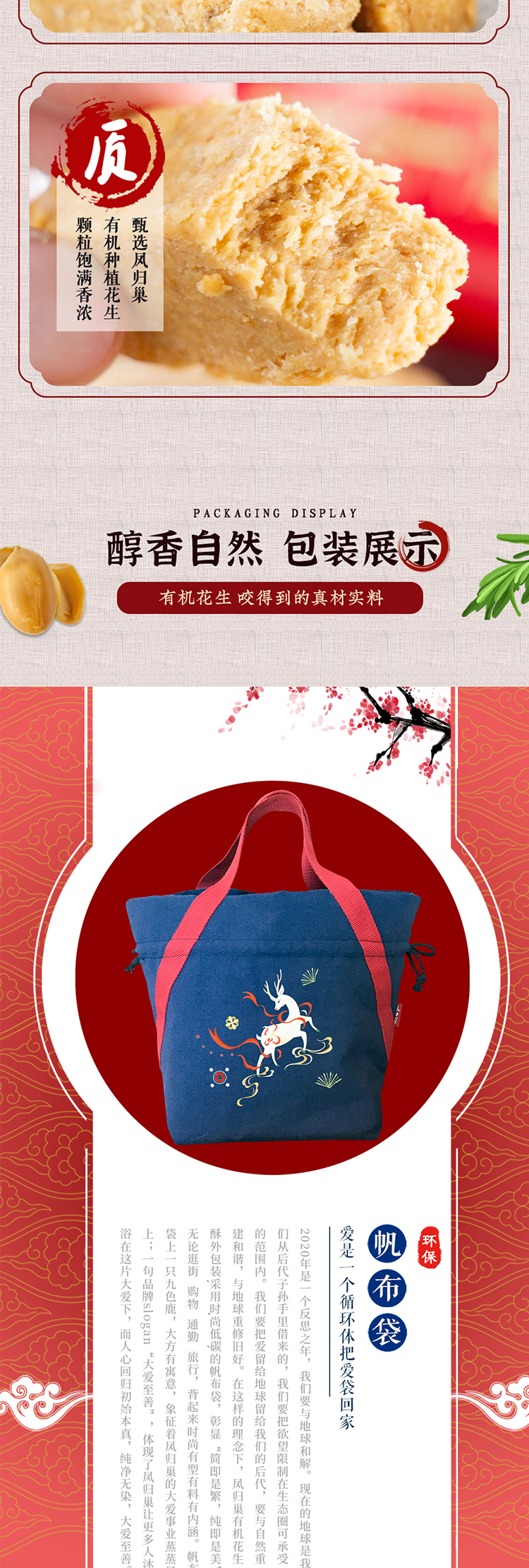 社区团购 凤归巢 花生酥礼盒装~定制款九色鹿环保袋 200g*4盒 顺丰包邮