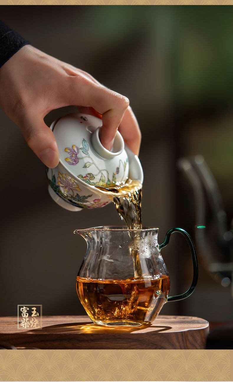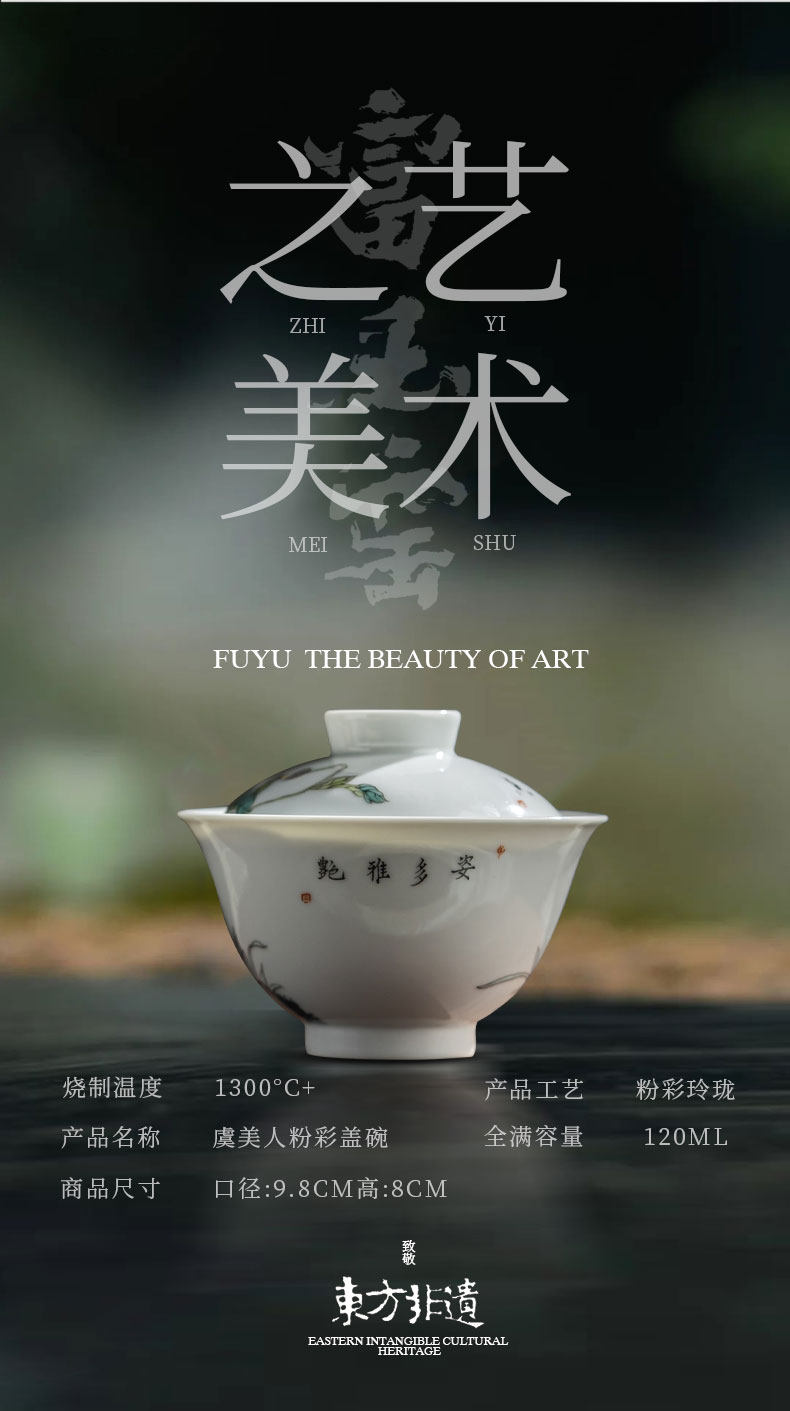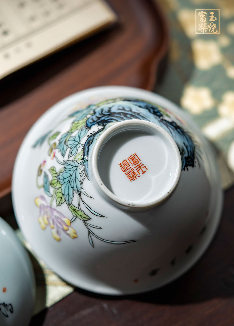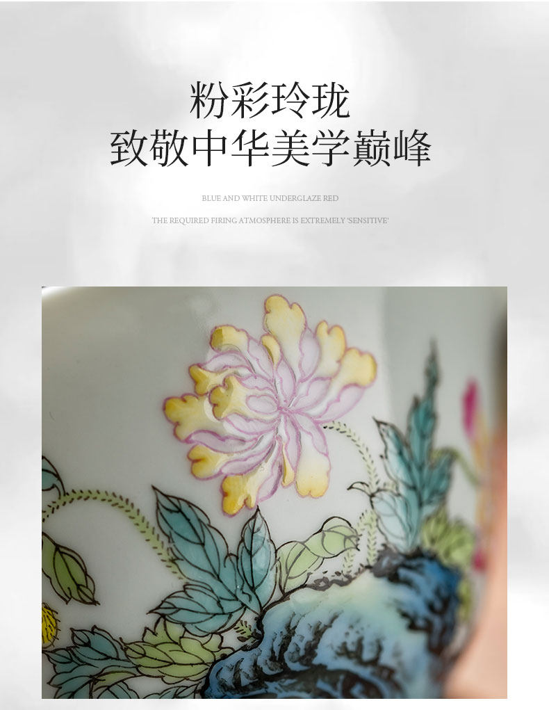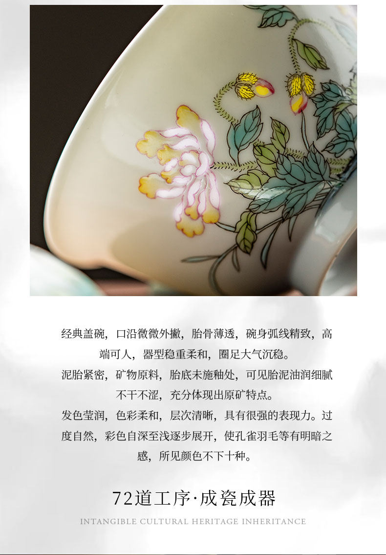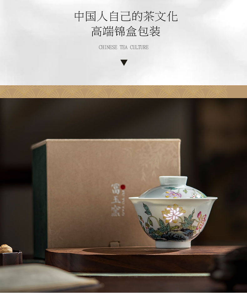 富玉窑 虞美人陶瓷景德镇粉彩玲珑盖碗茶杯