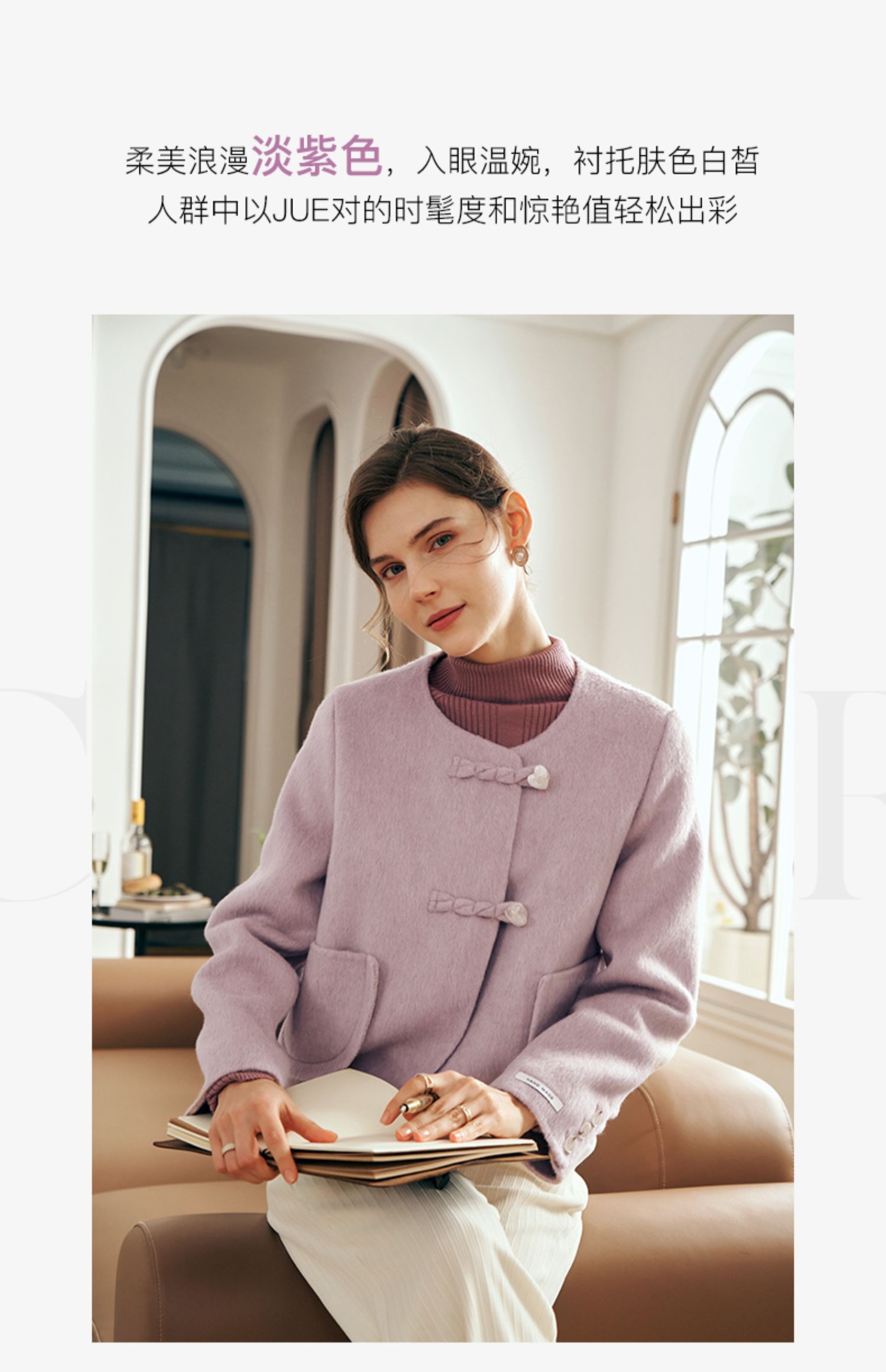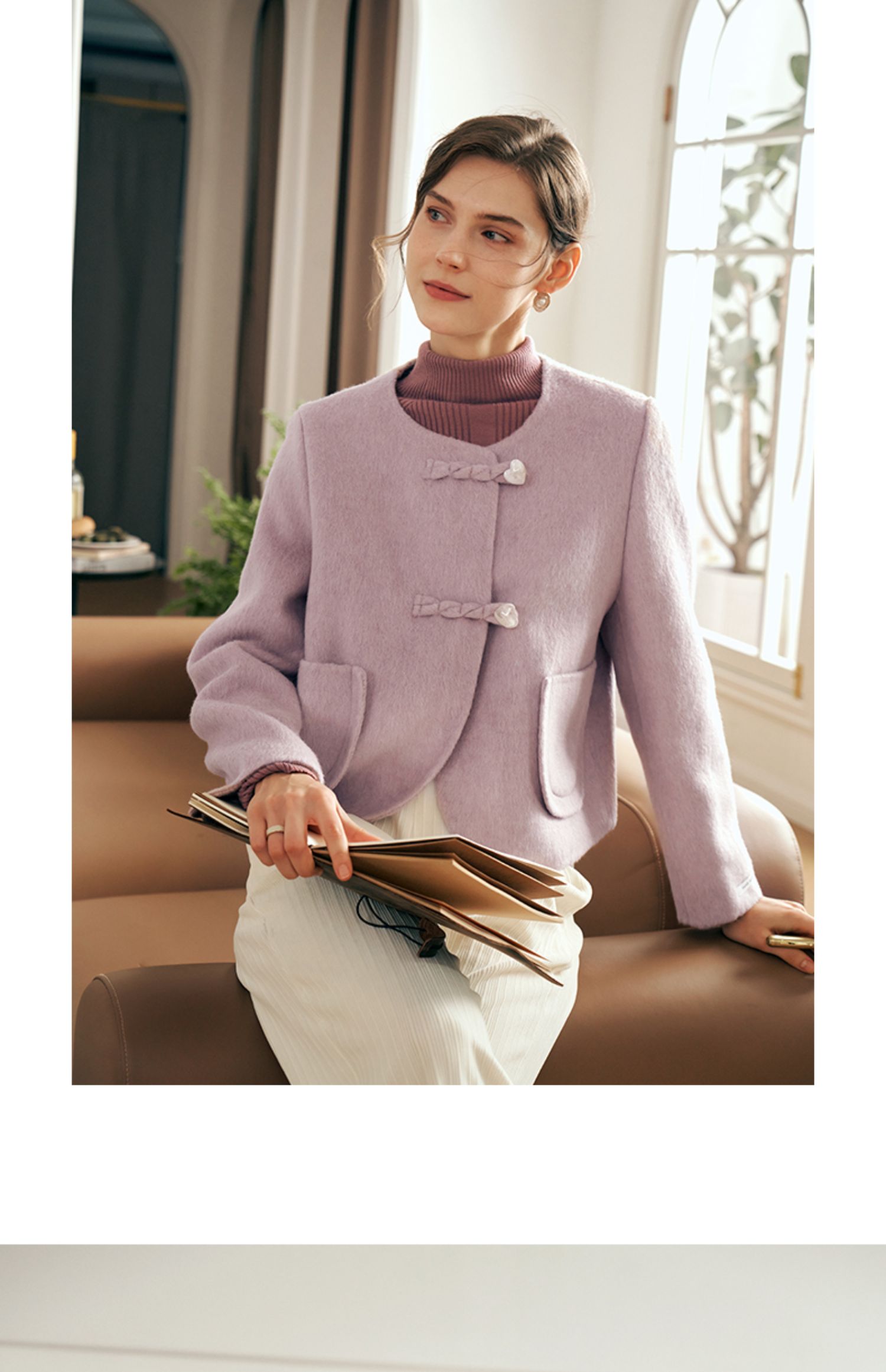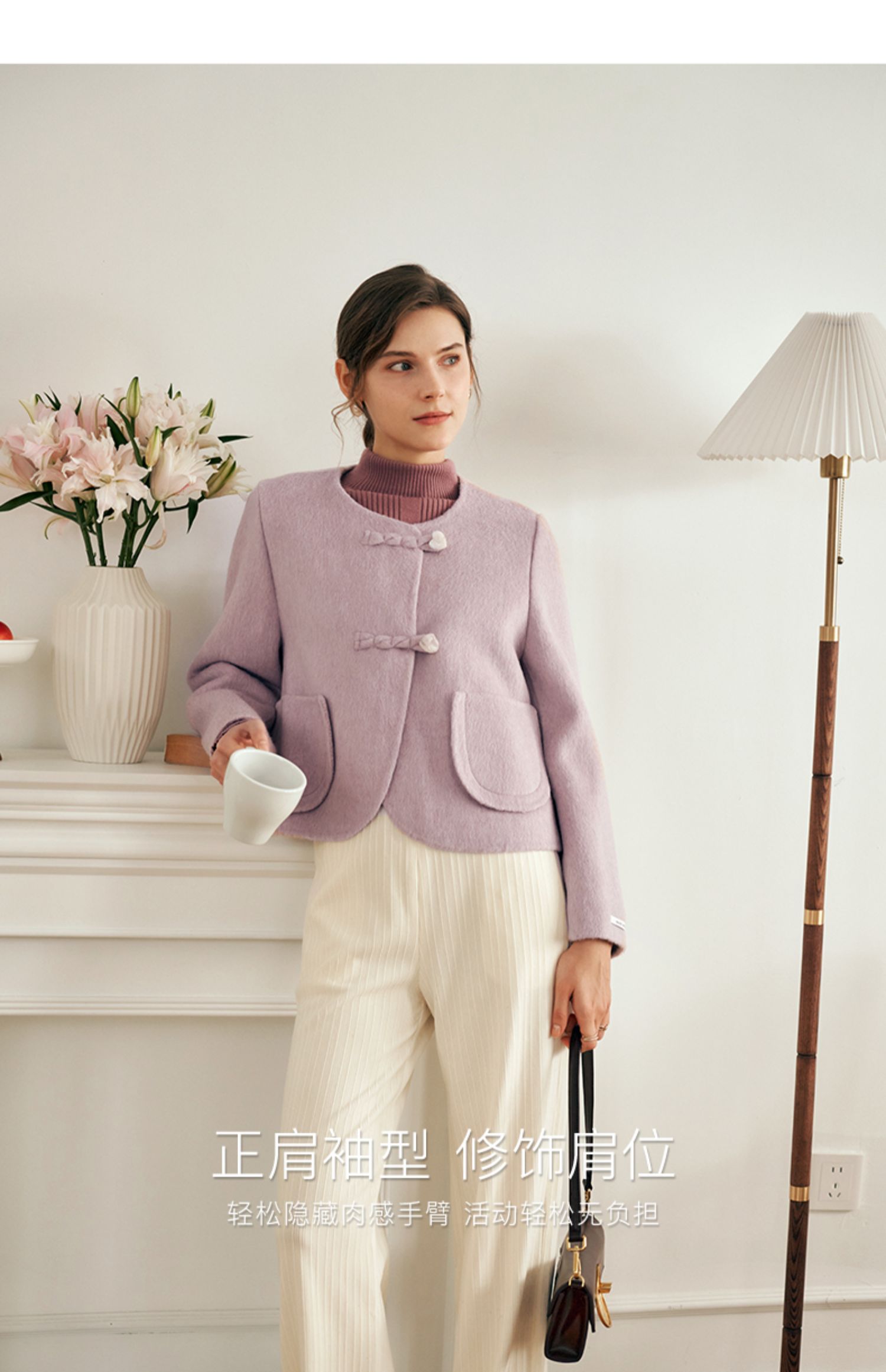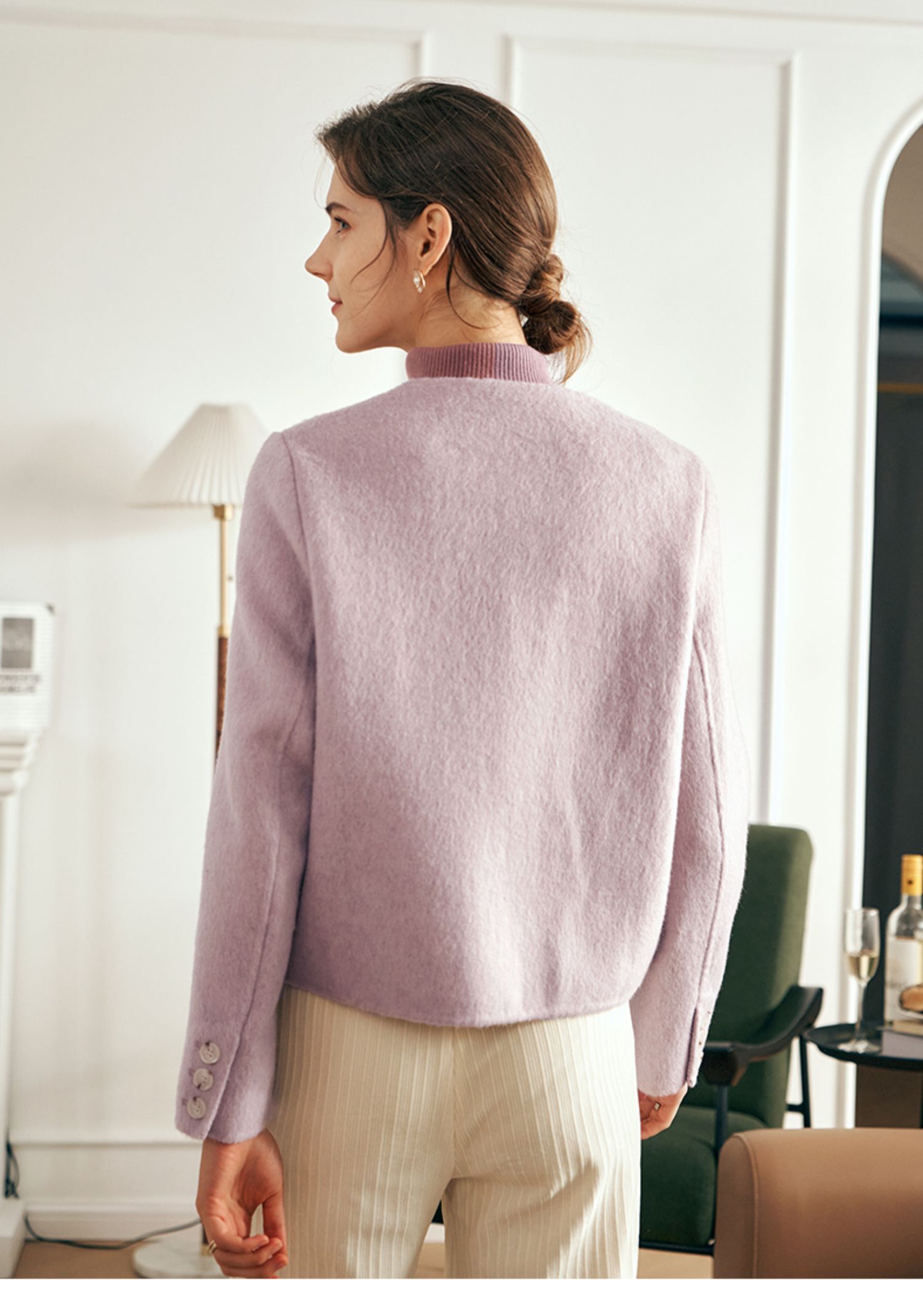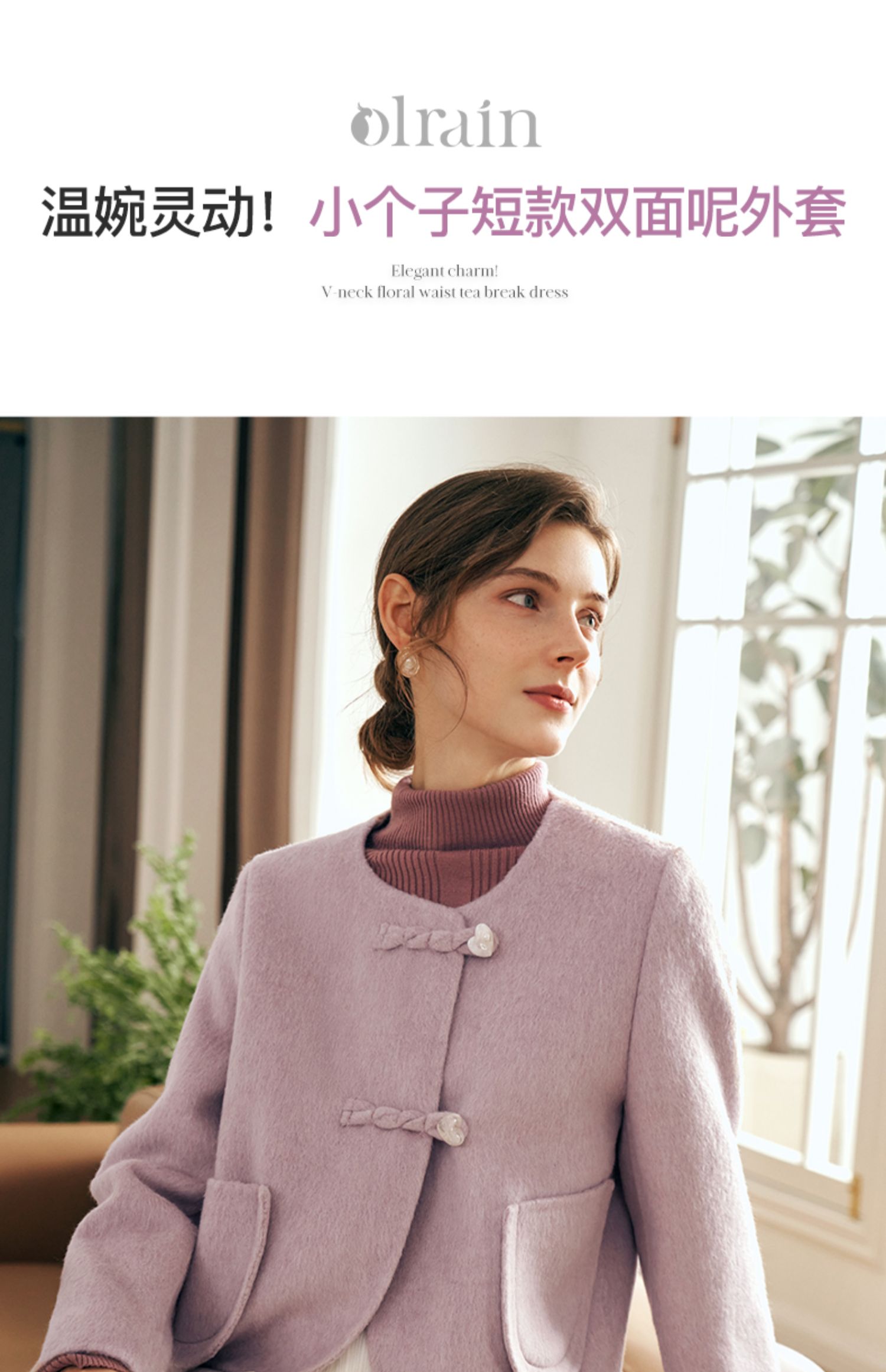OLrain欧芮儿淡紫色短款毛呢外套女秋季2024年新款小个子气质大衣