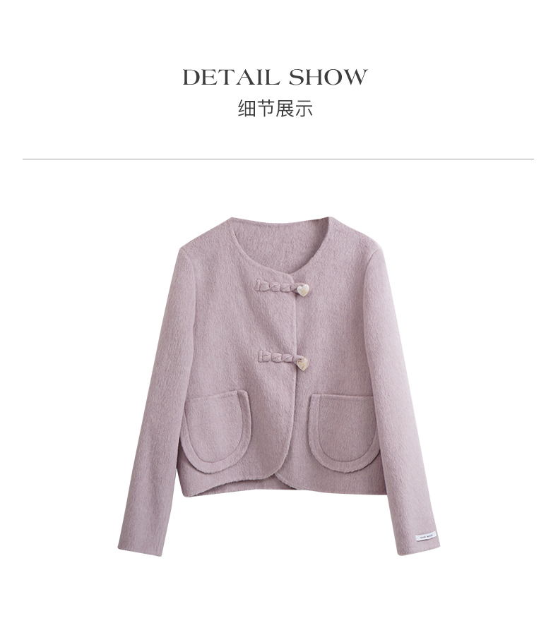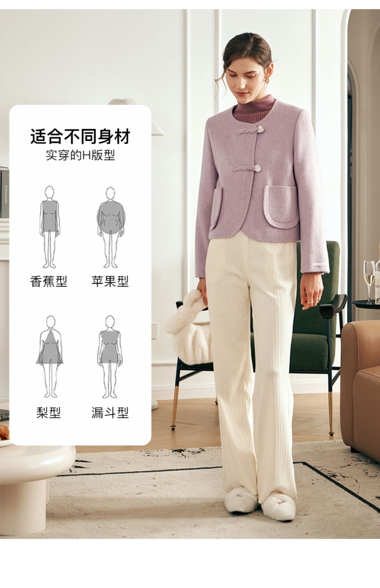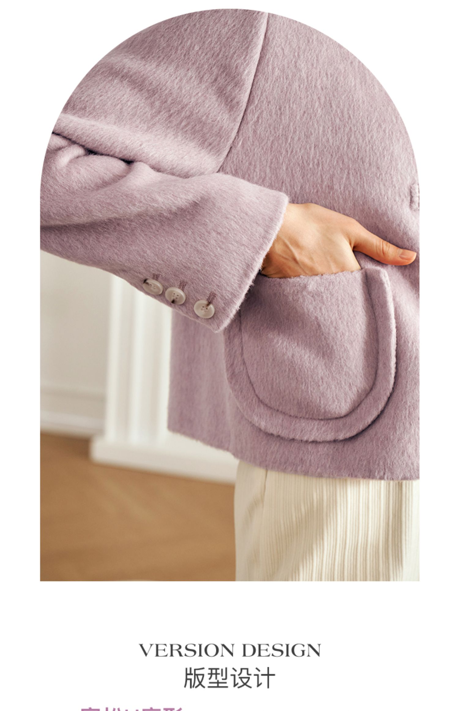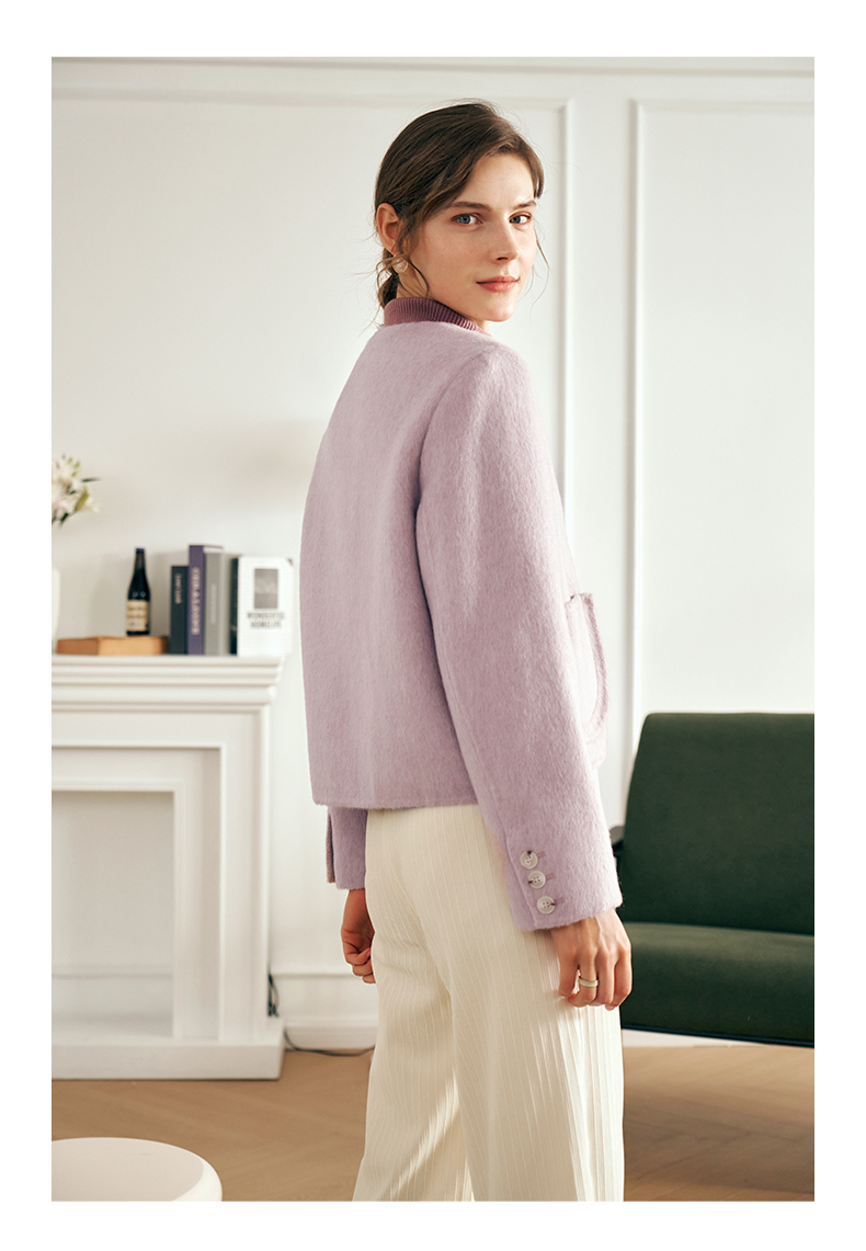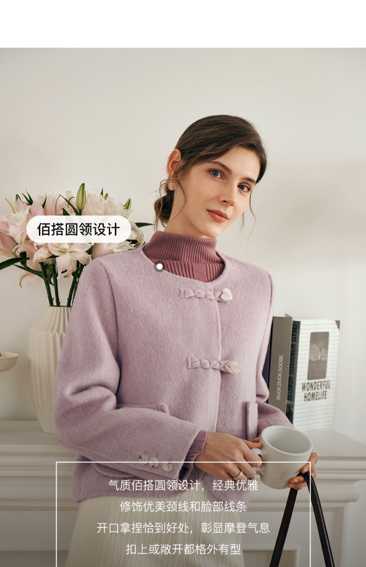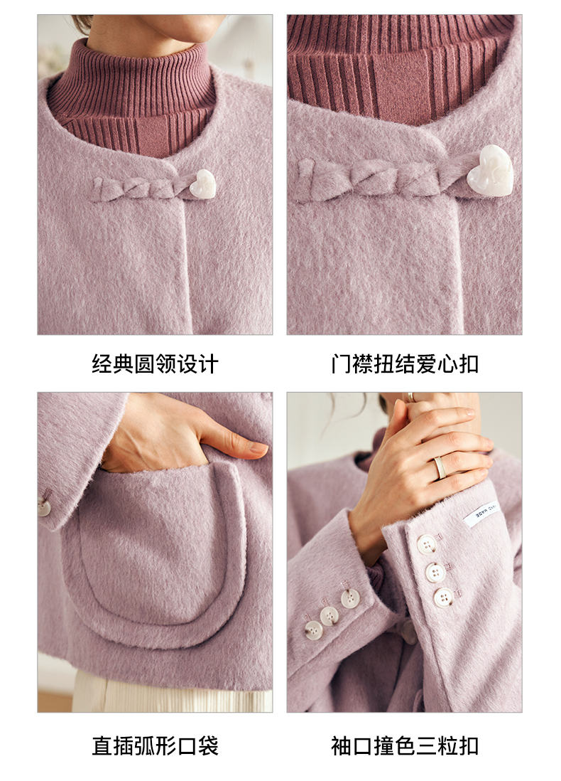 OLrain欧芮儿淡紫色短款毛呢外套女秋季2024年新款小个子气质大衣