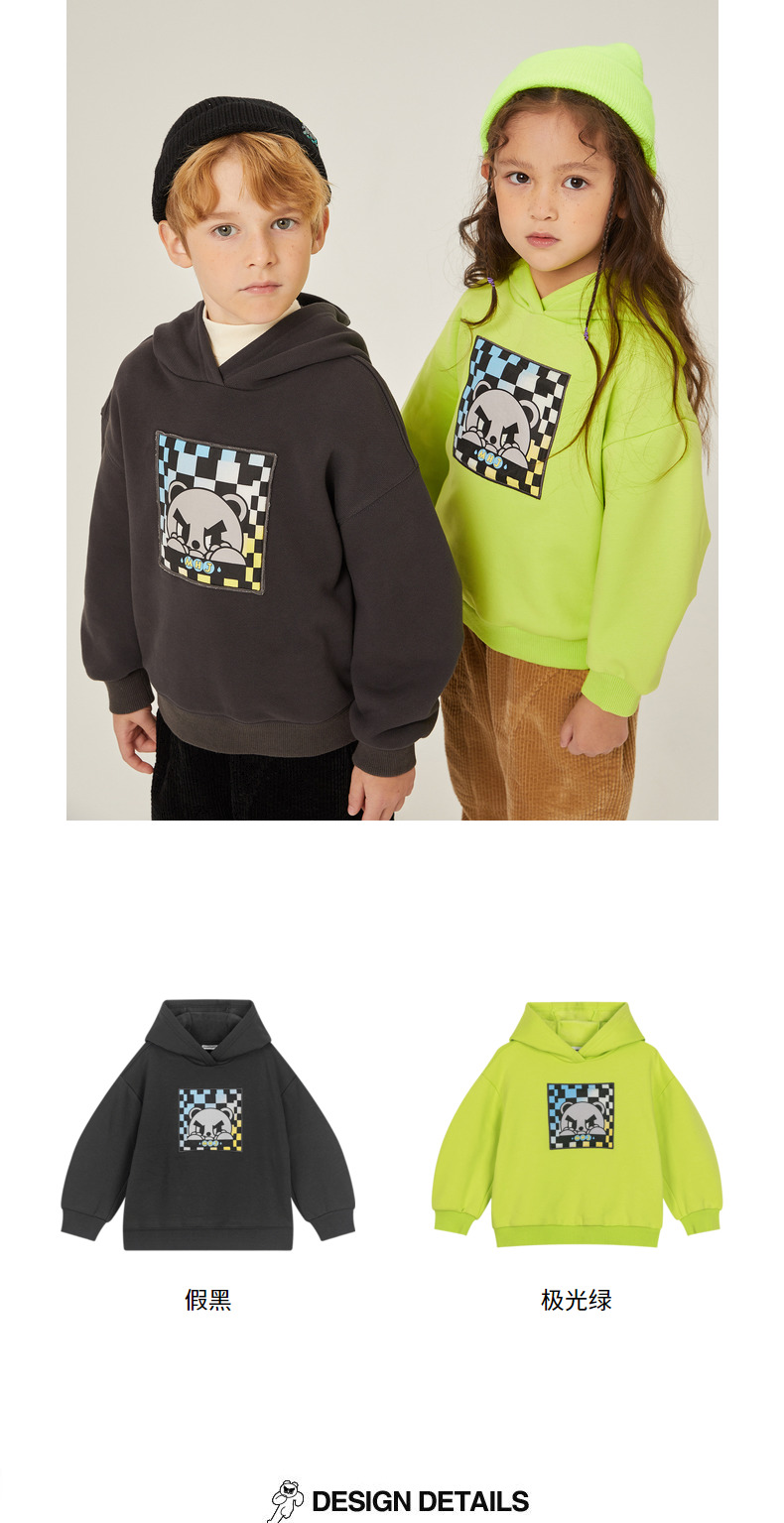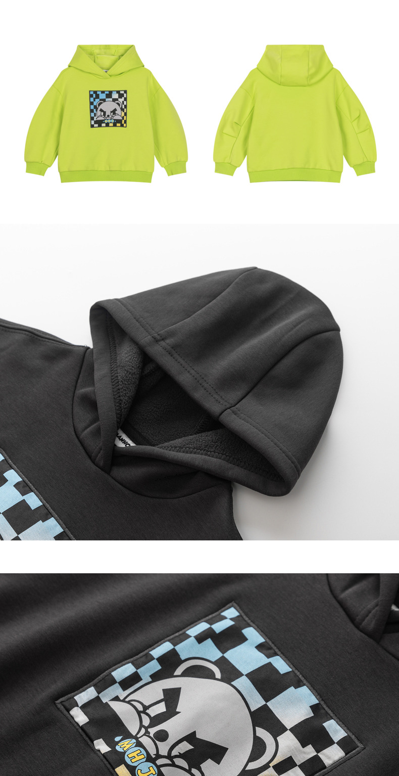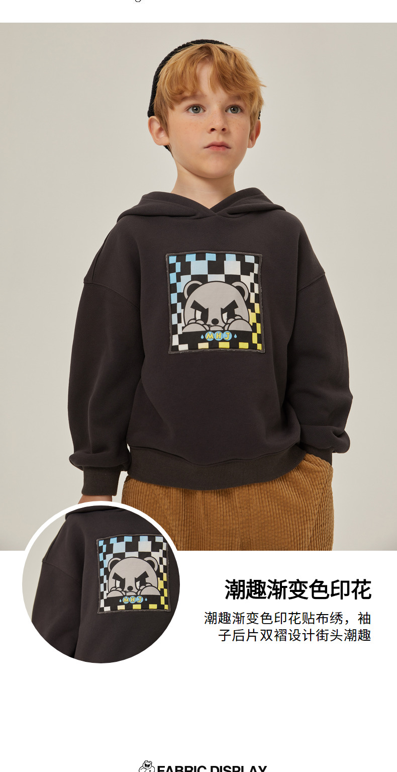 马拉丁潮牌漫画家儿童卫衣冬2021新品渐变色数码印花加厚连帽卫衣