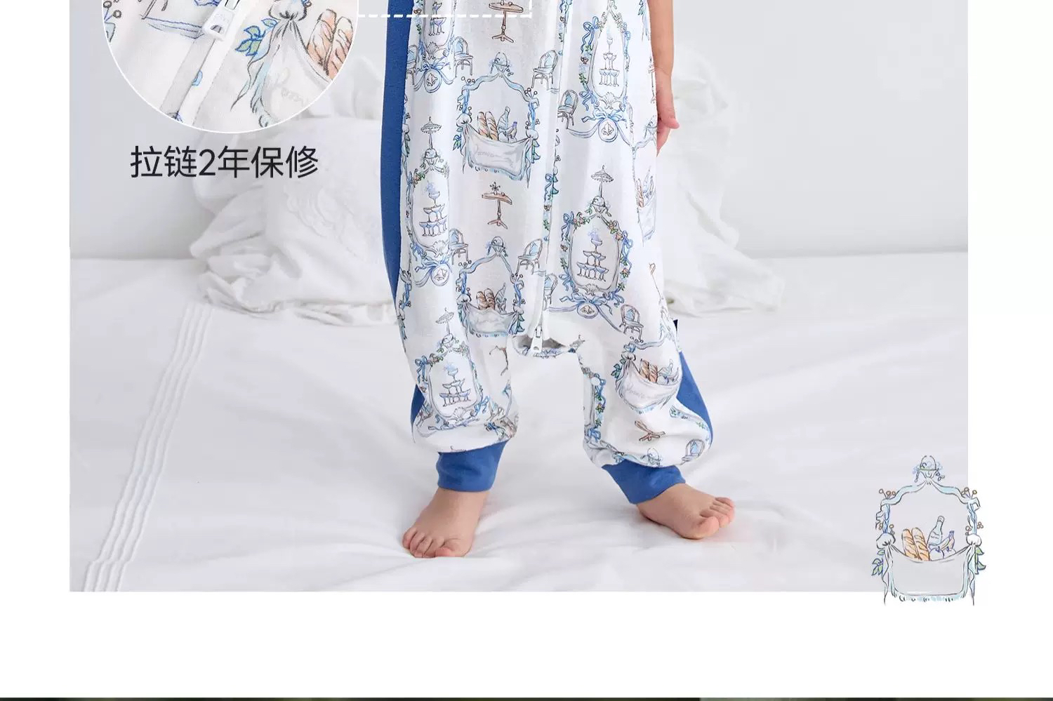 Domiamia 婴幼儿纱布双层短袖分腿睡袋 适宜25-30度