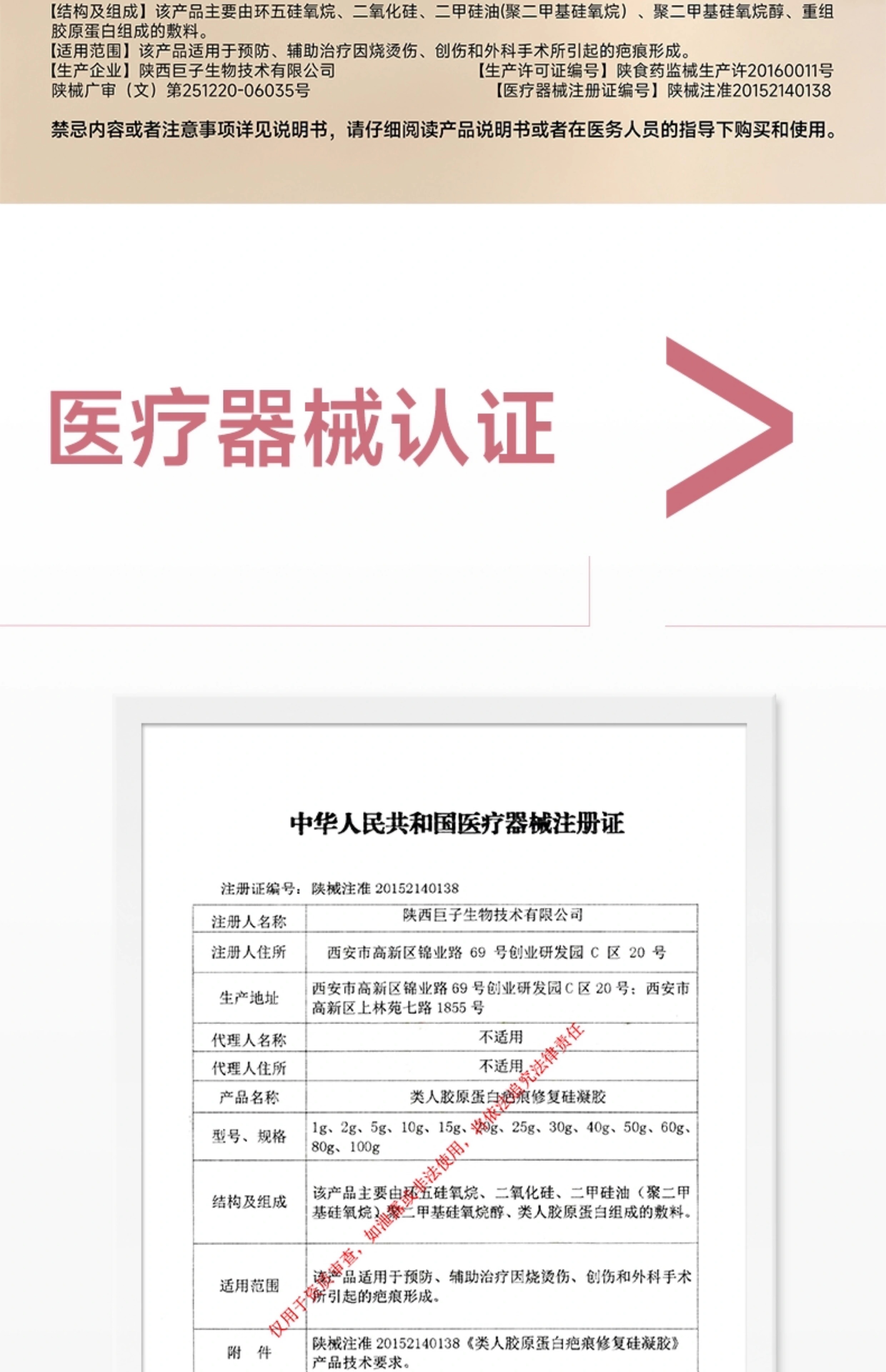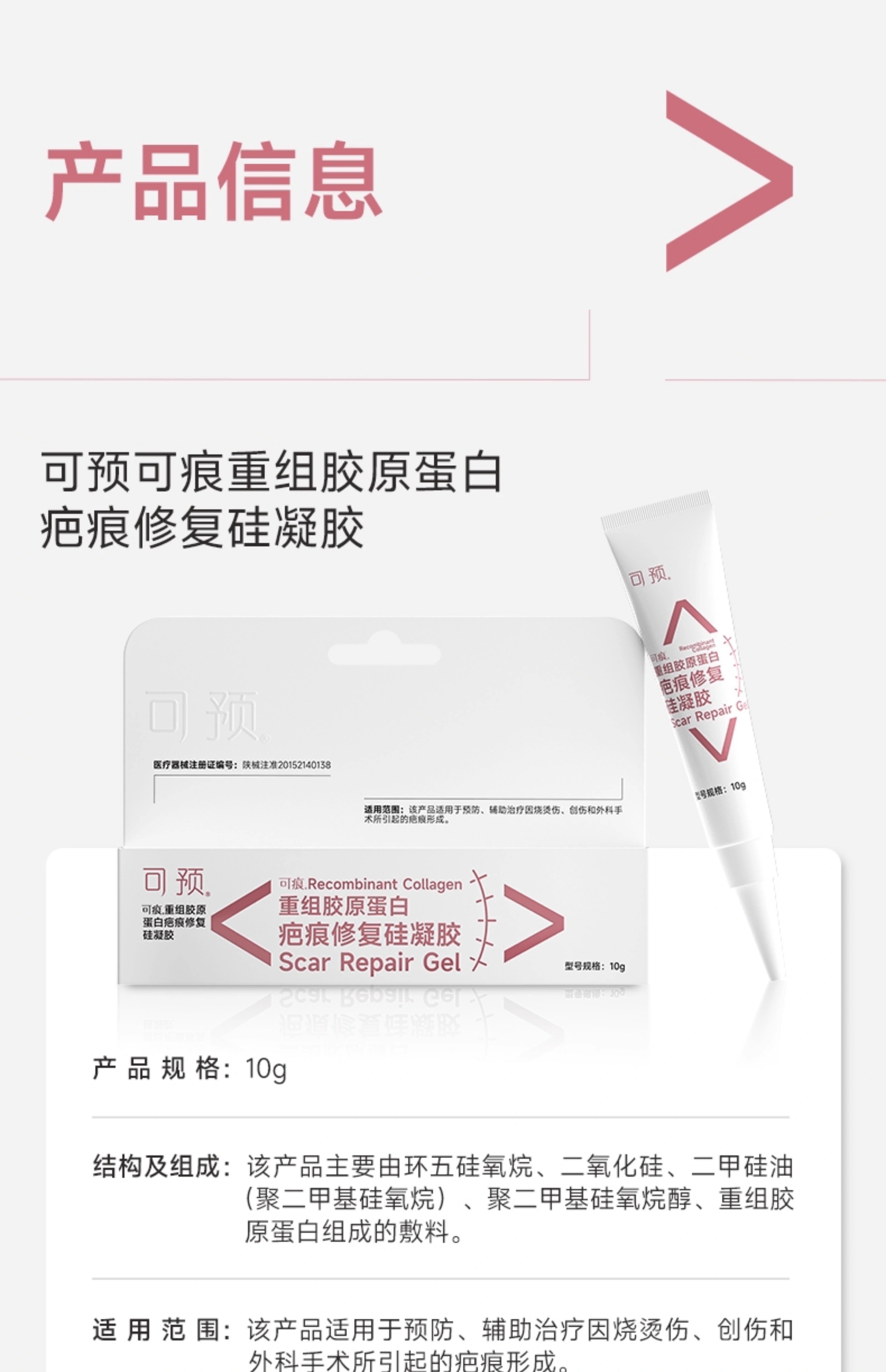 可预可痕重组胶原蛋白疤痕修复硅凝胶烧烫创伤疤痕