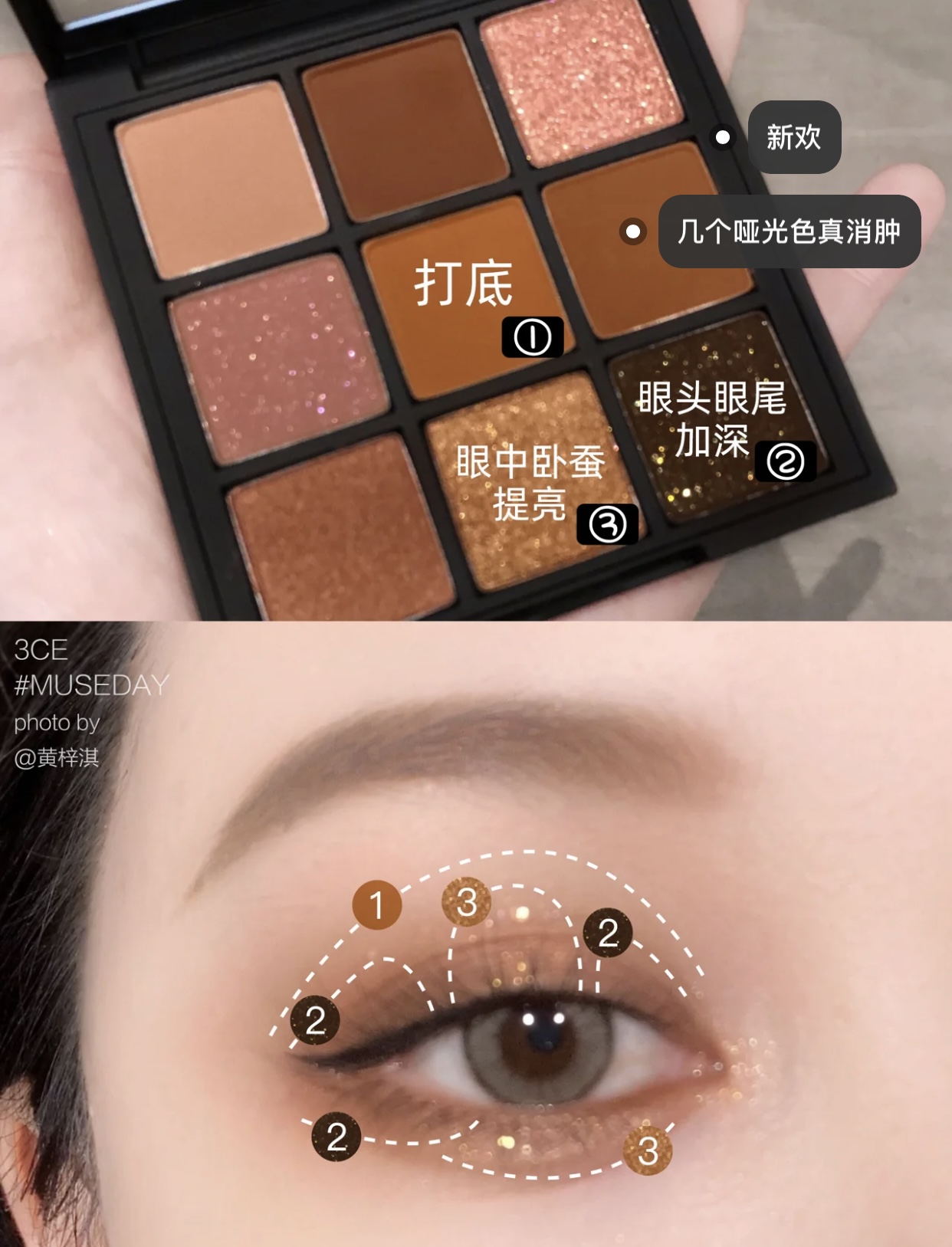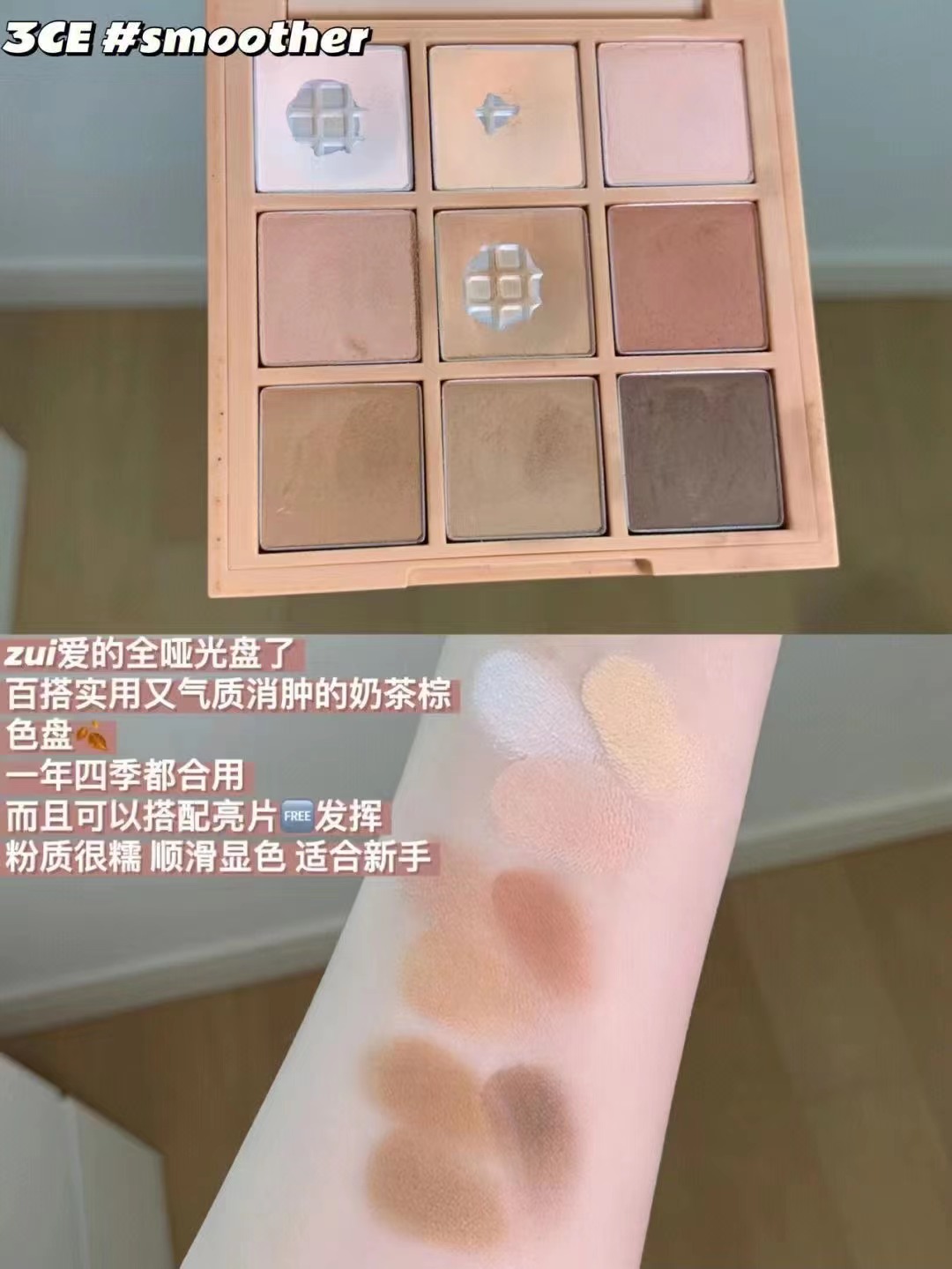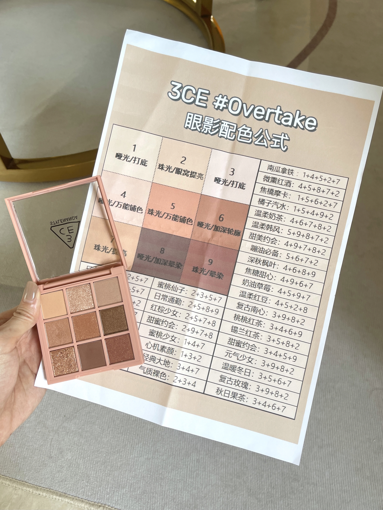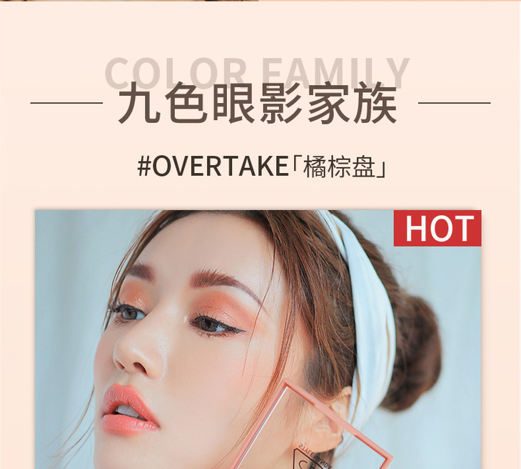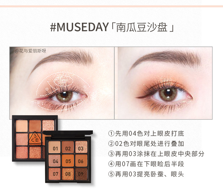 韩国3ce珠光哑光overtake/smoother 奶茶裸棕色南瓜色橘棕色9色九宫格眼影盘