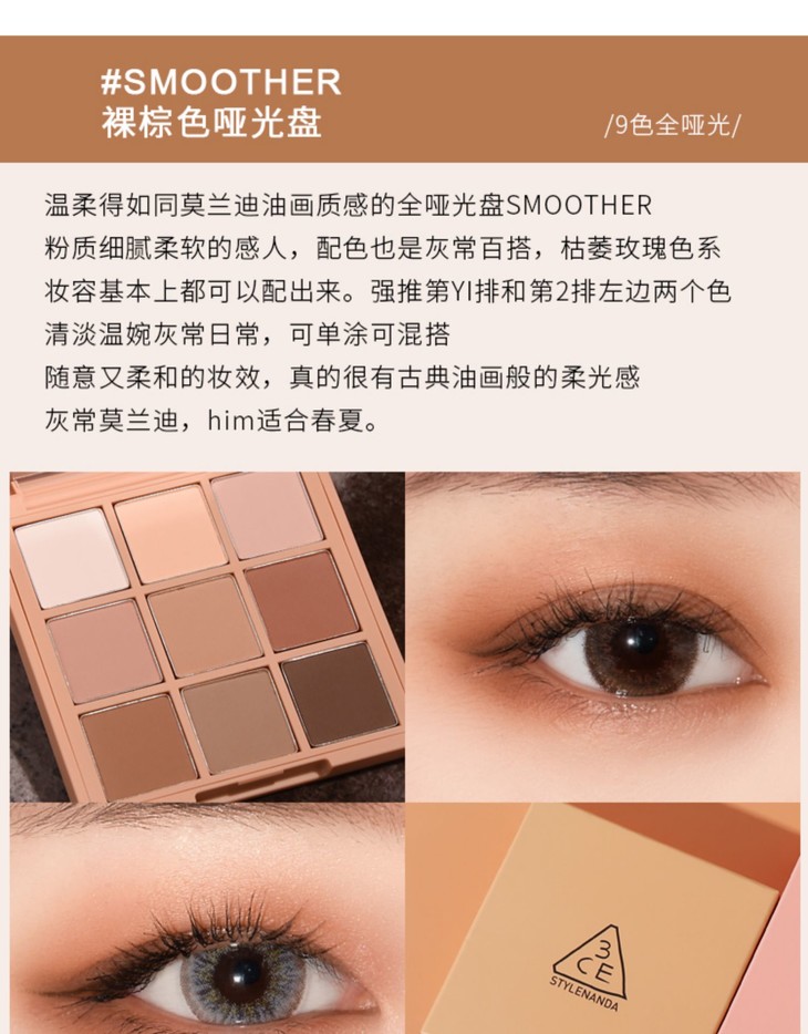 3CE四宫格烟熏豆沙SIDEBYSIDE