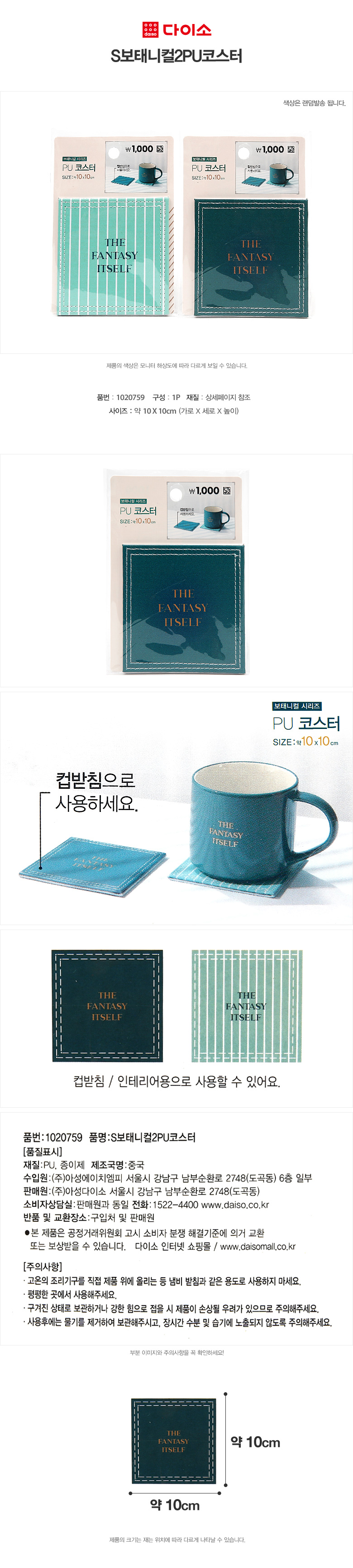 大创餐垫 Daiso Placemat 植物2PU杯垫-1020759JPY带授权招加盟代理