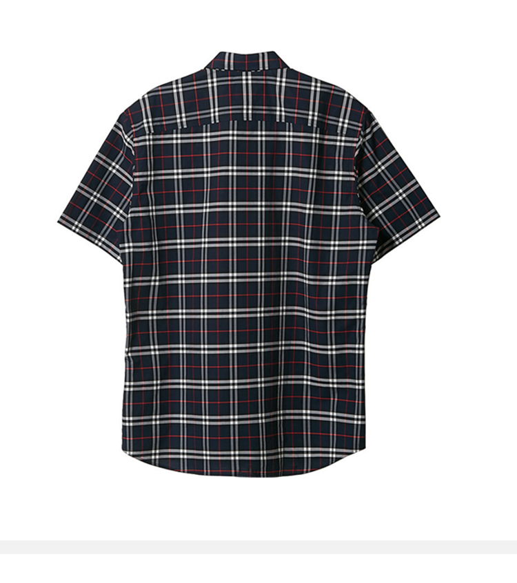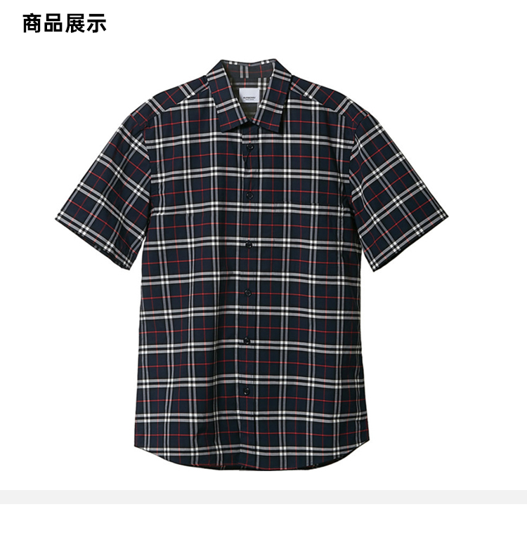 BURBERRY 巴宝莉 男士短袖小格纹弹力棉衬衫 蓝色小格子 8020964 A1960