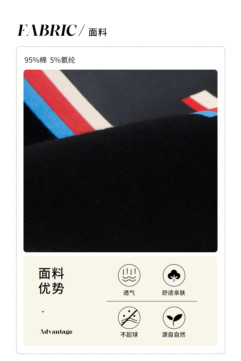 | 安全等级: B类 | 材质成分: 棉95% 聚氨酯弹性纤维(氨纶)5% |