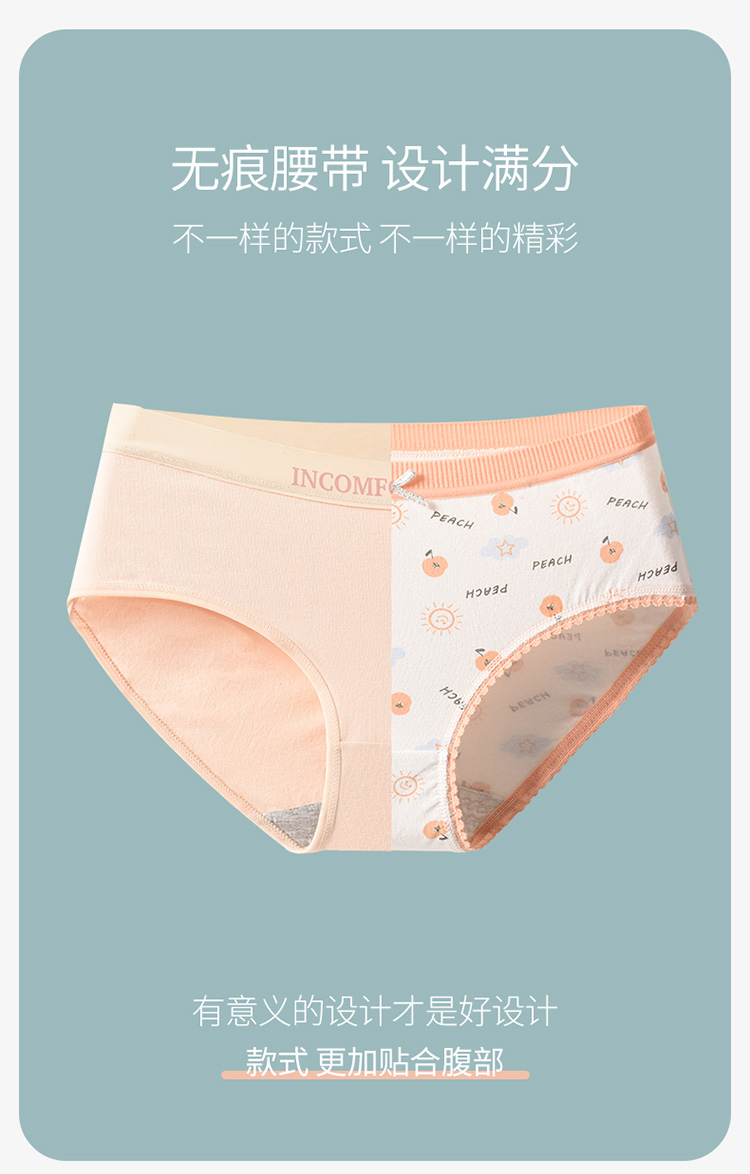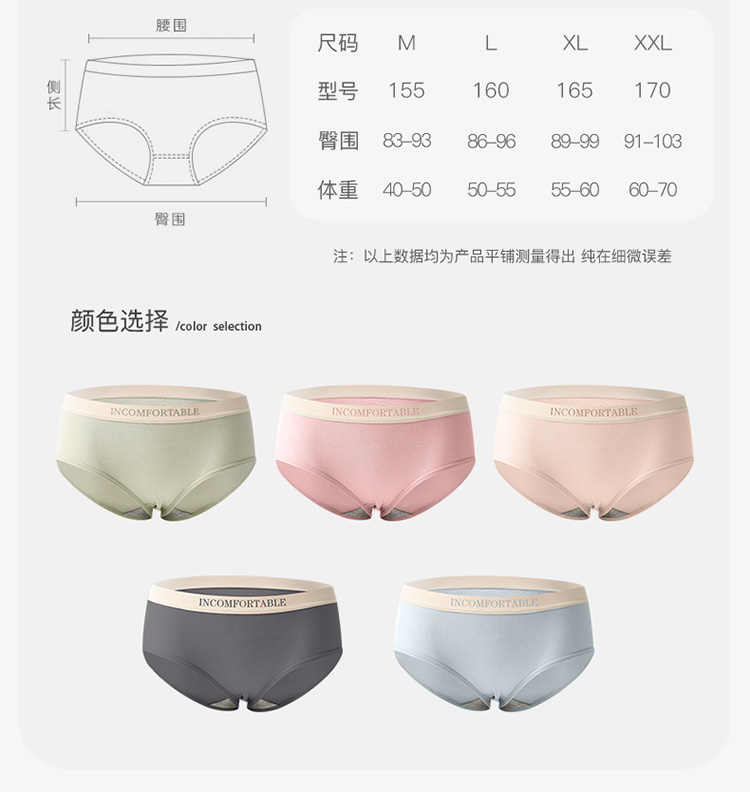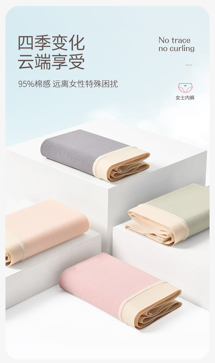 洁丽雅4条装中腰纯棉女士内裤高弹亲肤石墨烯抑菌底裆内裤女
