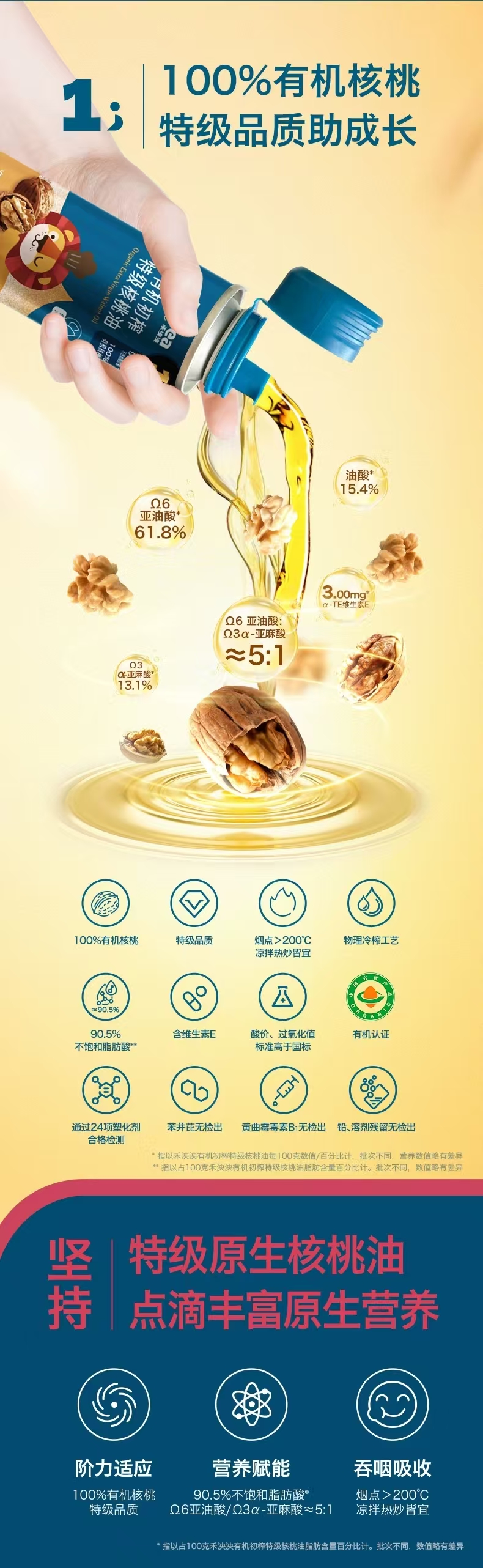 禾泱泱特级初榨食用油 特级核桃油250ml/有机初榨特级核桃油110ml/HYY-117000/105552