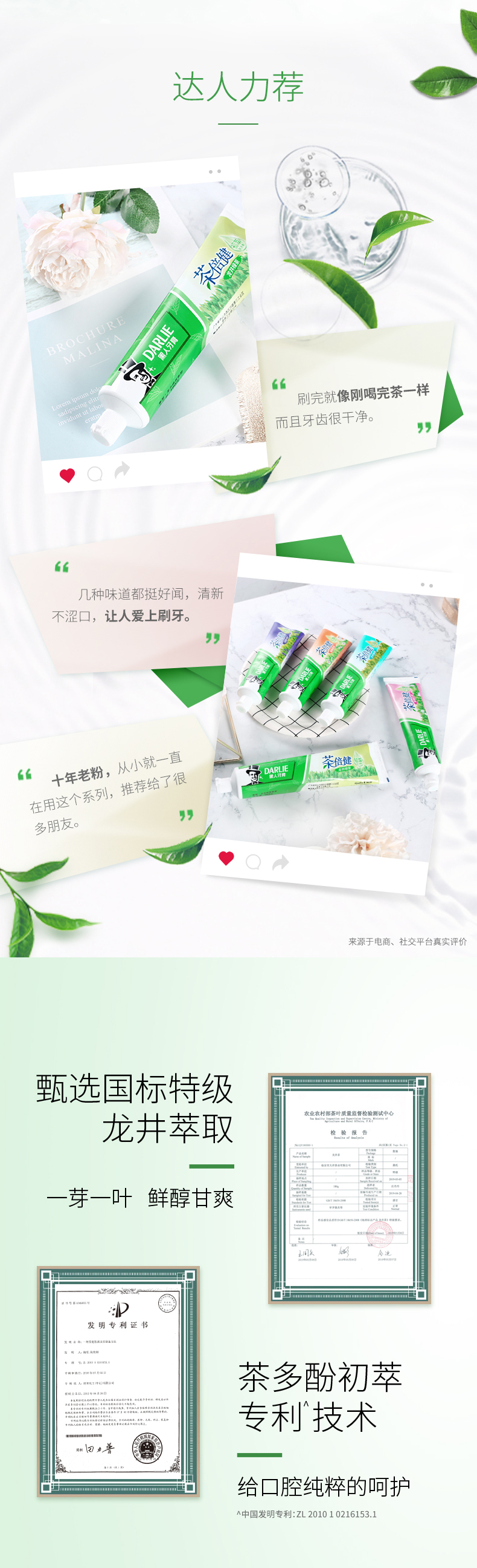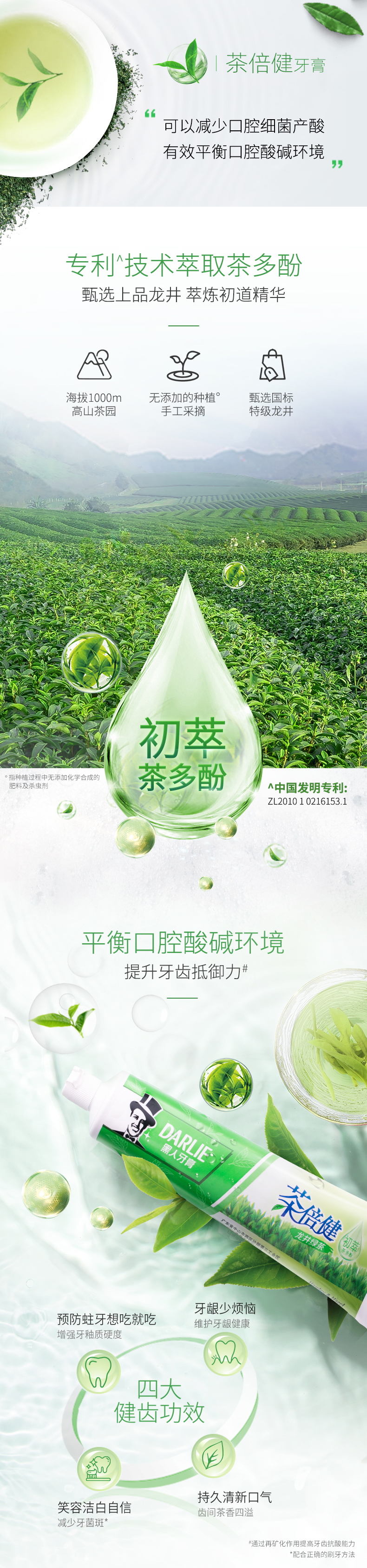 黑人牙膏茶倍健龙井绿茶190g*2支装家庭实惠装清新口气正品 日用品