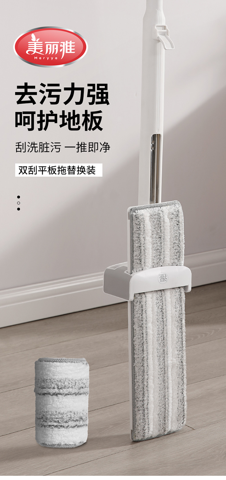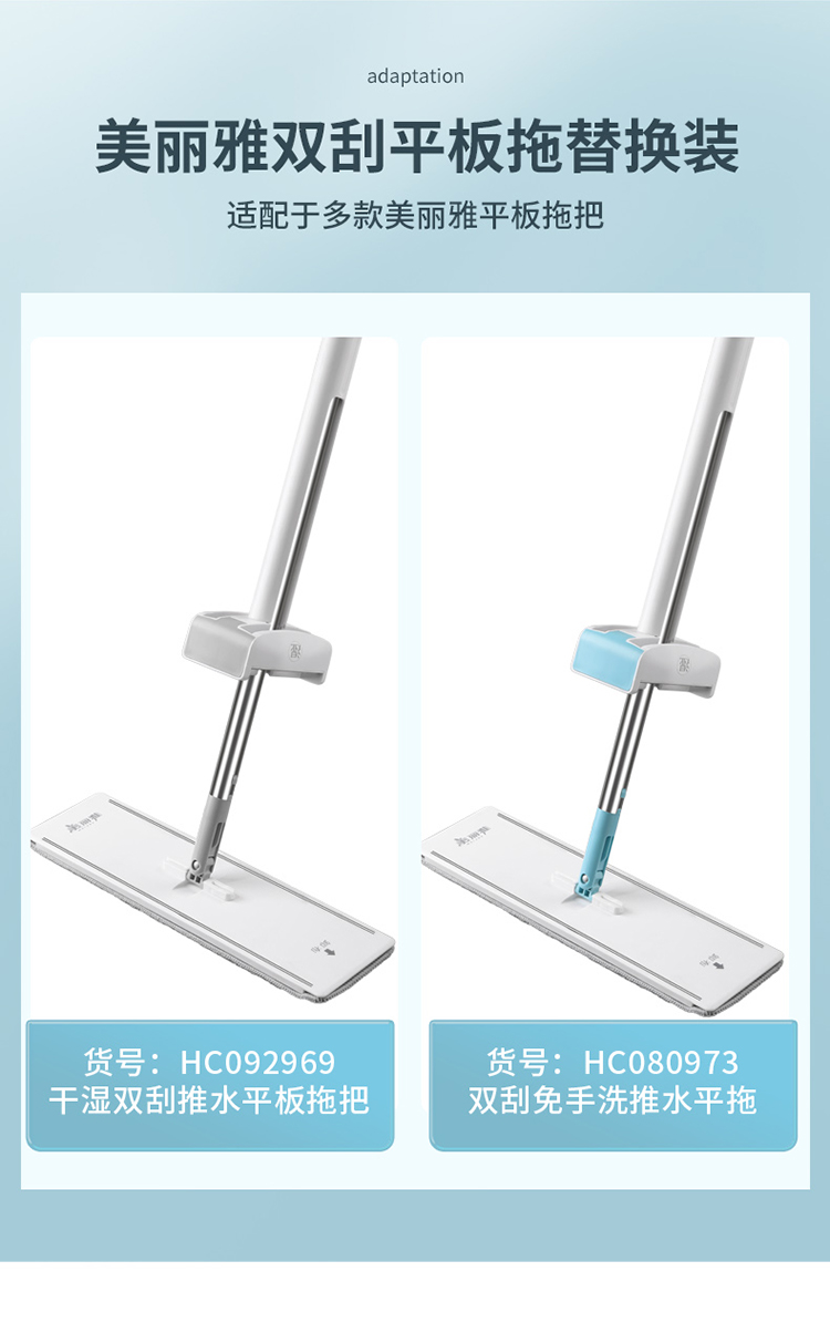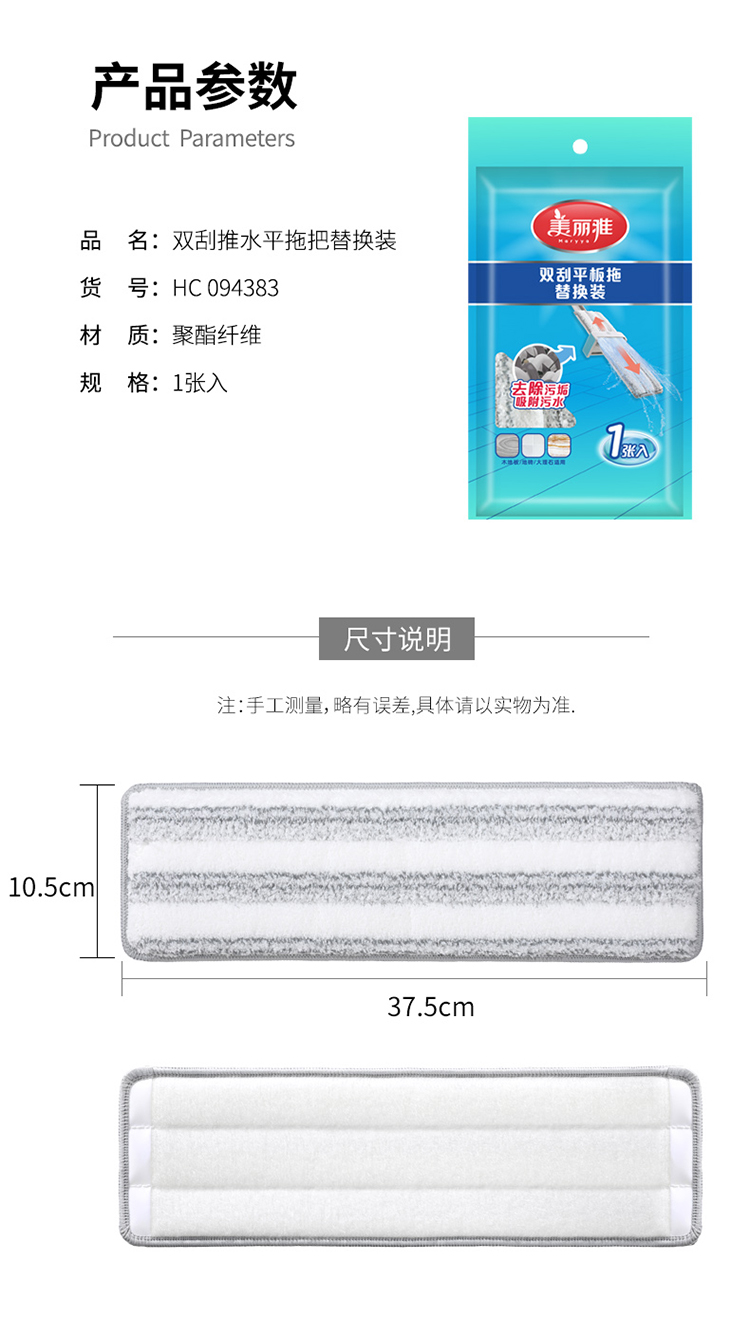 【美丽雅平板拖备件】双刮推水平板拖把替换装备件37.5CM