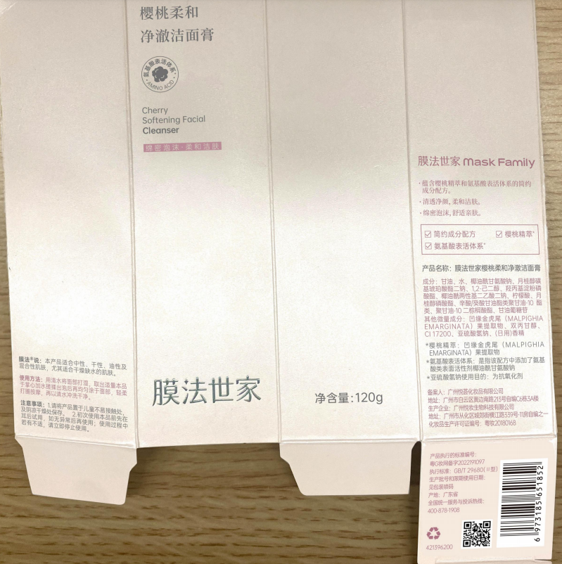 【200膜币+¥19.9】膜法世家樱桃柔和净澈洁面膏120g氨基酸温和不拔干洗面奶