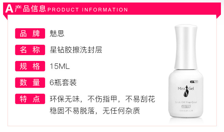 魅思星钻胶 15ml 擦洗封层6瓶套装