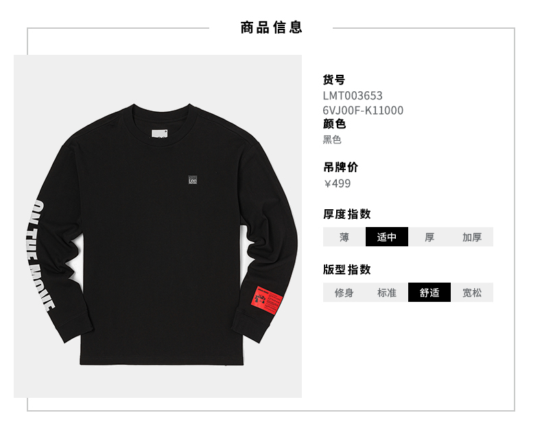 Lee商场同款22秋冬新品舒适版型多色男长袖T恤圆领潮LMT0036536VJ