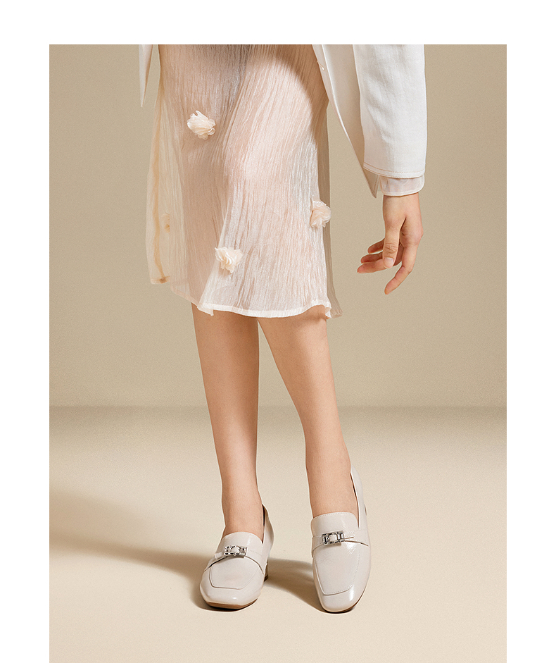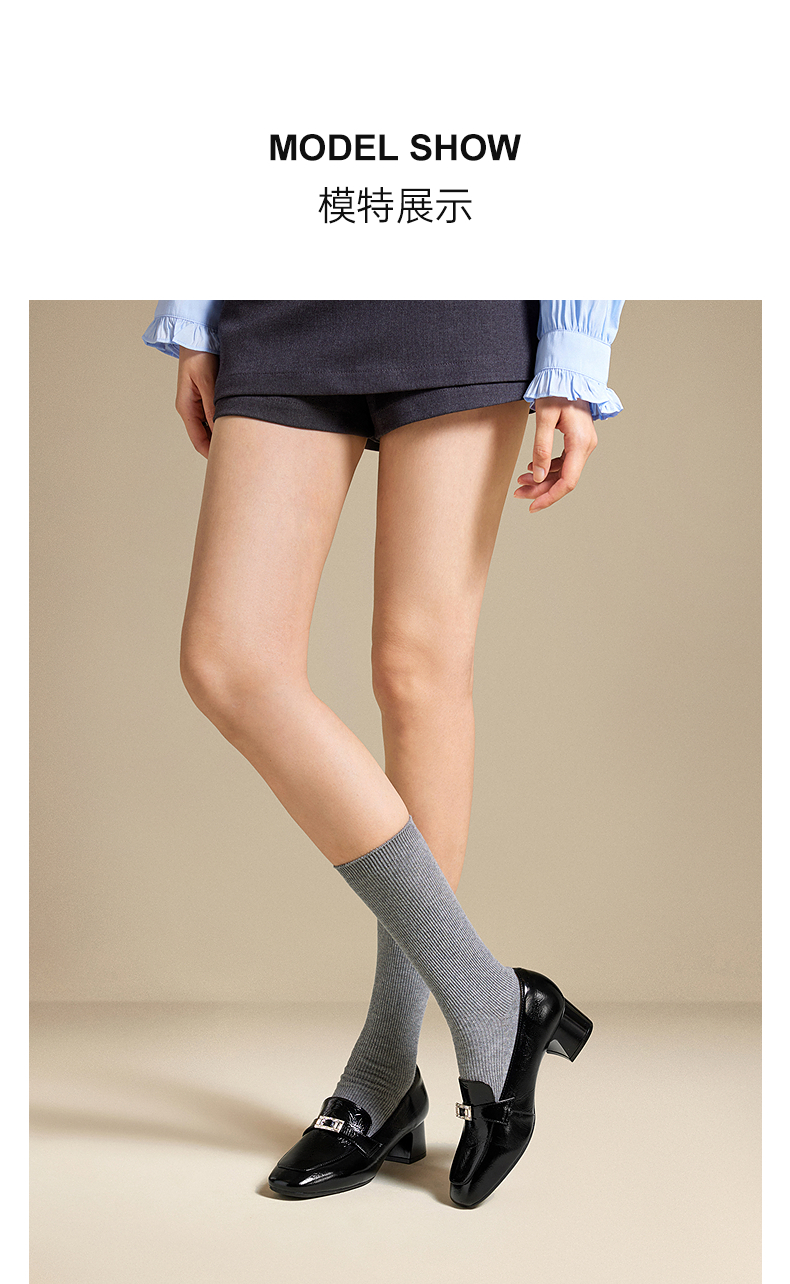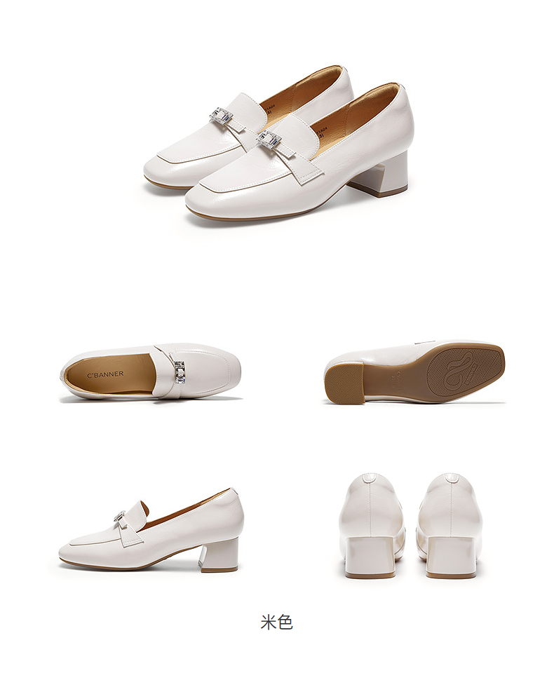 千百度羊皮粗高跟鞋女通勤正装法式扣饰气质浅口单鞋A25485663