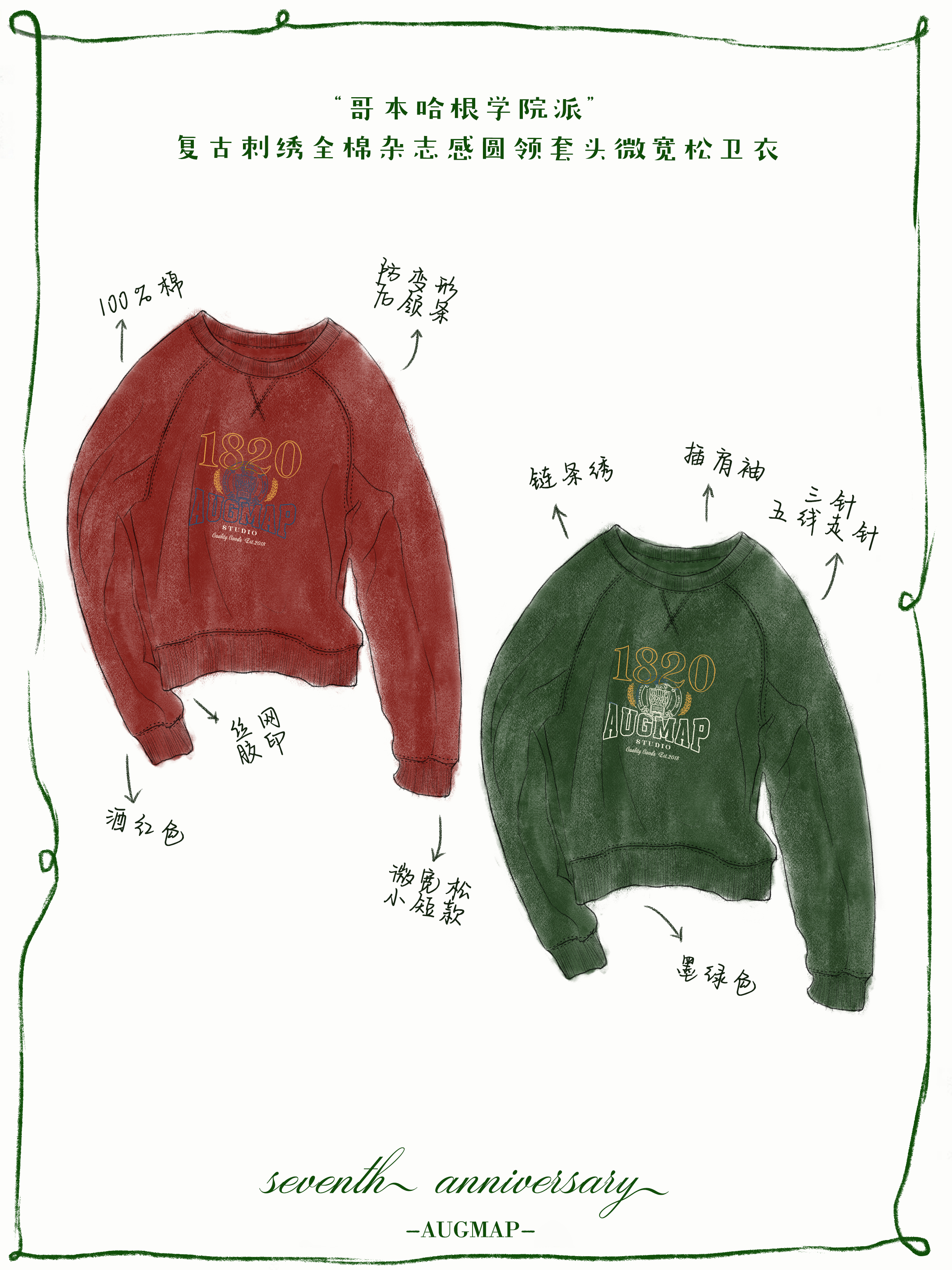 浮生八记/25C116/“哥本哈根学院派”复古刺绣全棉卫衣