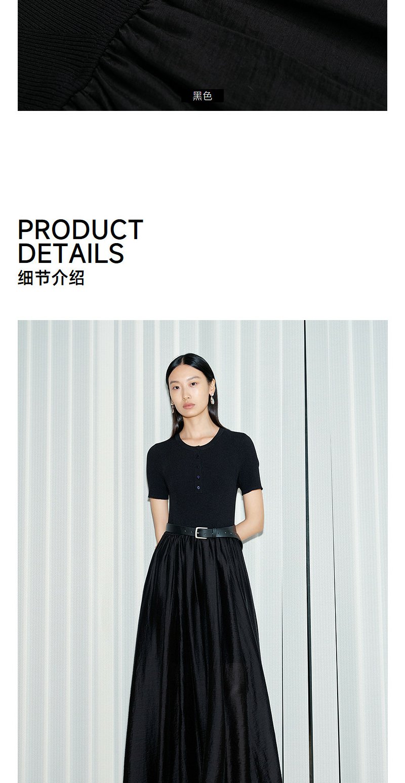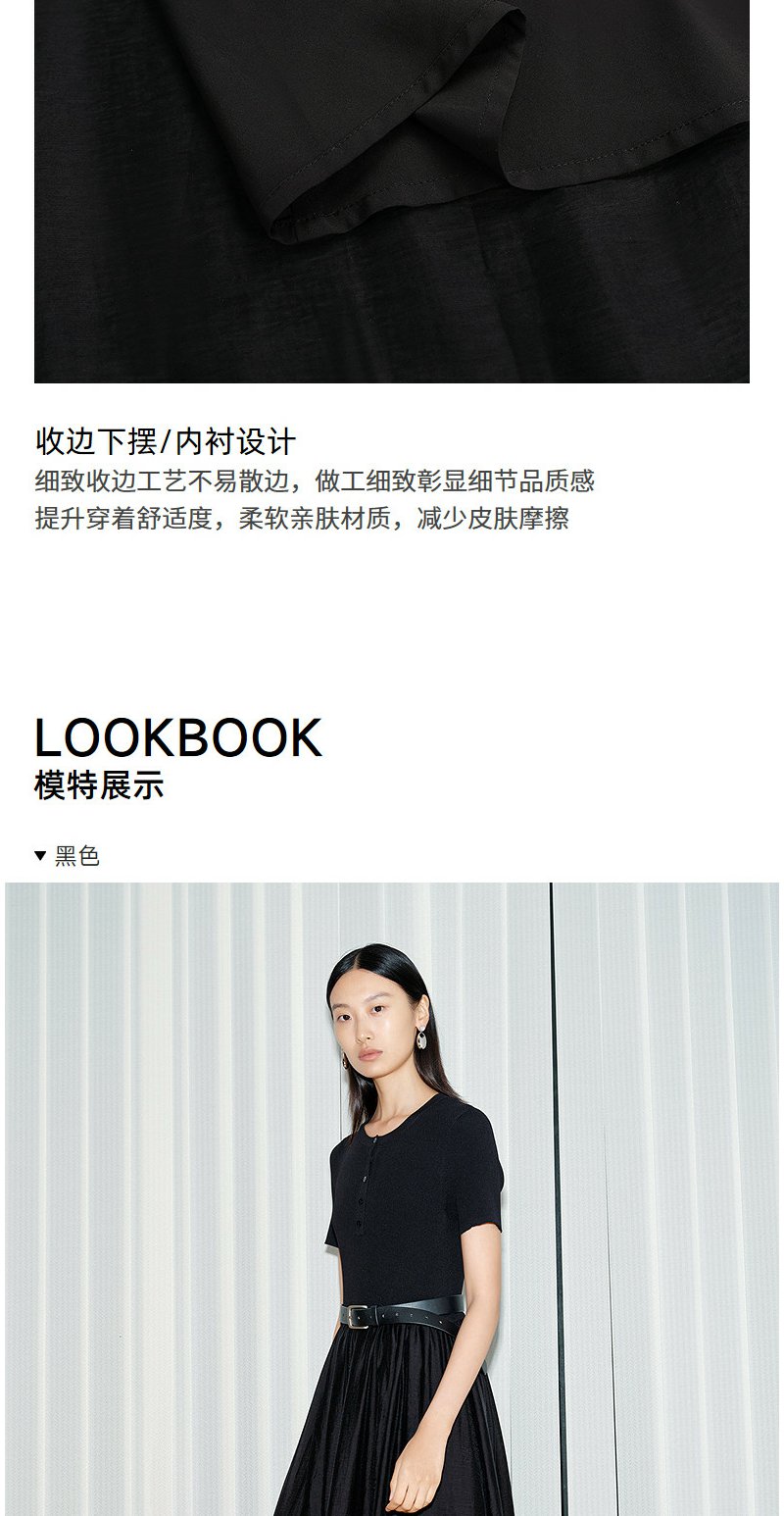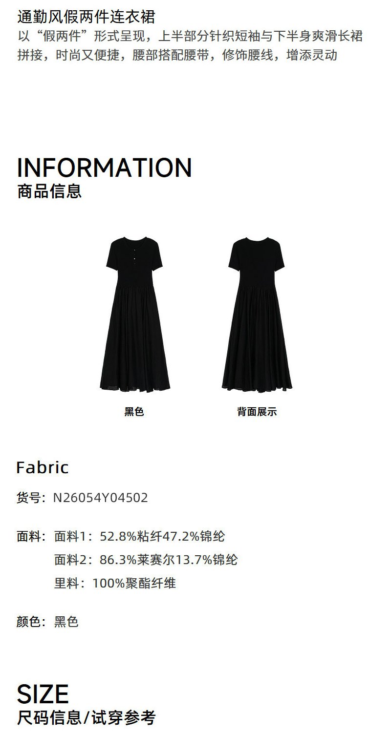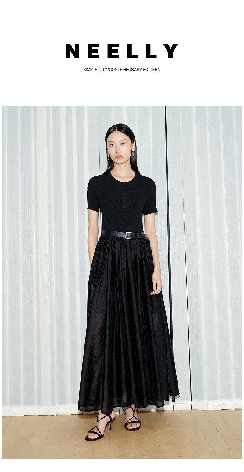 NEELLY纳俪商场同款夏新款通勤气质假两件连衣裙女收腰显瘦A字裙N26054Y04502