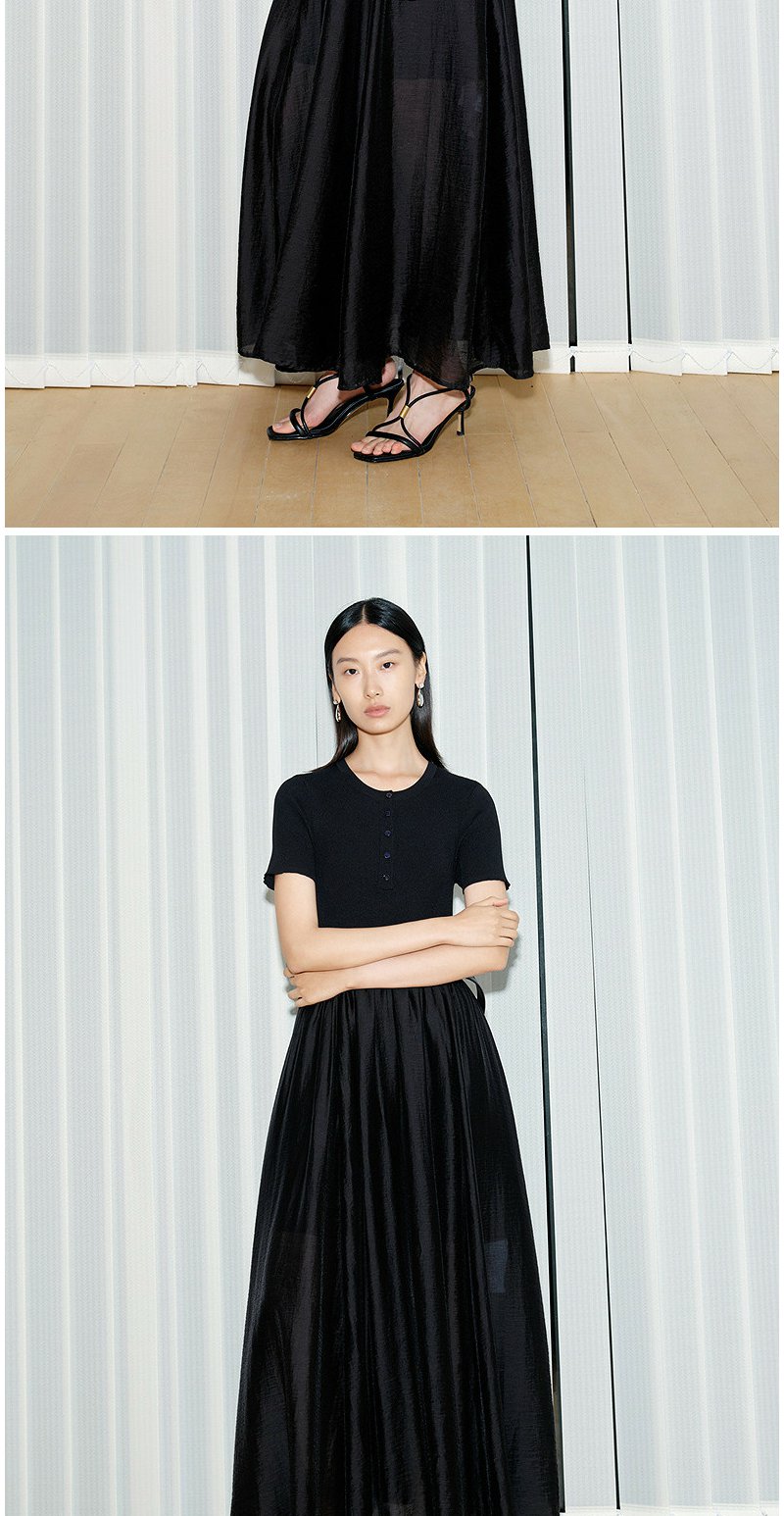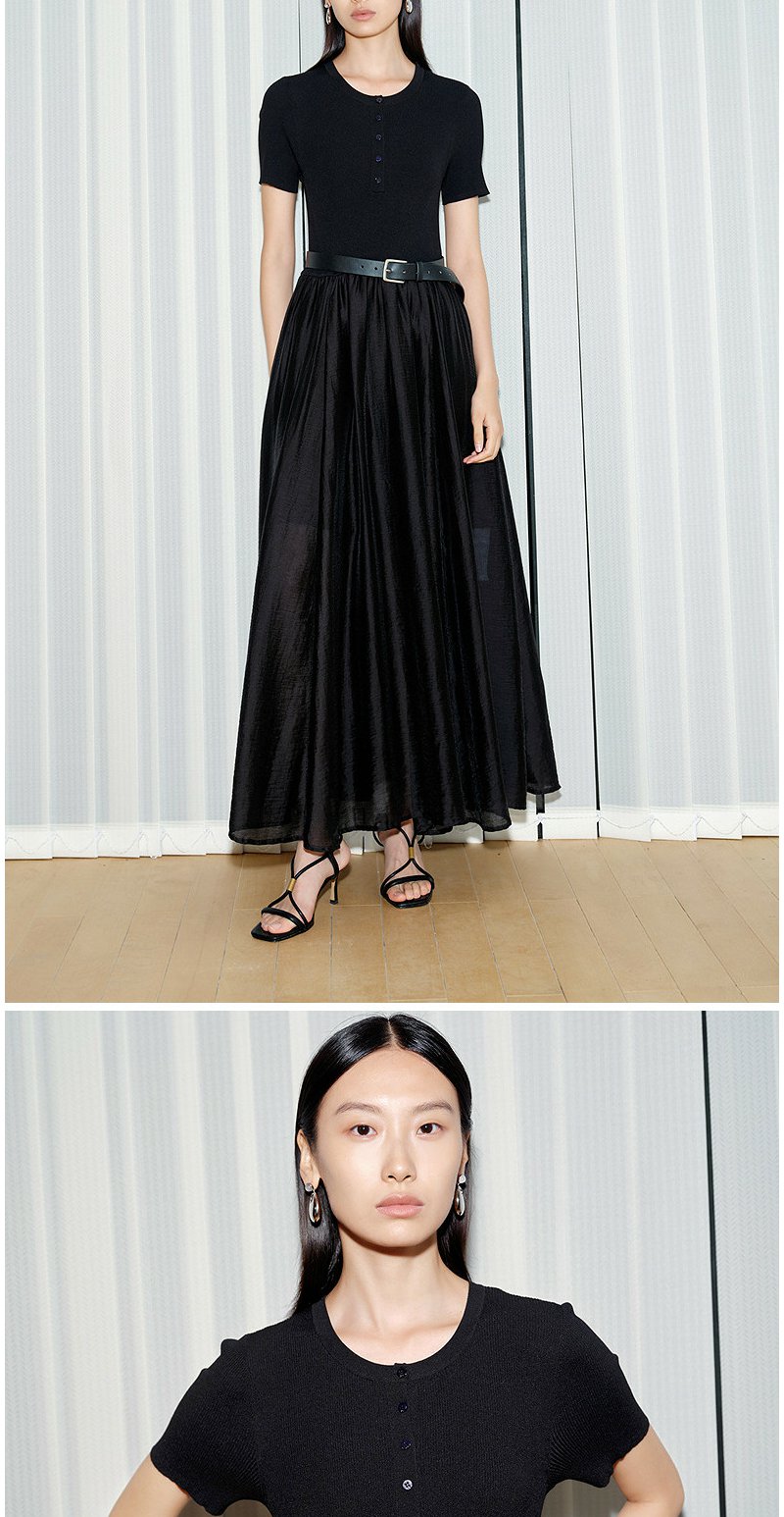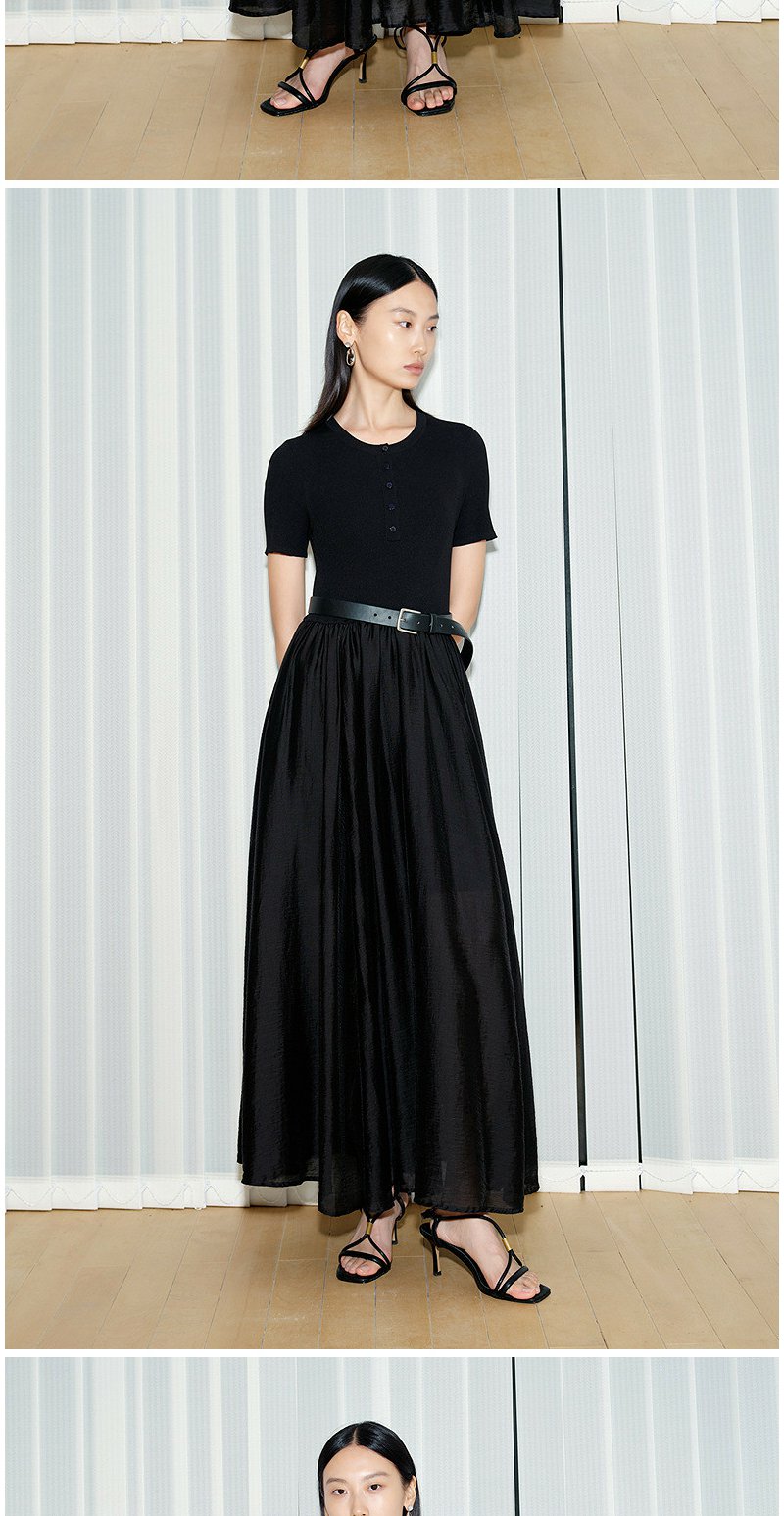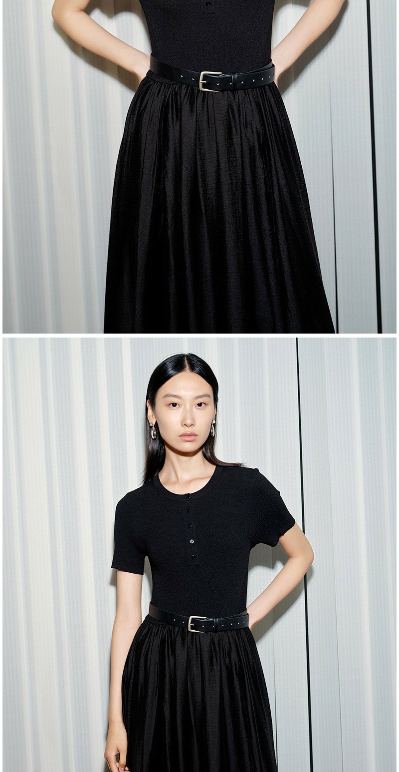 NEELLY纳俪商场同款夏新款通勤气质假两件连衣裙女收腰显瘦A字裙N26054Y04502