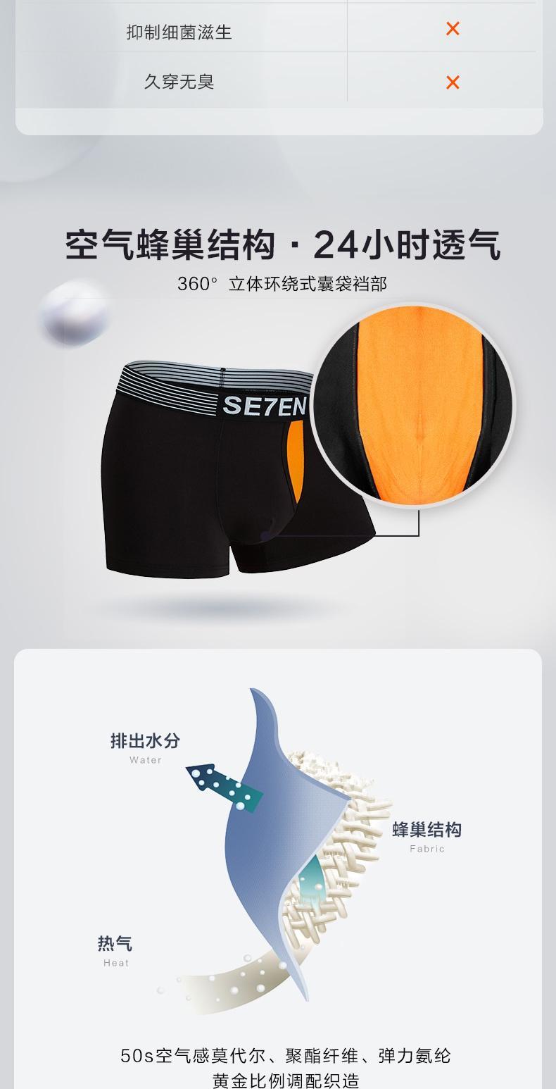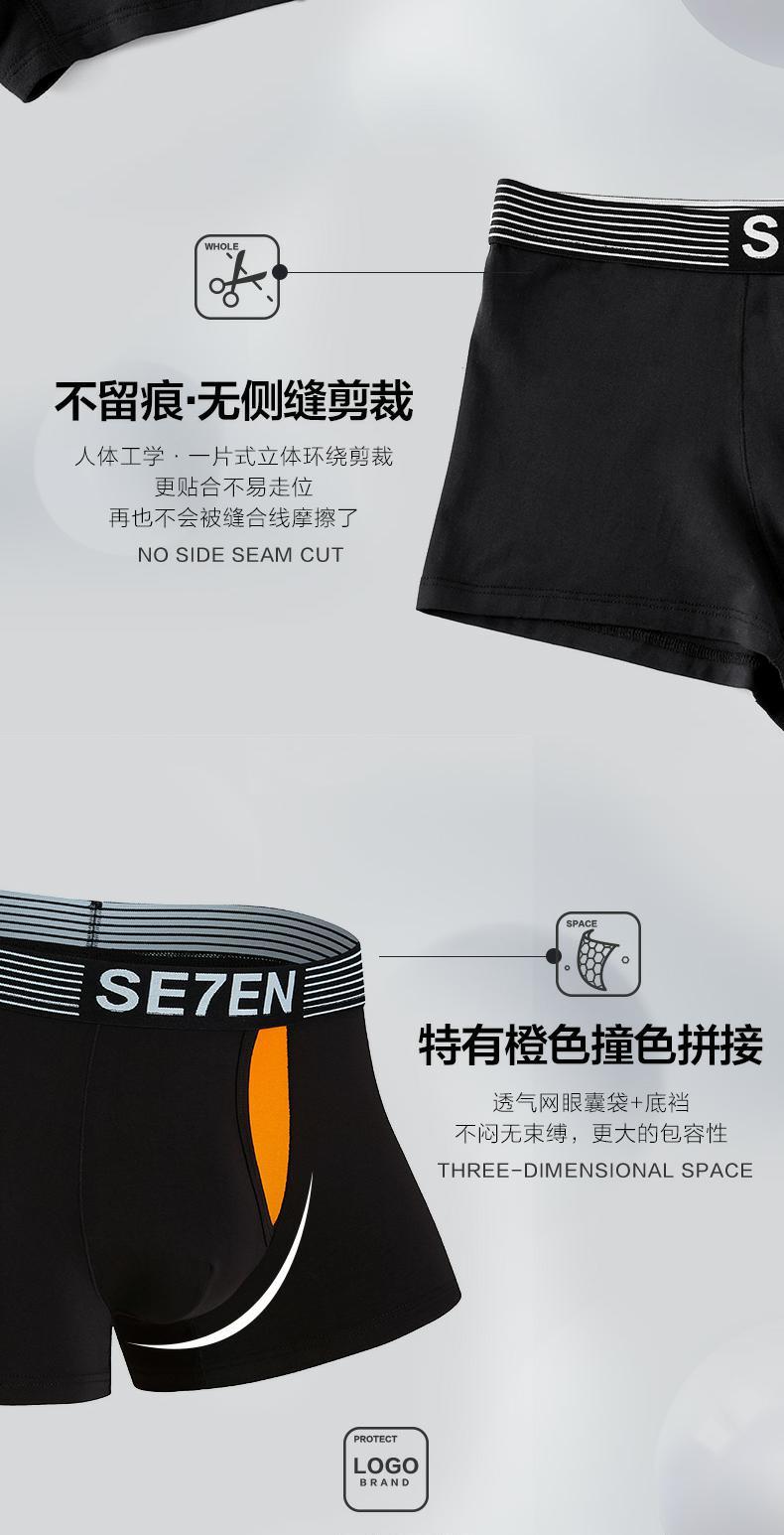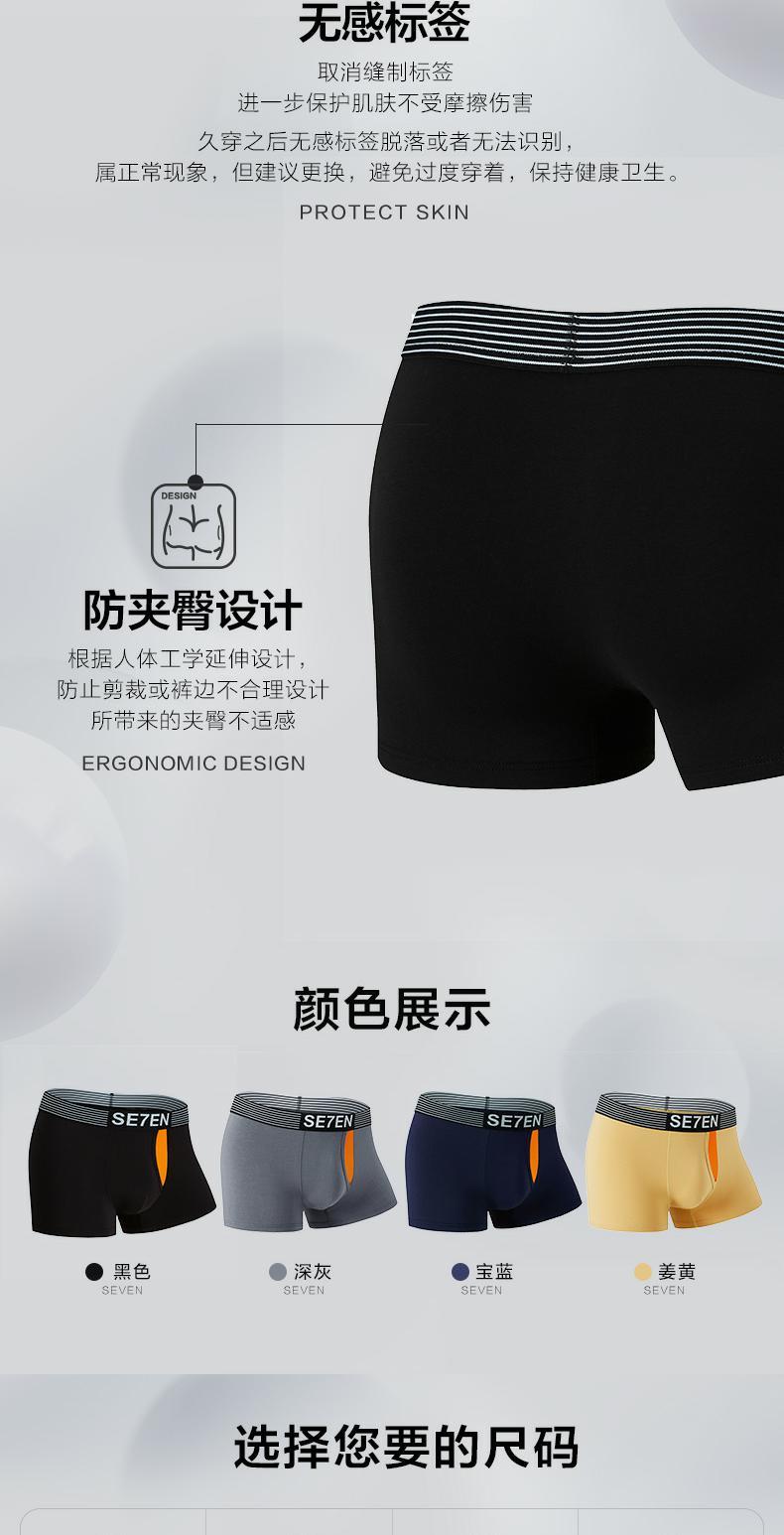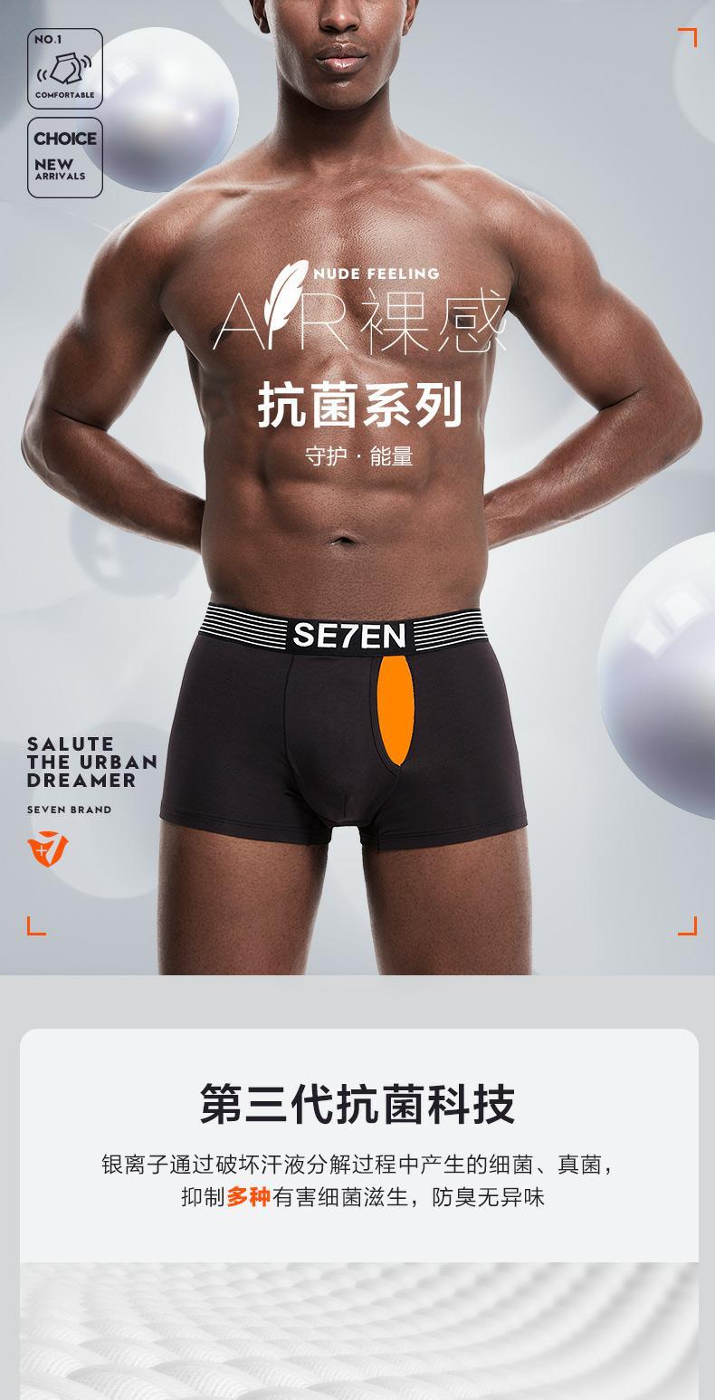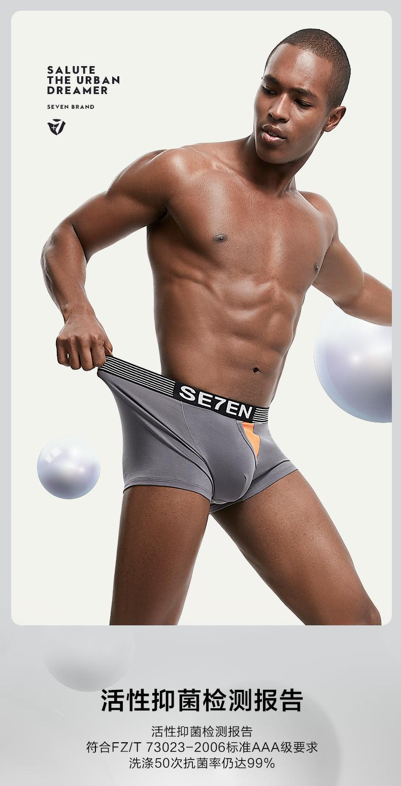 【特价礼盒2条装】柒牌男士内裤平角裤运动弹力透气抗菌裆无痕短内裤吸汗男生四角裤 118F70200