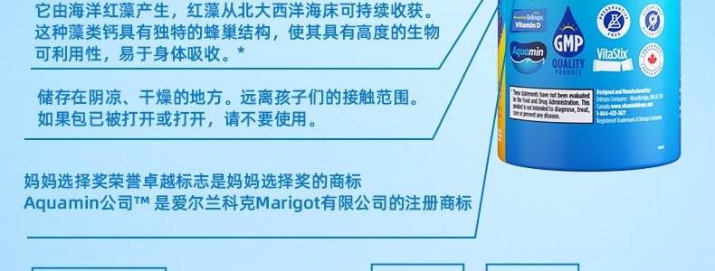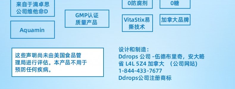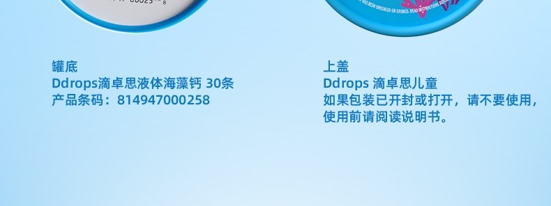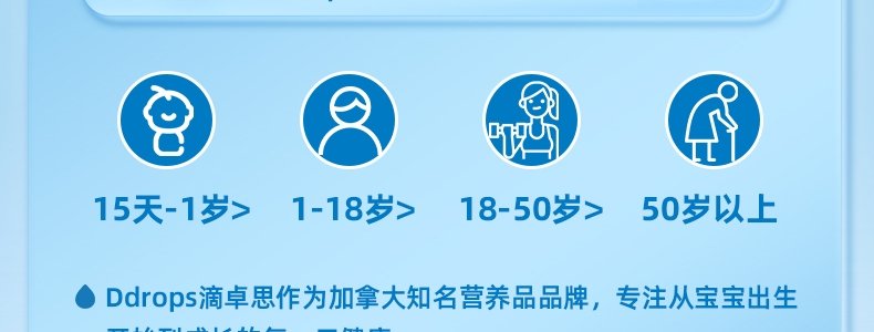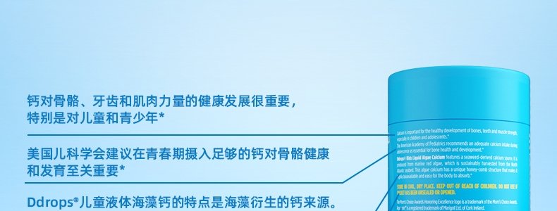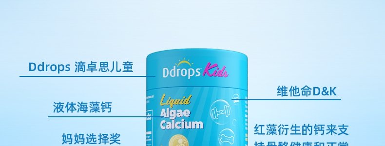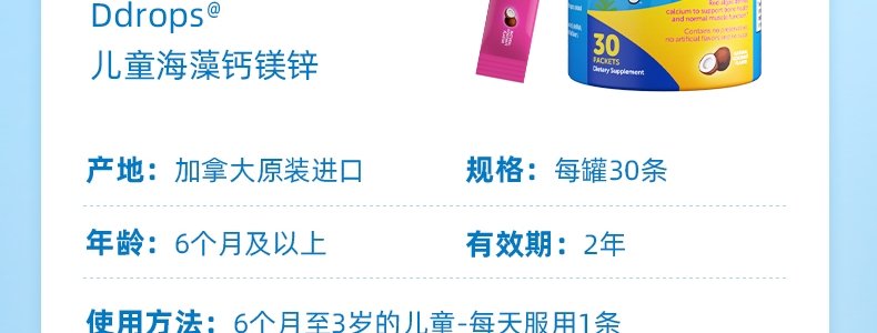 【保税】加拿大 Ddrops 儿童液体海藻钙镁锌 30条,适合6个月以上宝宝