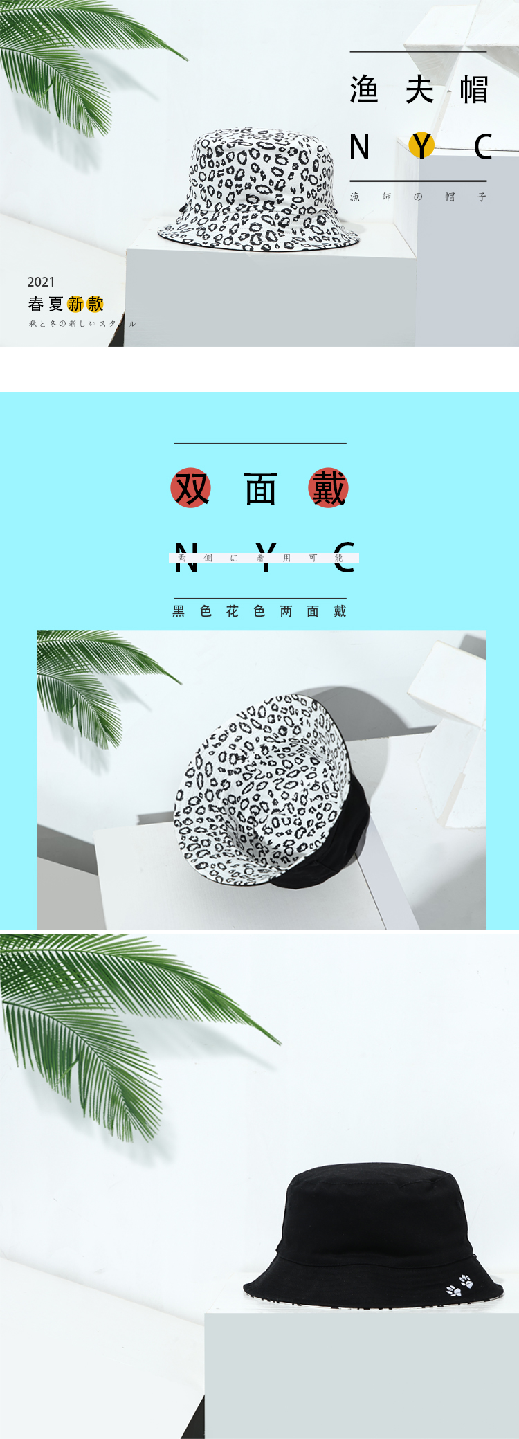 雪豹豹纹爪印休闲双面文艺渔夫帽