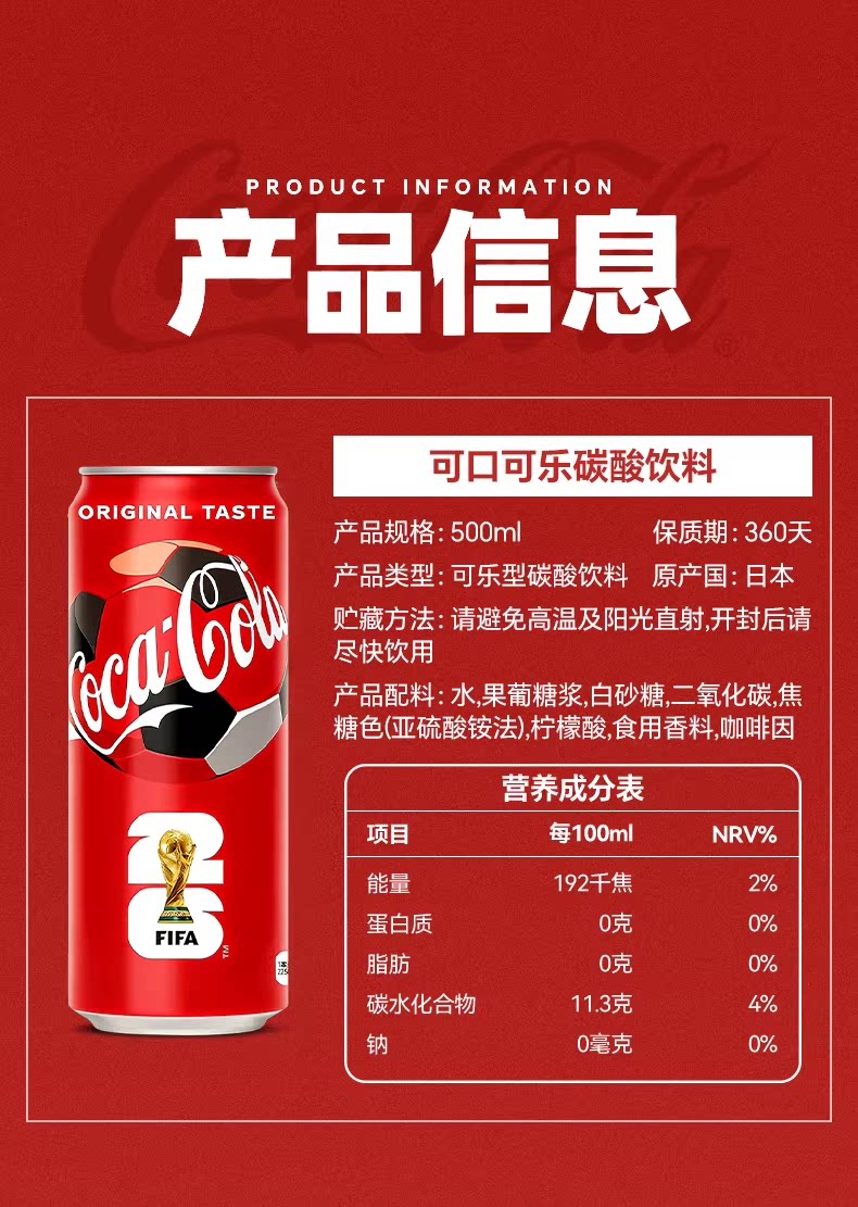 日本可口可乐碳酸饮料500ml/021985 日本进口 世界杯主题可乐