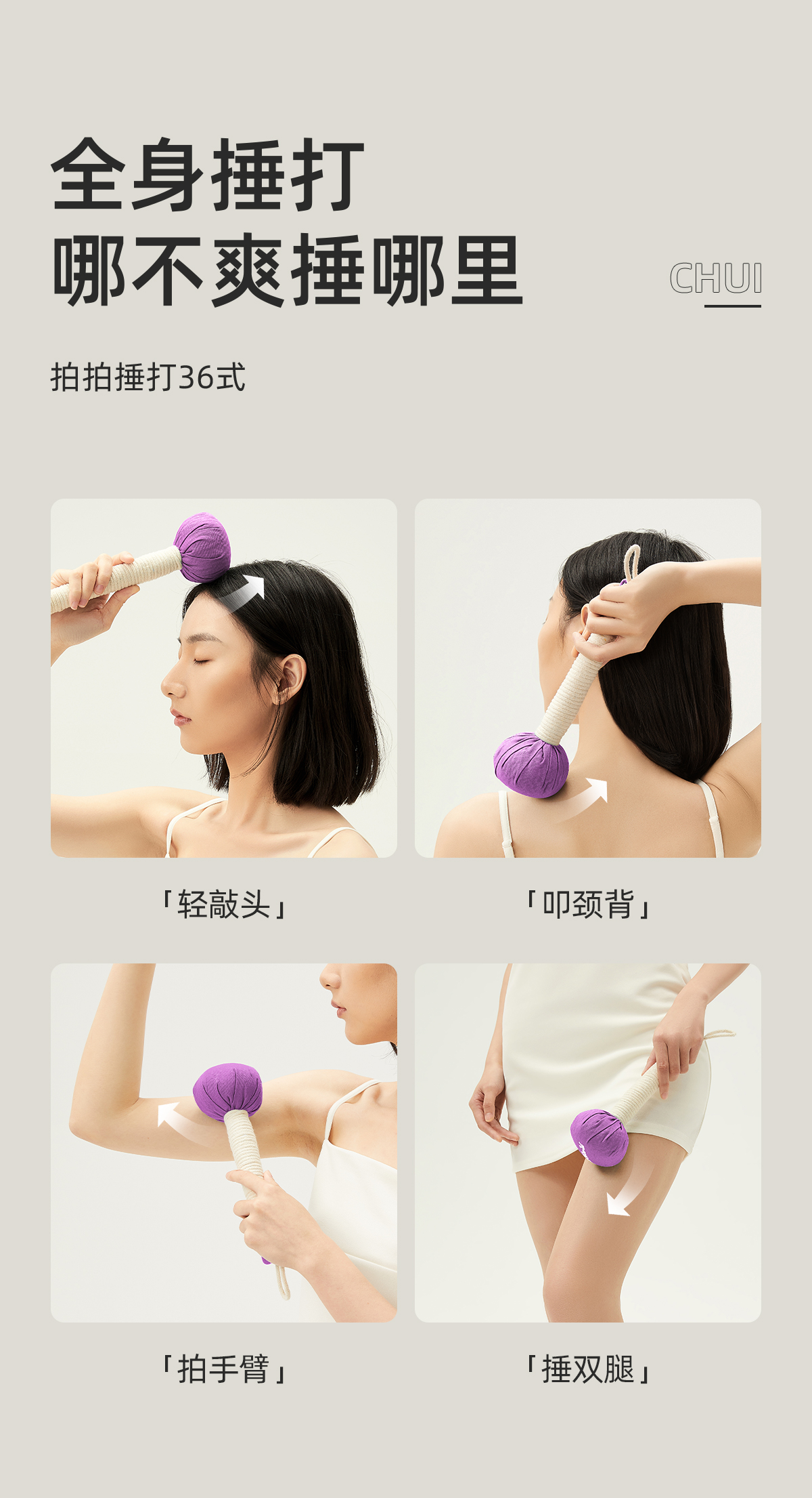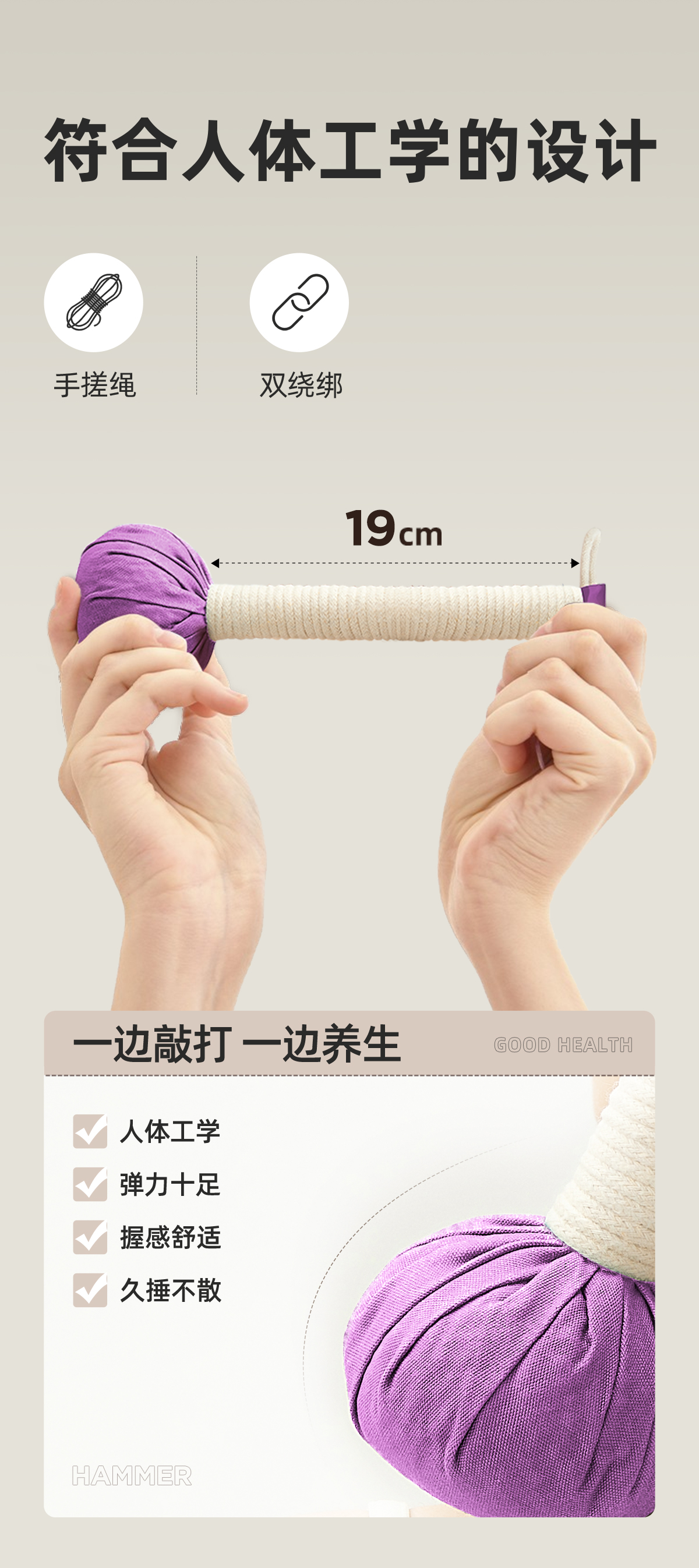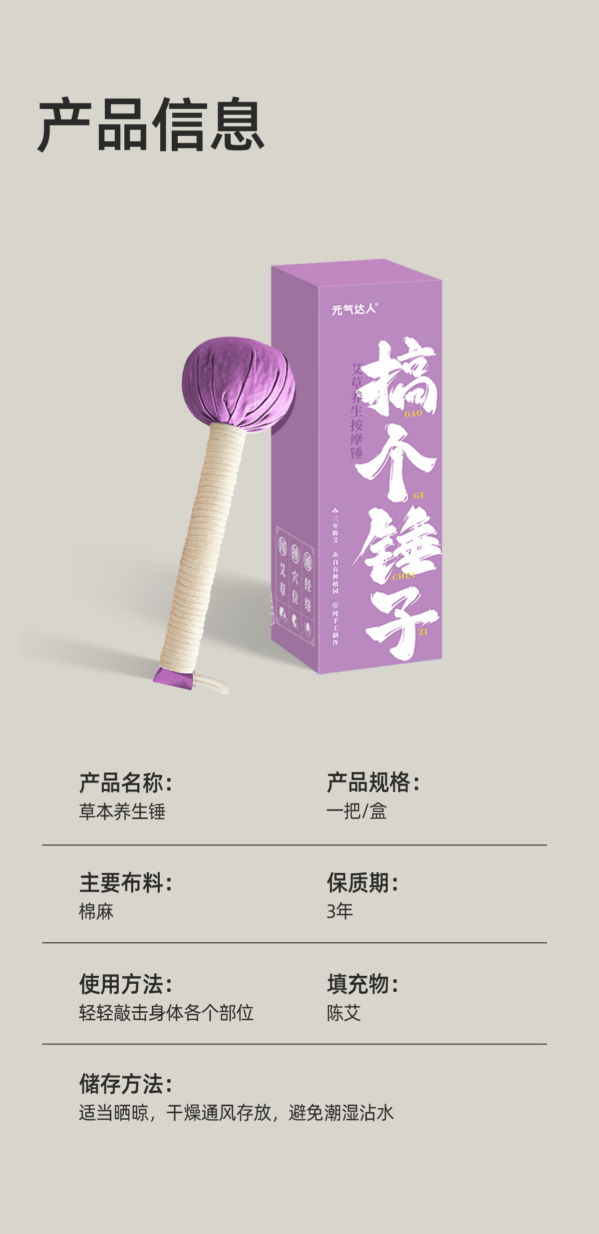 元气达人草本手持养生锤紫色艾草锤 手工锤子敲经锤疗拍八虚按摩肩颈后背