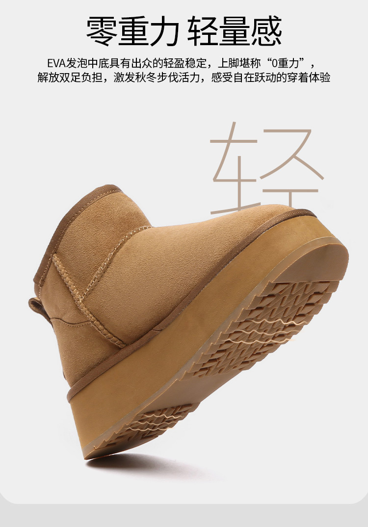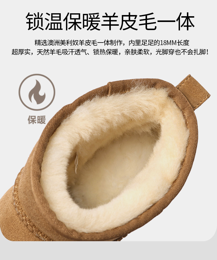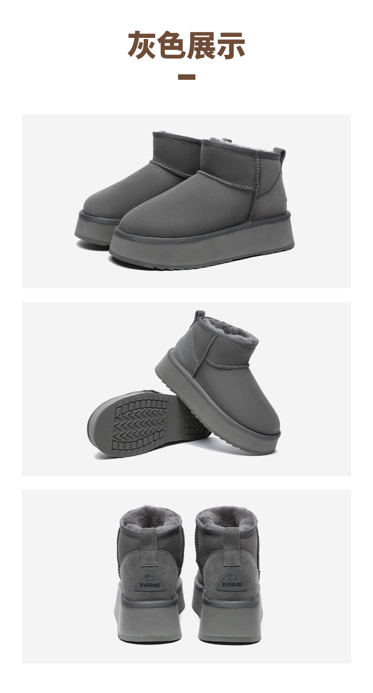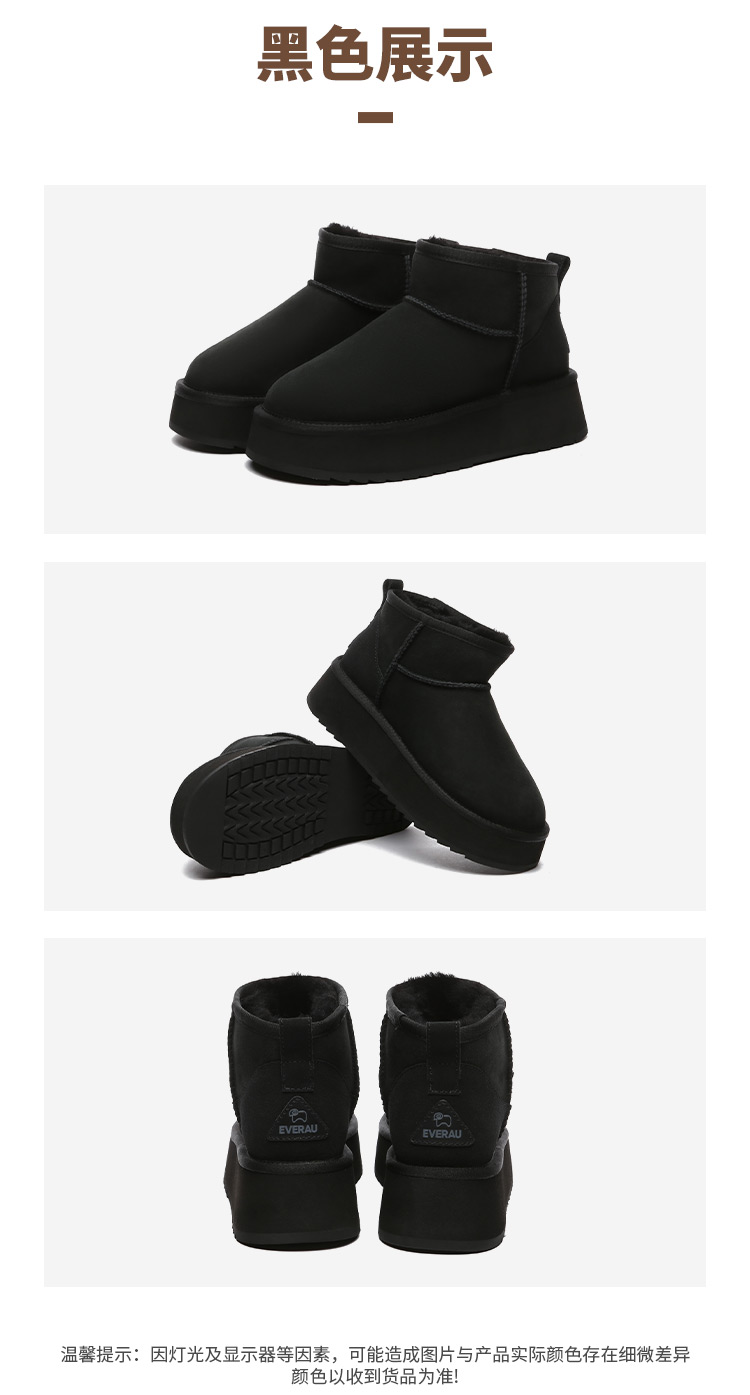 EVERAU羊皮毛一体雪地靴女冬季新款防水防滑短筒厚底短靴 EA3143