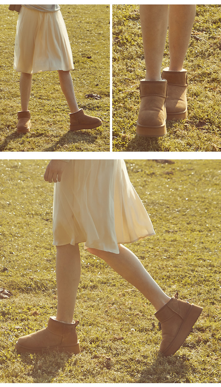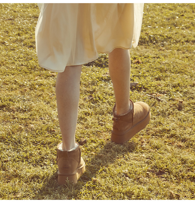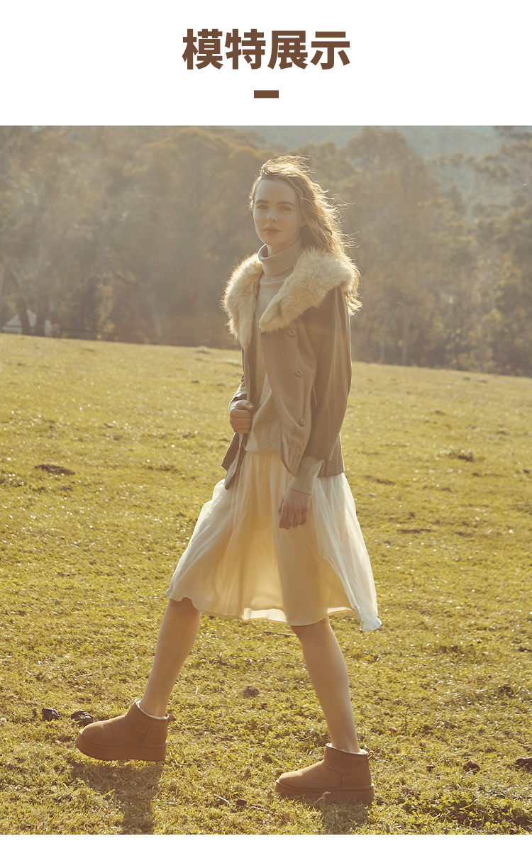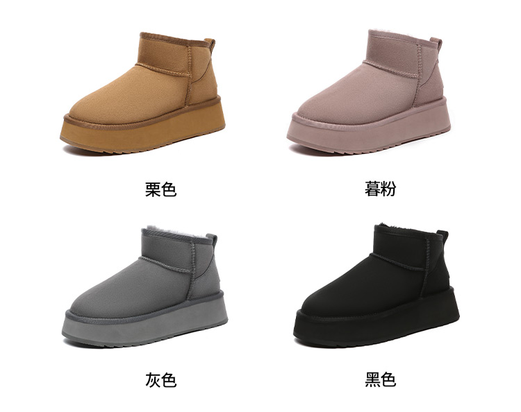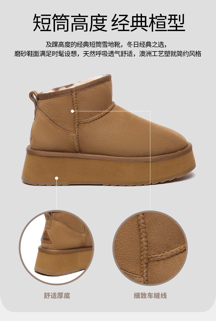 EVERAU羊皮毛一体雪地靴女冬季新款防水防滑短筒厚底短靴 EA3143
