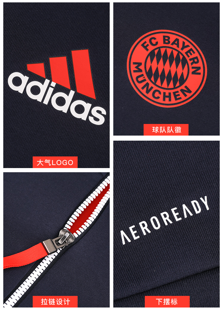 ADIDAS/阿迪达斯 FCB ZNE 拜仁慕尼黑足球连帽夹克GT7084