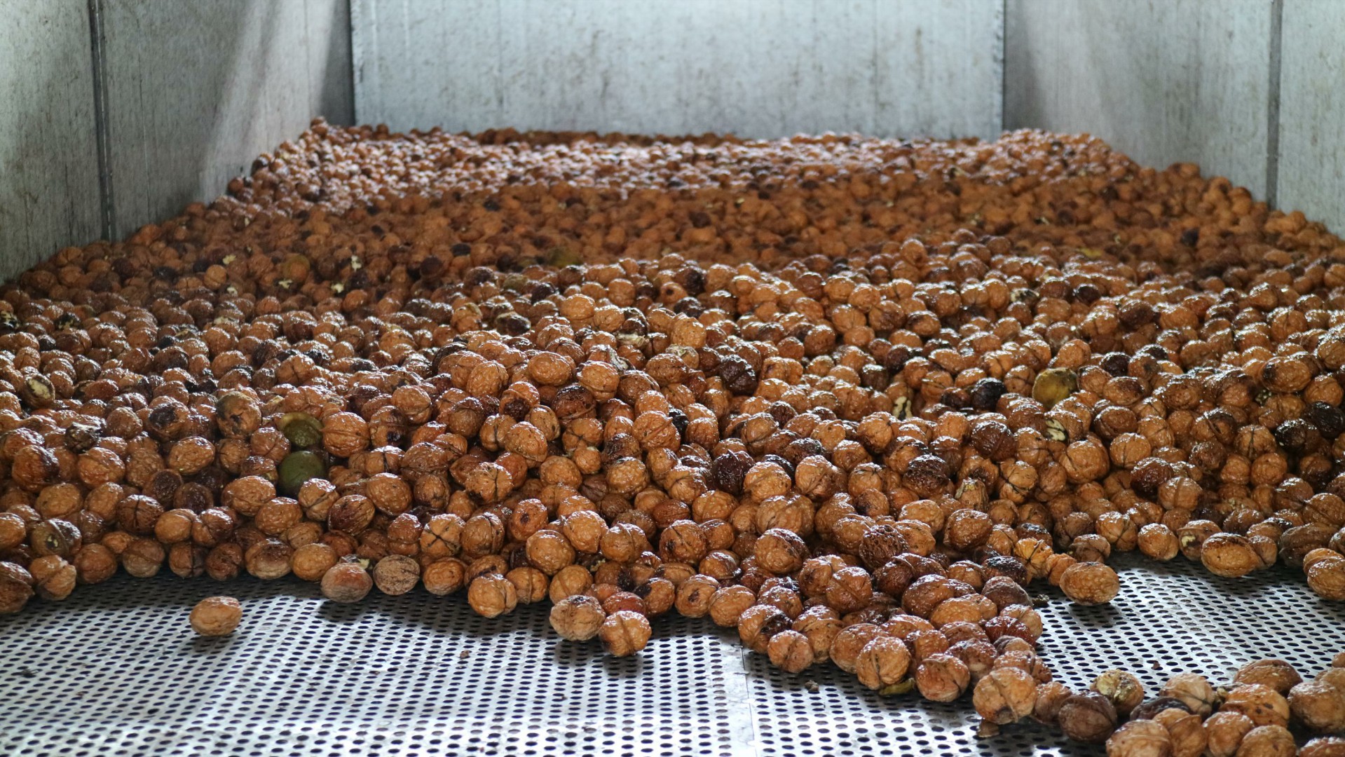5.进入热风循环系统,去除新鲜核桃外壳水分,大大降低“发黑、长毛”问题,这就是我们干干净净的新鲜核桃发货标准。