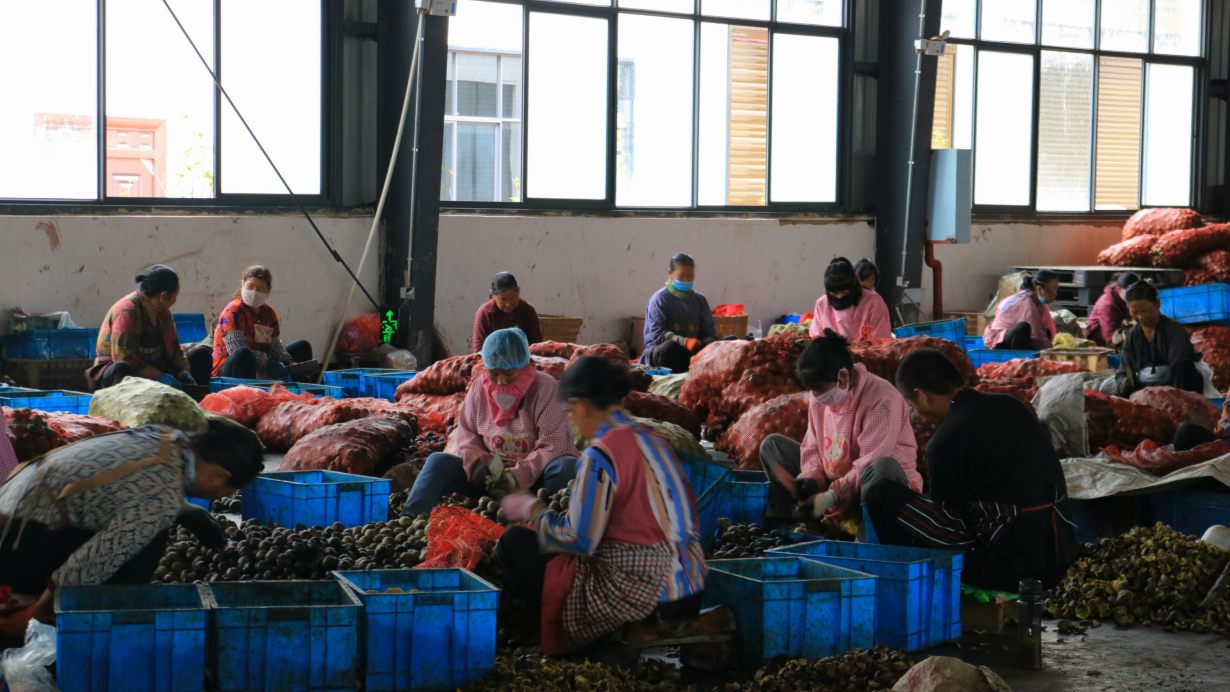 2.人工去皮,挑拣出烂果、空果、坏果