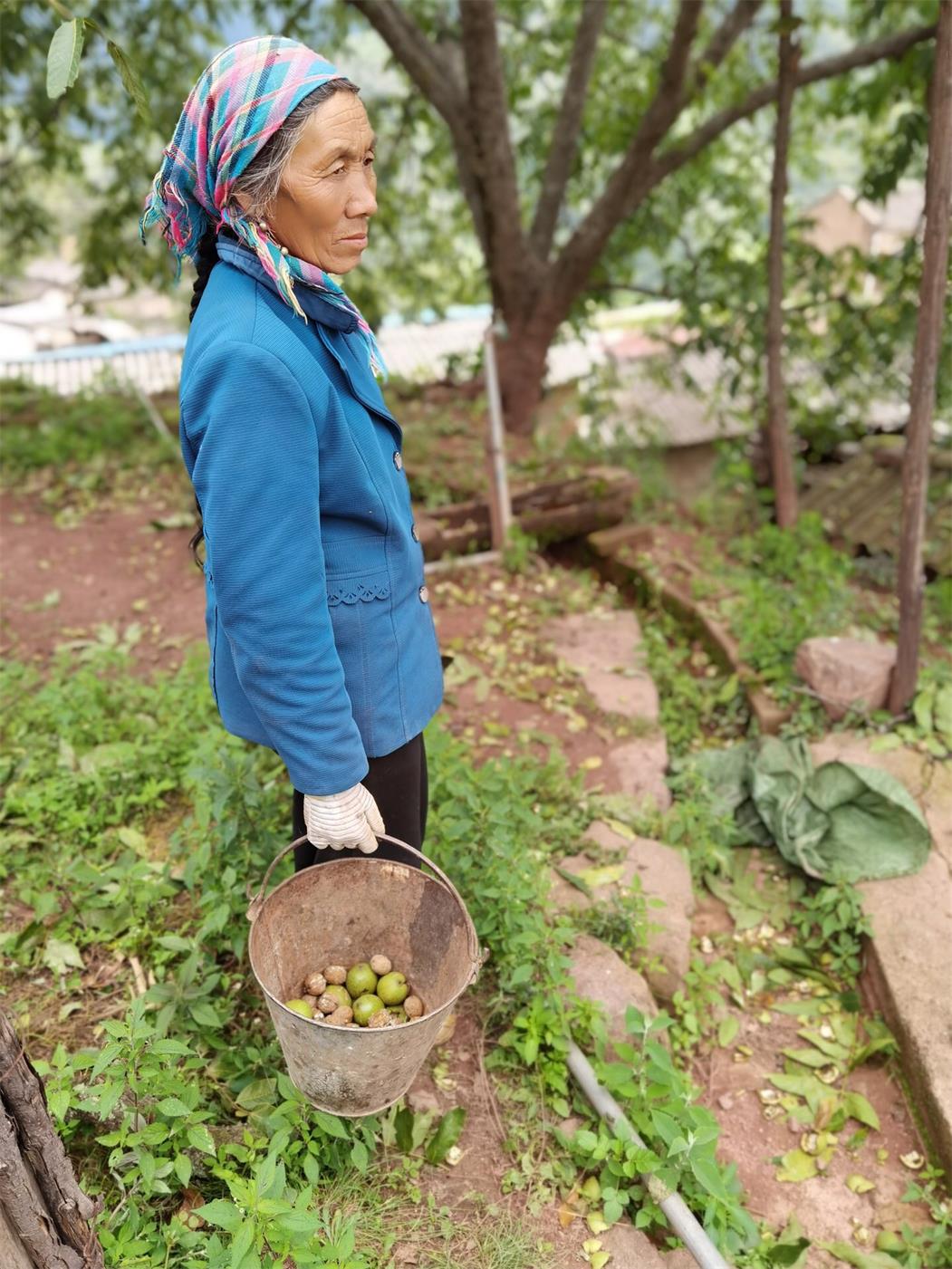 家家户户打核桃,打核桃也是一项技术活,危险程度也不低,房前屋后的还好说,山涧里面的有的要爬十多米才打得到,现在路通了,好山货就能运出去了,青壮劳动力就负责打核桃,老人和孩子就负责捡核桃。