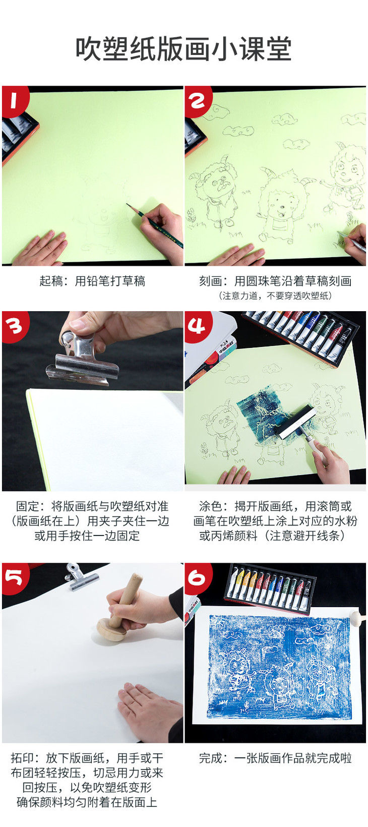 中盛画材儿童吹塑纸版画材料8开手工diy材料幼儿园学生加厚手工纸