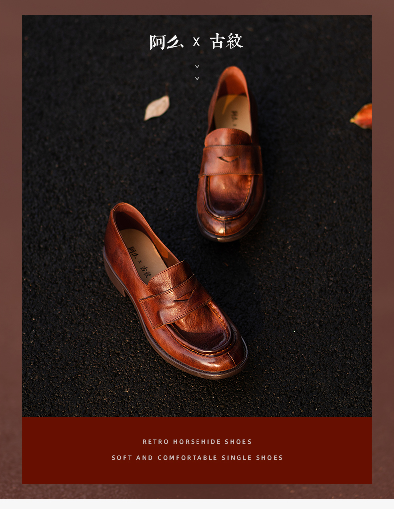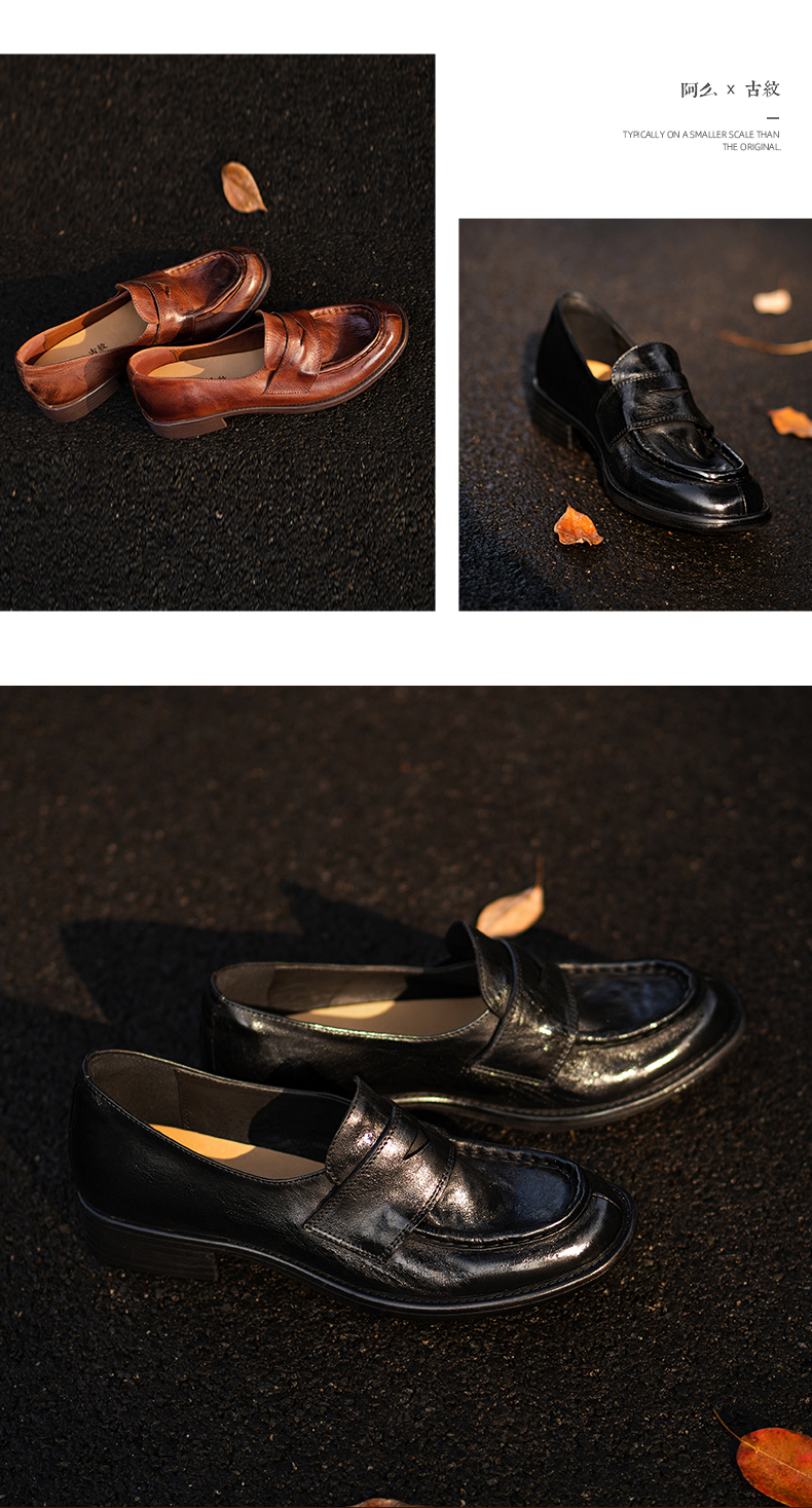 【阿么古纹马皮鞋】复古水洗一脚蹬乐福鞋2025新款软底小皮鞋2.5CM